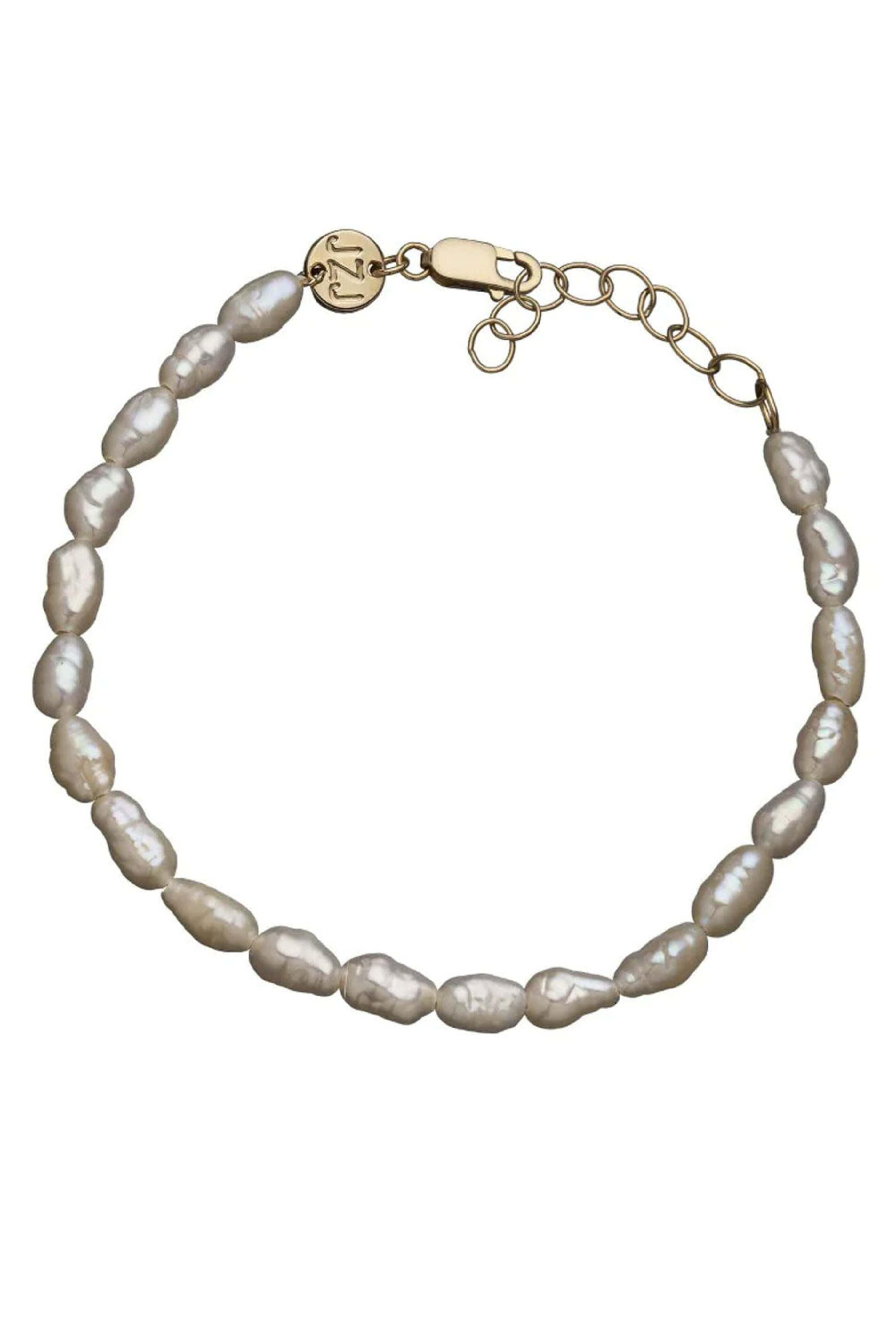 - Link chain strung with an array of fresh water pearls