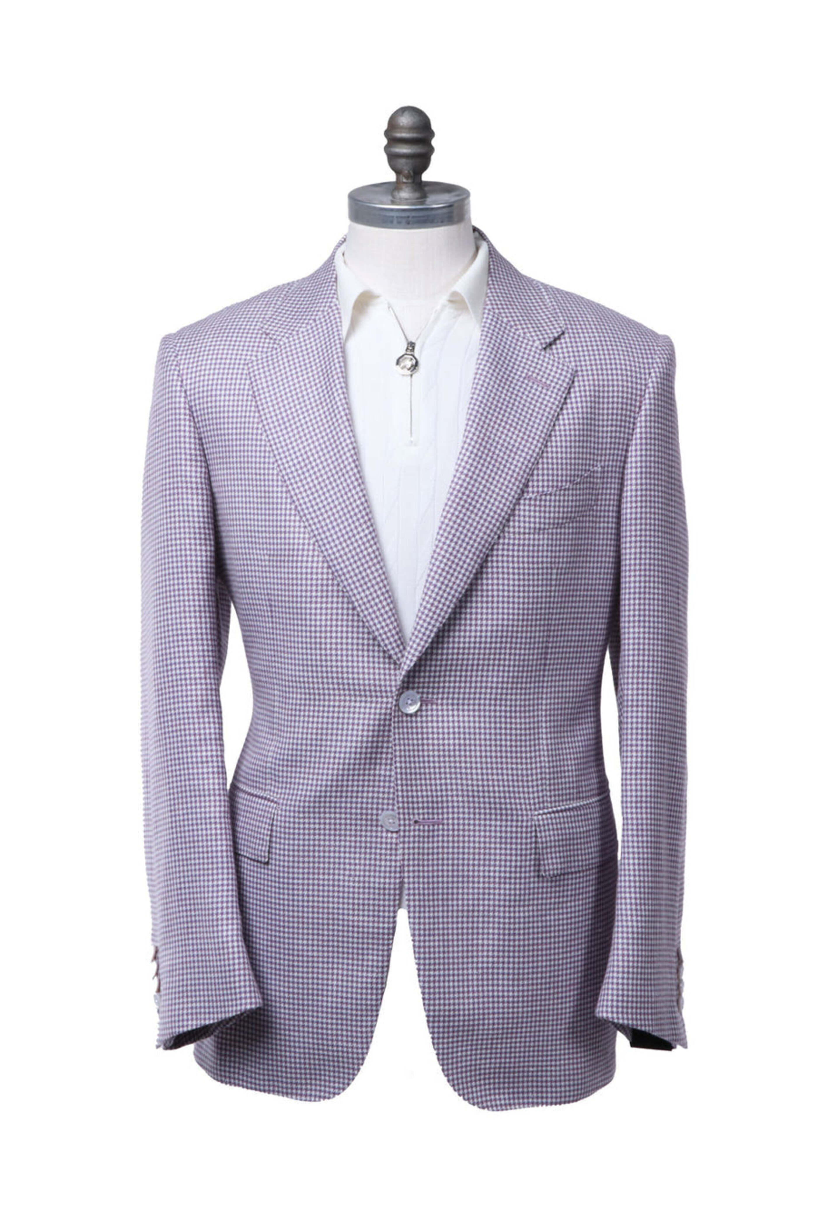 Stefano Ricci Purple Houndstooth Sportcoat . Notch lapels. Two button jacket. Left chest welt pocket. Waist flap pockets. Double back vents. Fully lined. Made in Italy . 63% Cupro lining, 37% silk . 41% Linen, 25% cashmere, 24% wool, 10% silk.