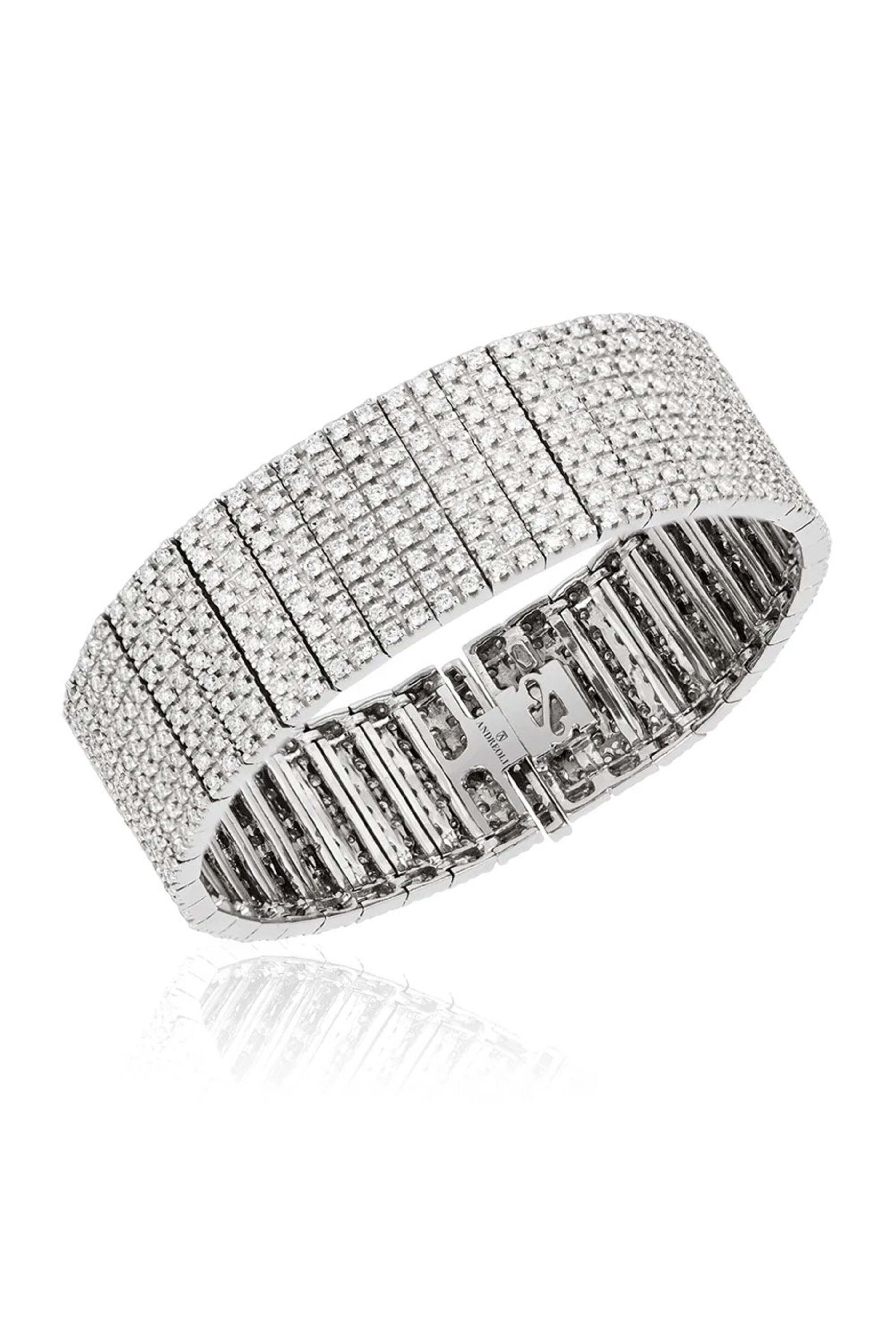 Andreoli Julian Diamond Bracelet. 18k white gold. Diamond 8.42 total carat weight. Gold 64.97 total gram weight. Wide band. Box clasps with lock. Designed and handcrafted in Italy.