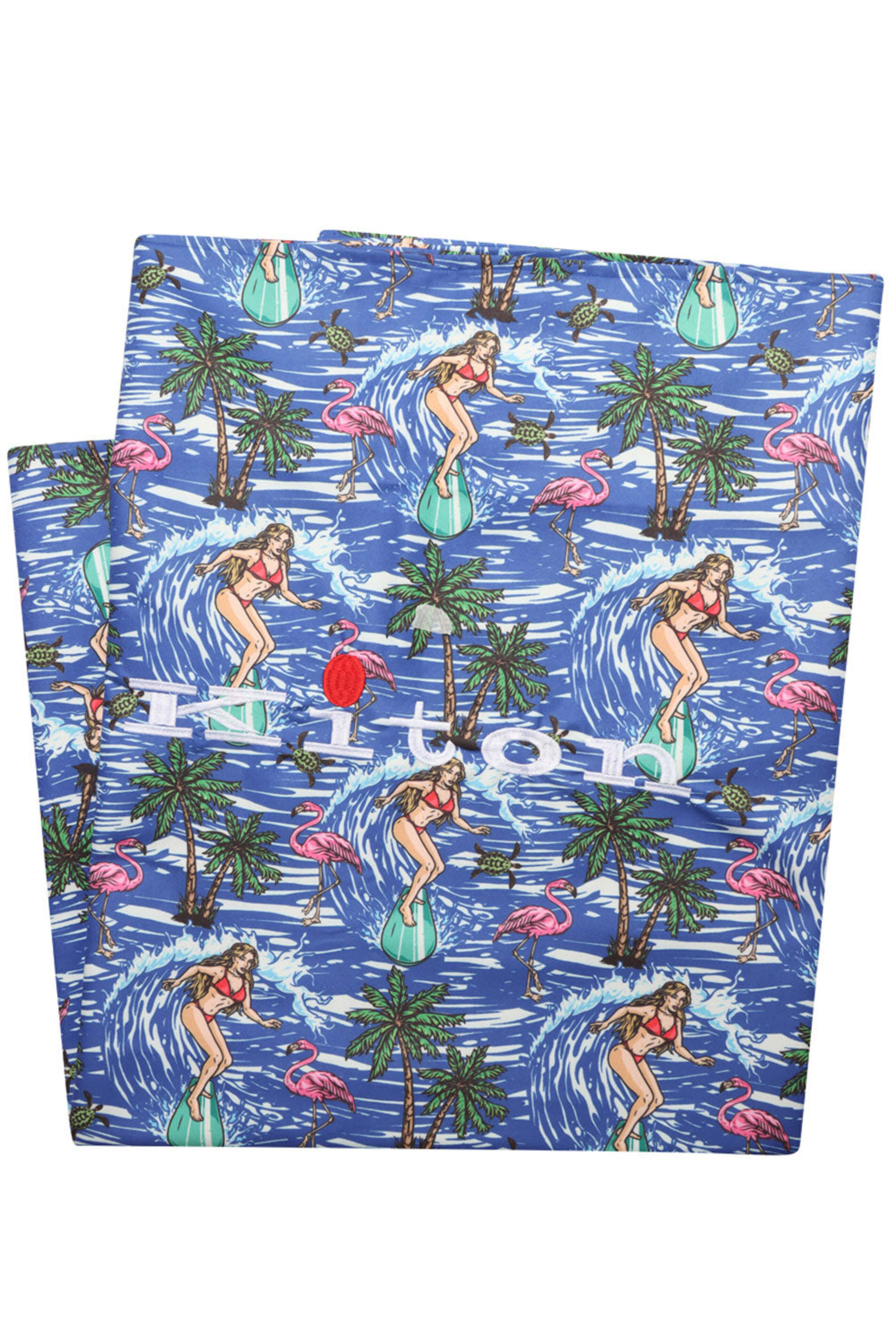 Kiton Blue and White Surfing Beach Towel . Embroidered Kiton Logos. 79 L x 48 W. Made in Italy. 100% polyester.
