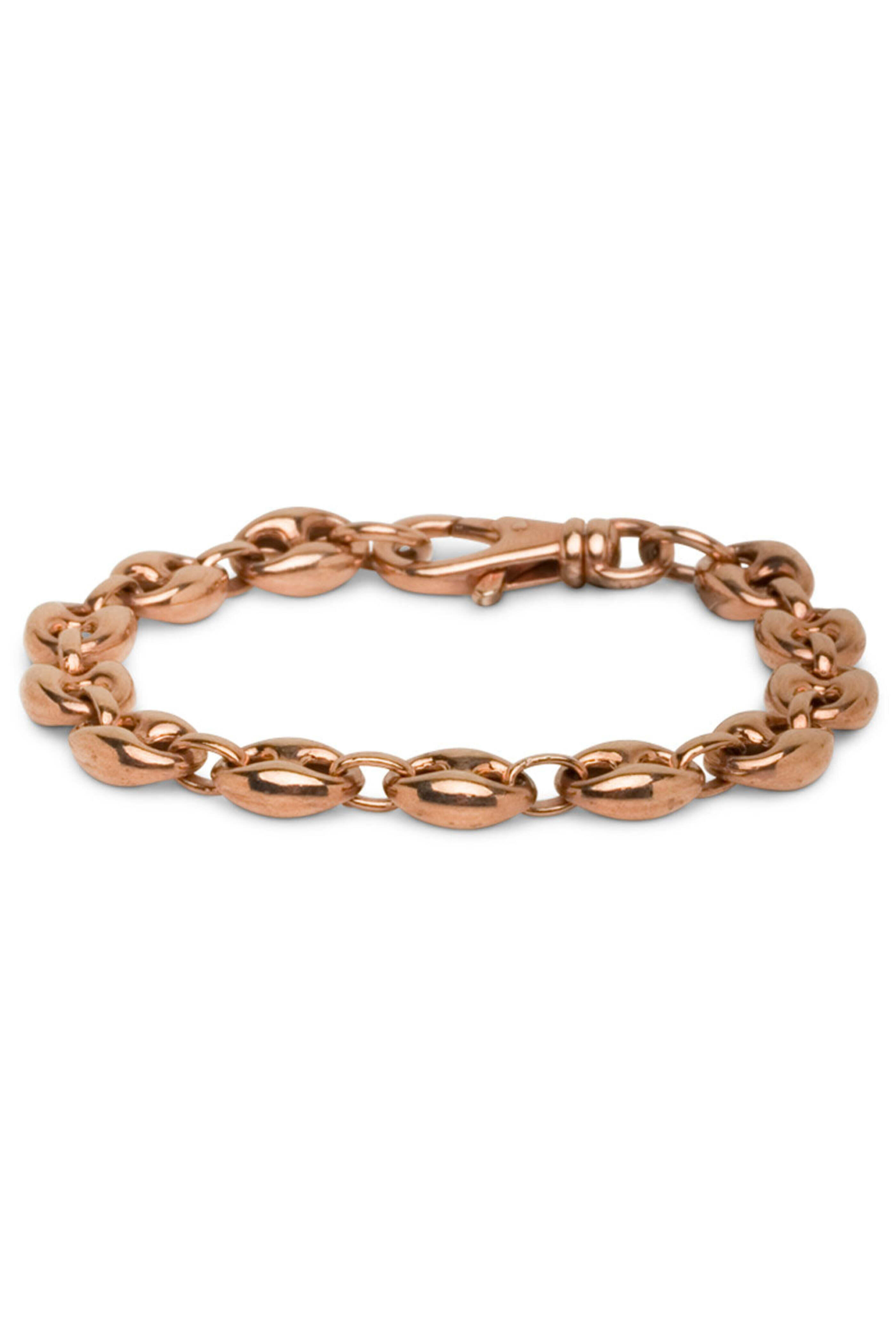 Spivey Rose Gold Vermeil Buckle Link Bracelet. Rose gold vermeil. Buckle link chain. Lobster claw clasp.