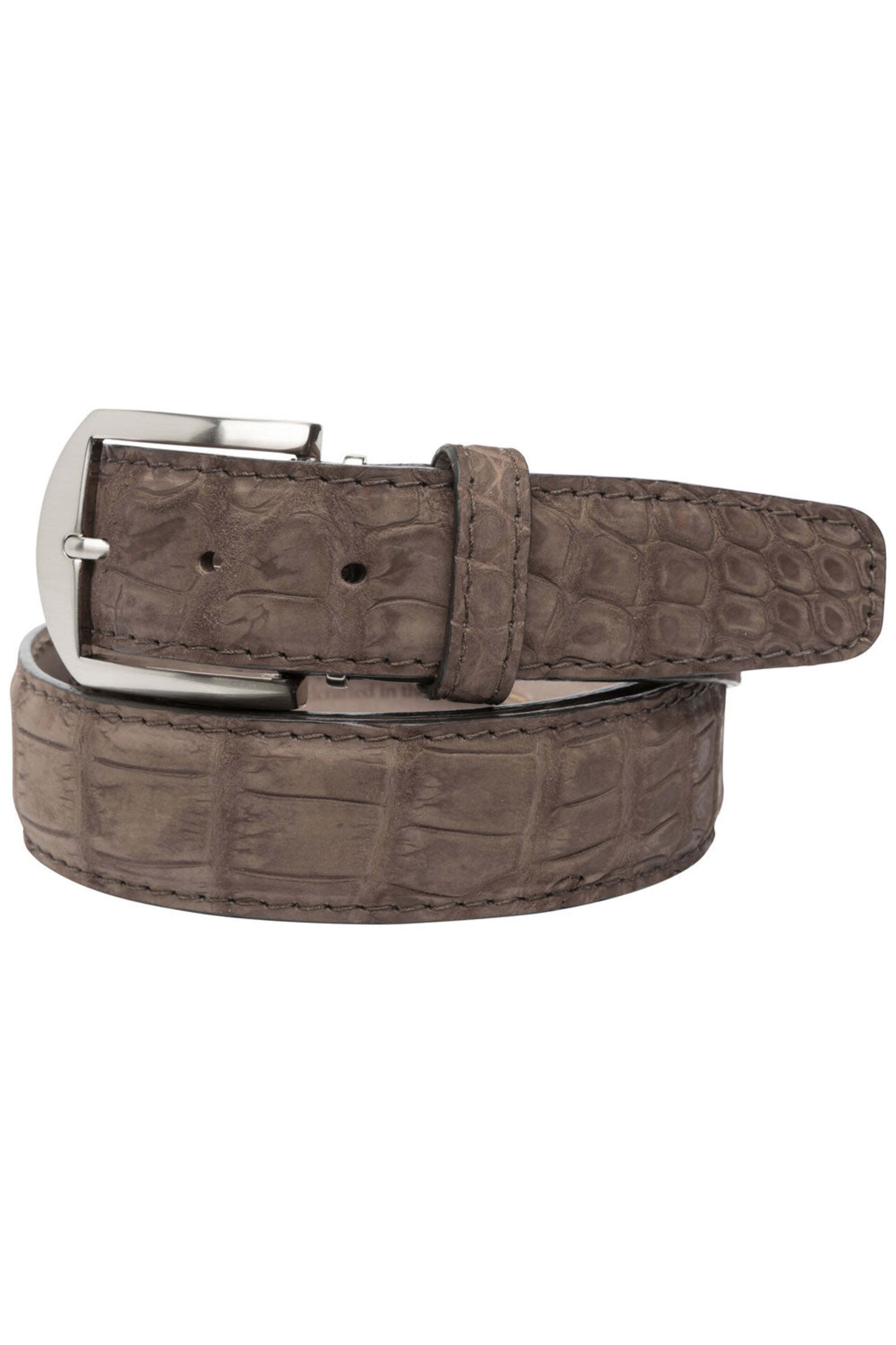 Buffed American Alligator outer. Adjustable with single loop keeper. Brushed nickel hardware. Tonal stitching. Made in USA. L.E.N. belts are cut to fit. You may have your belt sized by the cobbler of your choice, or if you are local, we are happy to assist you in store.. You may also have your belt cut to size before it is shipped. Please note, once a belt is cut to size it is final sale and cannot be returned.. We recommend belt sizing to be 2 larger than your pant size. Please list your belt size in the order comments when placing your order. Please contact us for any questions about sizing.. 40 mm.