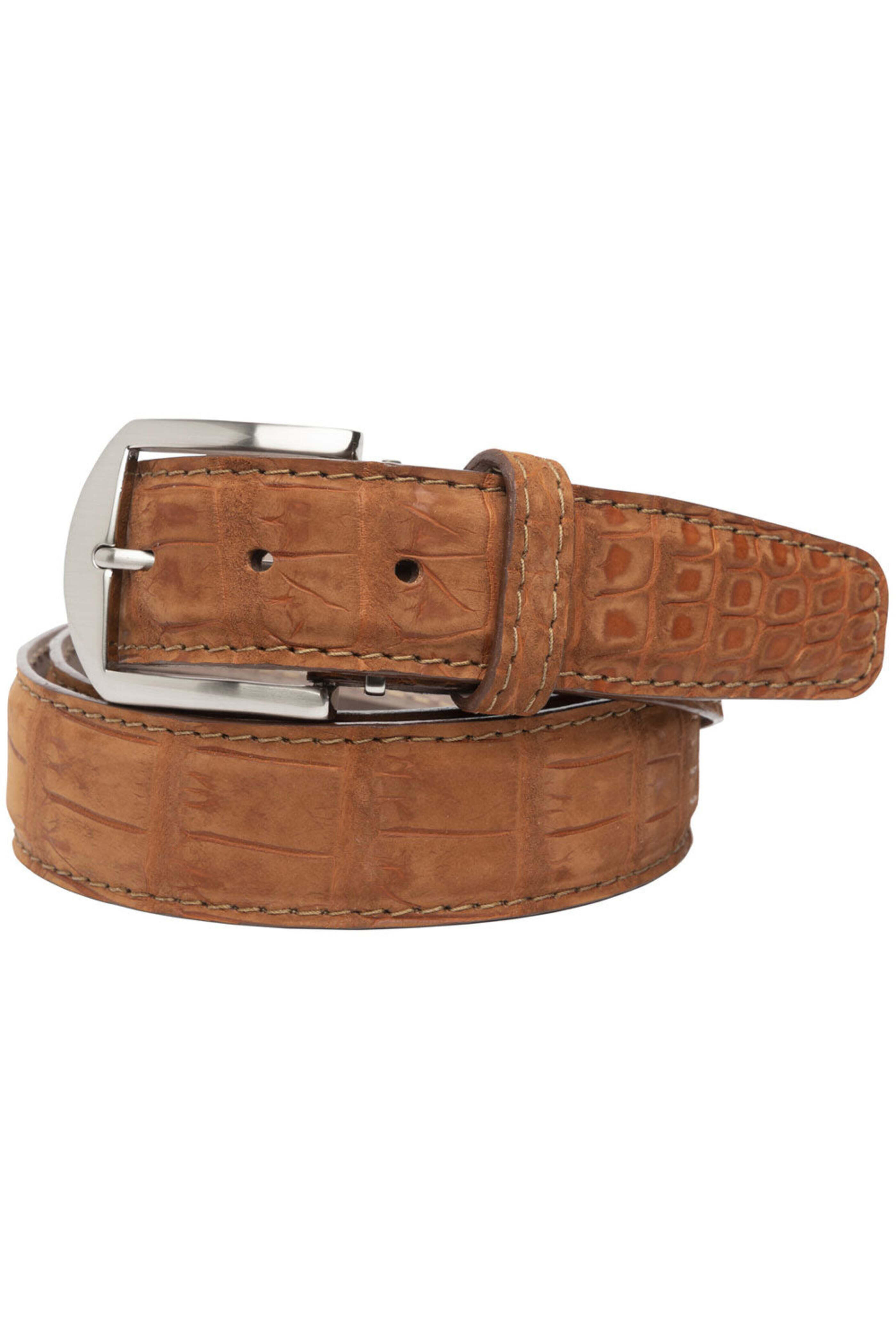 Buffed American Alligator outer. Adjustable with single loop keeper. Brushed nickel hardware. Tonal stitching. Made in USA. L.E.N. belts are cut to fit. You may have your belt sized by the cobbler of your choice, or if you are local, we are happy to assist you in store.. You may also have your belt cut to size before it is shipped. Please note, once a belt is cut to size it is final sale and cannot be returned.. We recommend belt sizing to be 2" larger than your pant size. Please list your belt size in the order comments when placing your order. Please contact us for any questions about sizing.. 40 mm.
