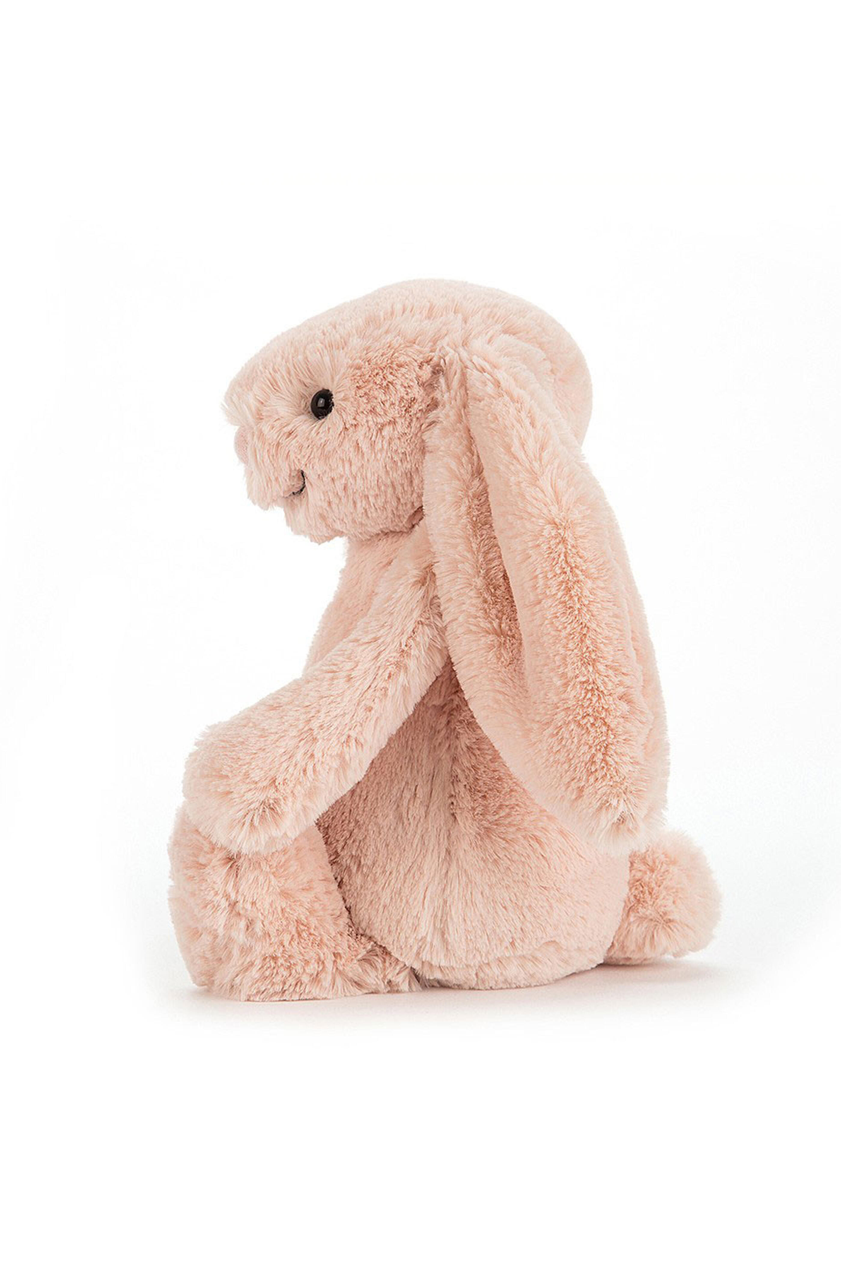 Main Materials: Polyester. Inner Filling: Polyester Fibers, PE Beans. Blush Bunny is Bashful Beige Bunny’s younger cousin – though she’s always insisted on having her own look (soft rose fur and a delicate ear flick that speaks volumes). She’s the social secretary of the crew: coordinating picnic schedules, sending thank you notes, and making sure celebratory cakes have at least some fruit involved. Her idea of a wild time involves reorganizing the gift-wrapping drawer. That said, she’s more than happy to pencil some time with you into her planner!. Hard eye. Made in London. Dimensions: 7.1” x 3.5” x 3.1”. Sitting Height: 5”. Care Instructions: 86 degree Fahrenheit wash only. Do not tumble dry, dry clean, or iron. Check all labels upon arrival of purchase.