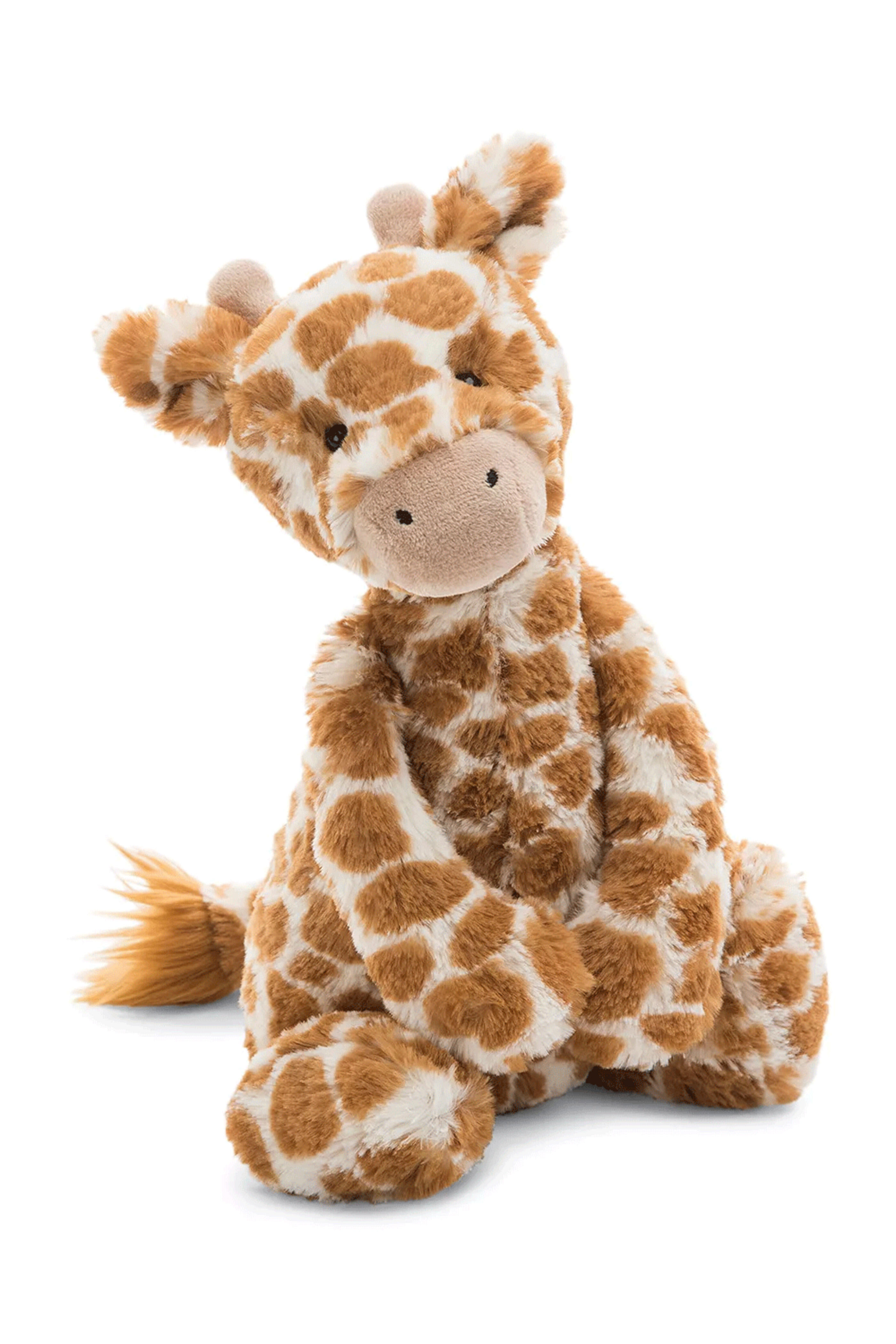 Jellycat Bashful Giraffe. Suitable for all ages. Polyester with plastic pellet fill. 5€W x 12€H.