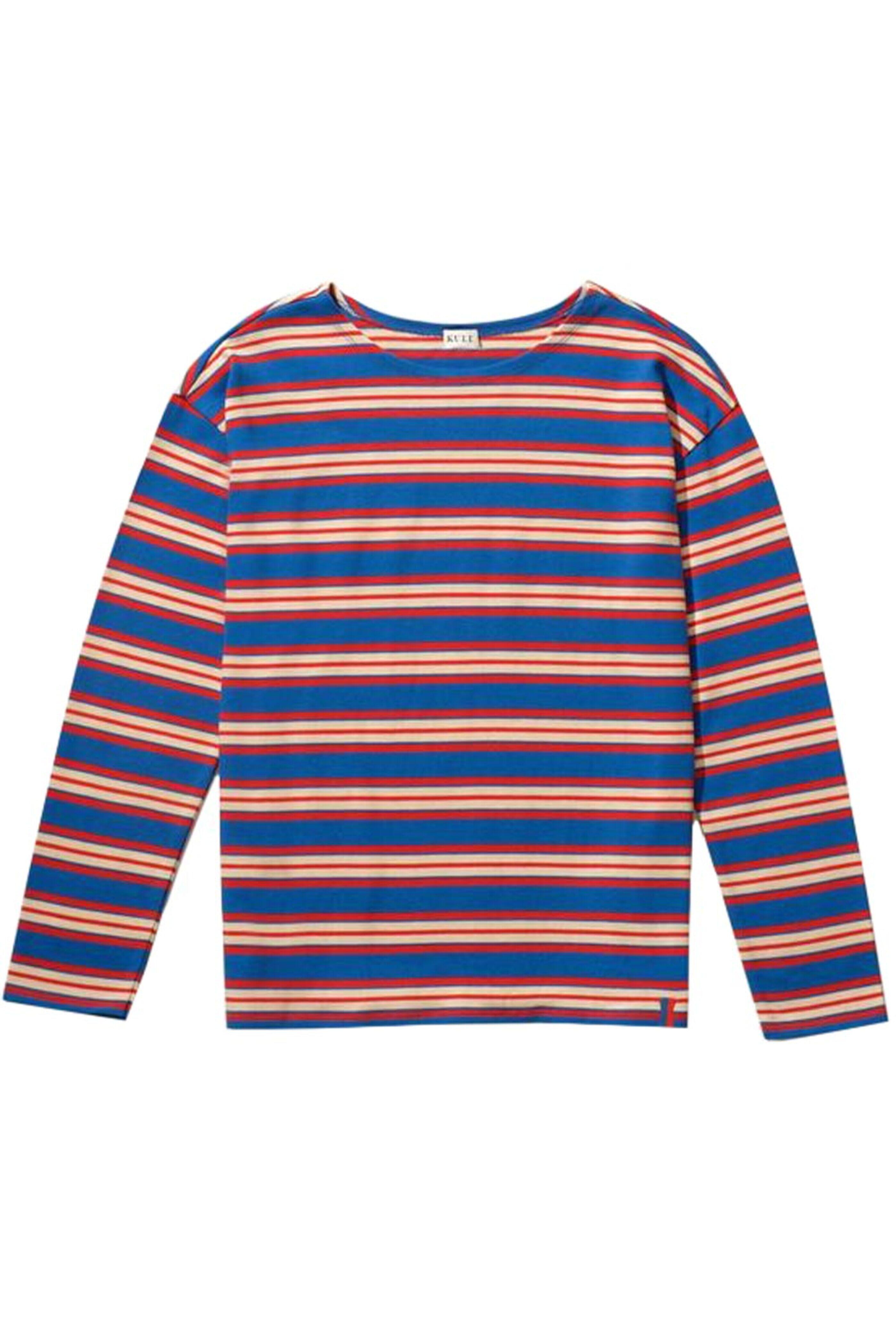 - Kule The Karla Long Sleeve Tee in Multi Stripe Round neck Drop shoulder Long sleeves Oversized fit Straight hem Unlined 100% cotton