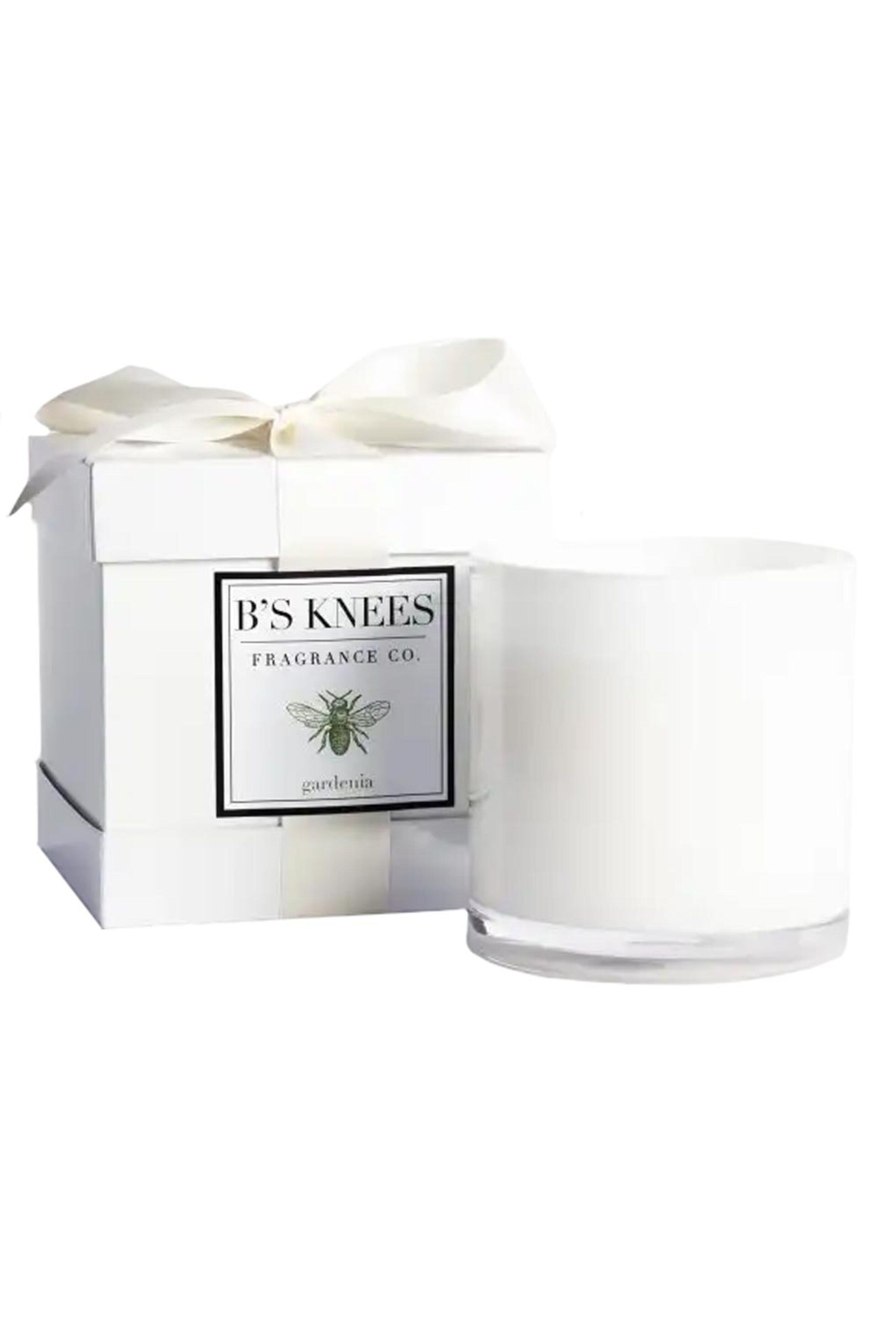 - Bs Knees Gardenia Single Wick Candle Natural essential oil based fragrance of white gardenia flower with notes of green garden vine and hints of paper whites~ jasmine~ and hyacinth Single wick; 100% pure~ untreated cotton wick Non-metal White glass container Made in USA