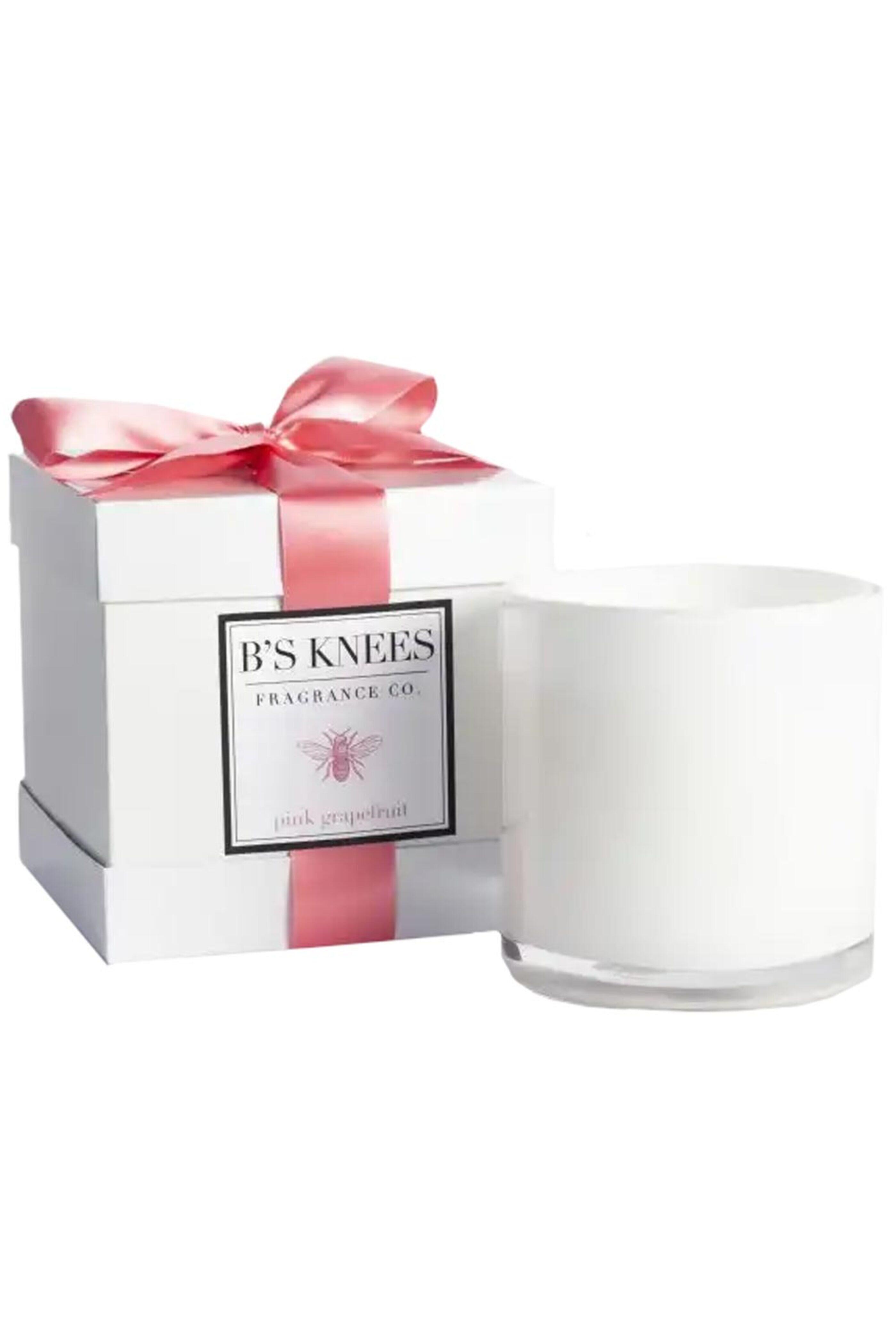 - Bs Knees Pink Grapefruit Single Wick Candle Natural essential oil based fragrance of fresh garden mint and mandarin orange with hints of thyme~ rhubarb~ bergamot~ and lemon zest Single wick; 100% pure~ untreated cotton wick Non-metal White glass container Made in USA