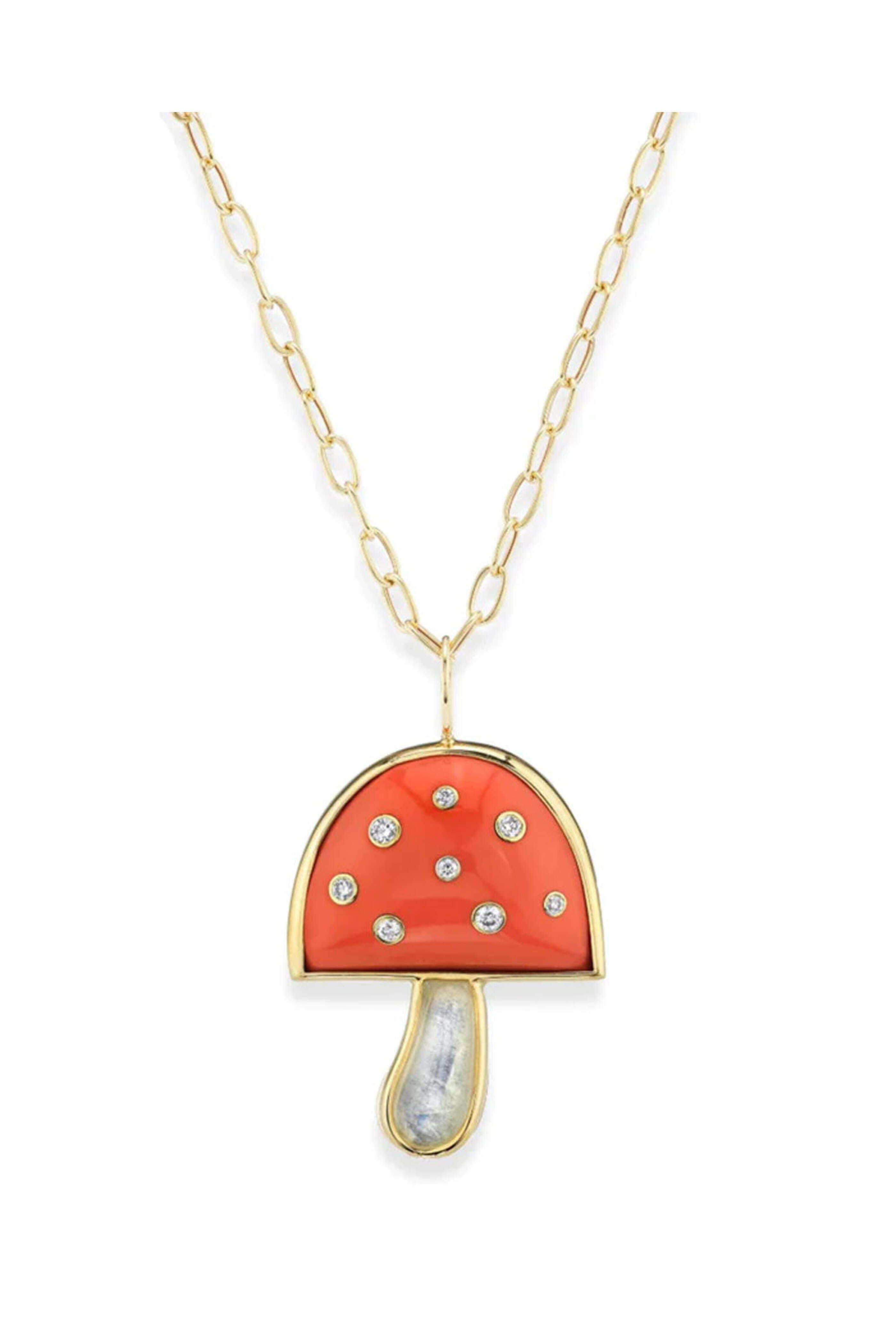 Diamond and Coral Magic Mushroom Pendant