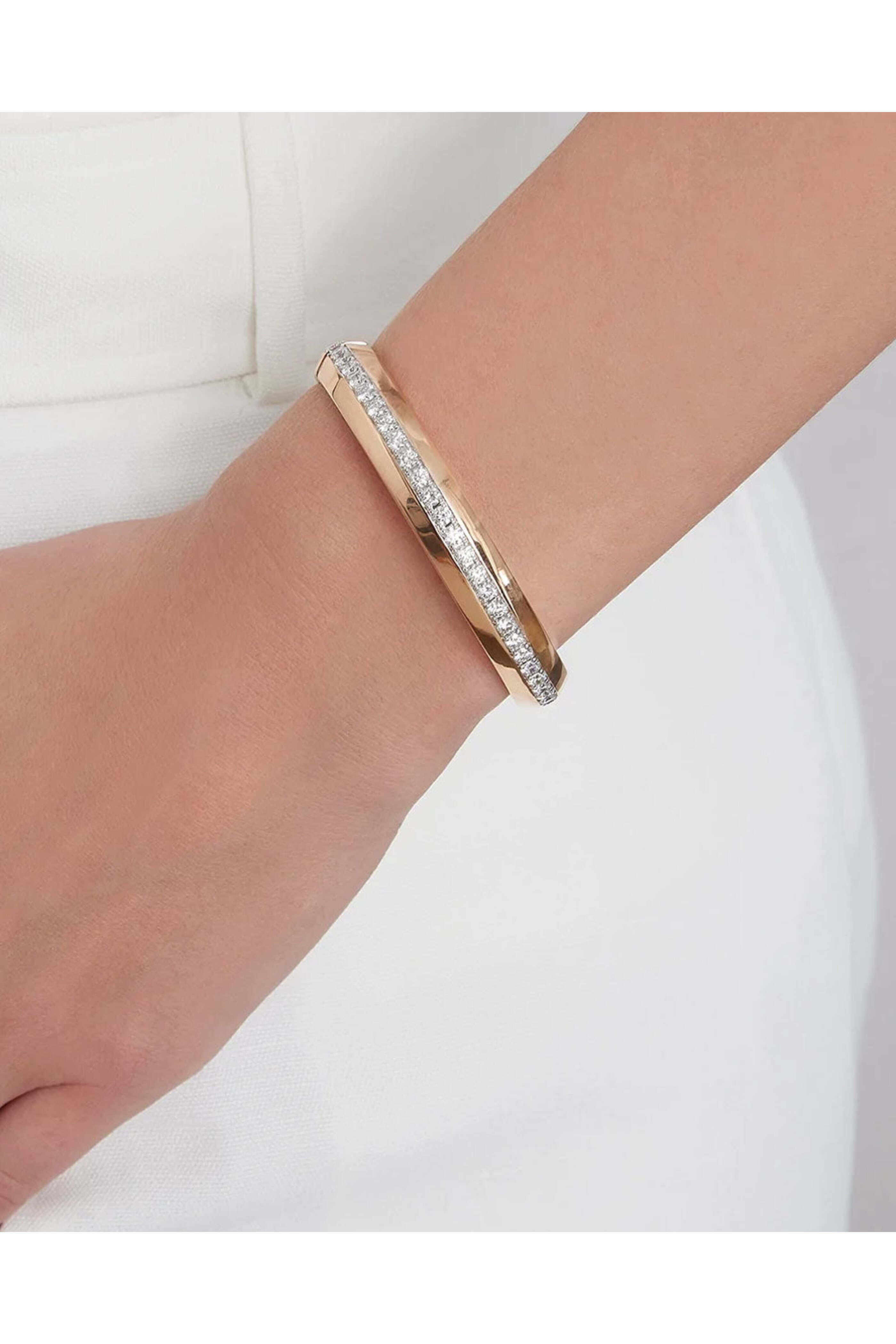 - Walters Faith 18k Rose Gold Angled Diamond Bangle Bracelet