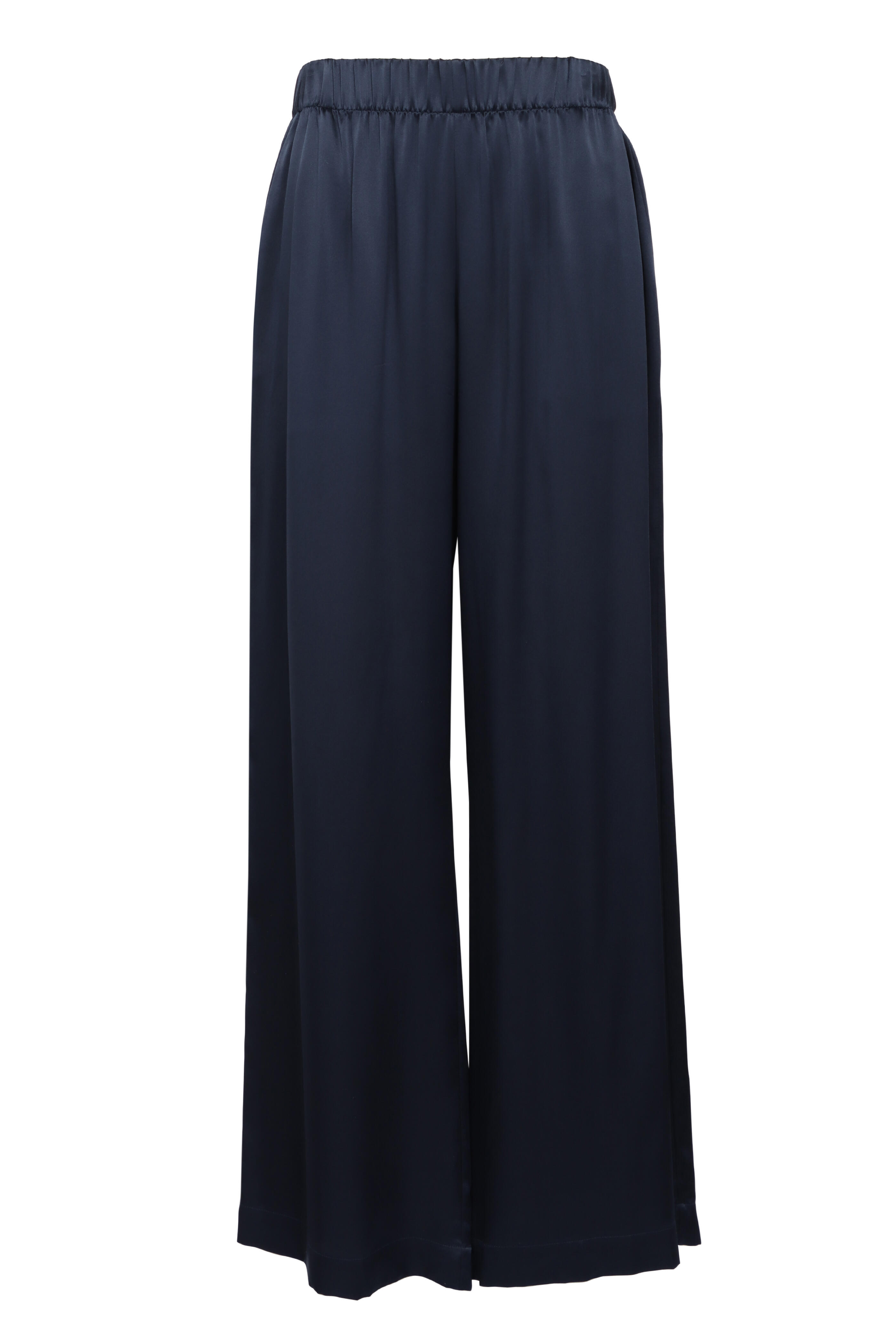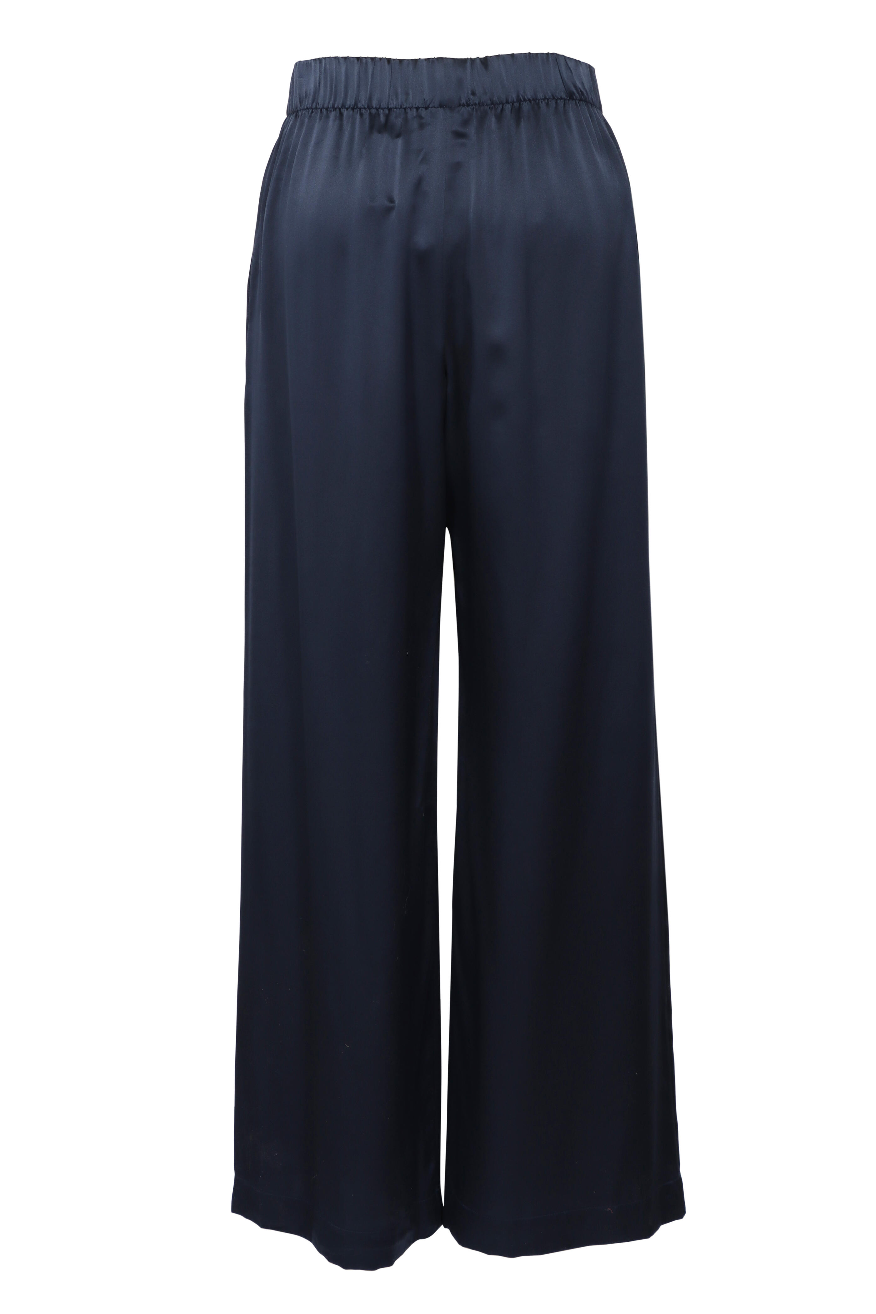 Elastic waist. Side slip pockets. Wide through leg. Made in LA. Full length. 100% silk. Dry clean.
