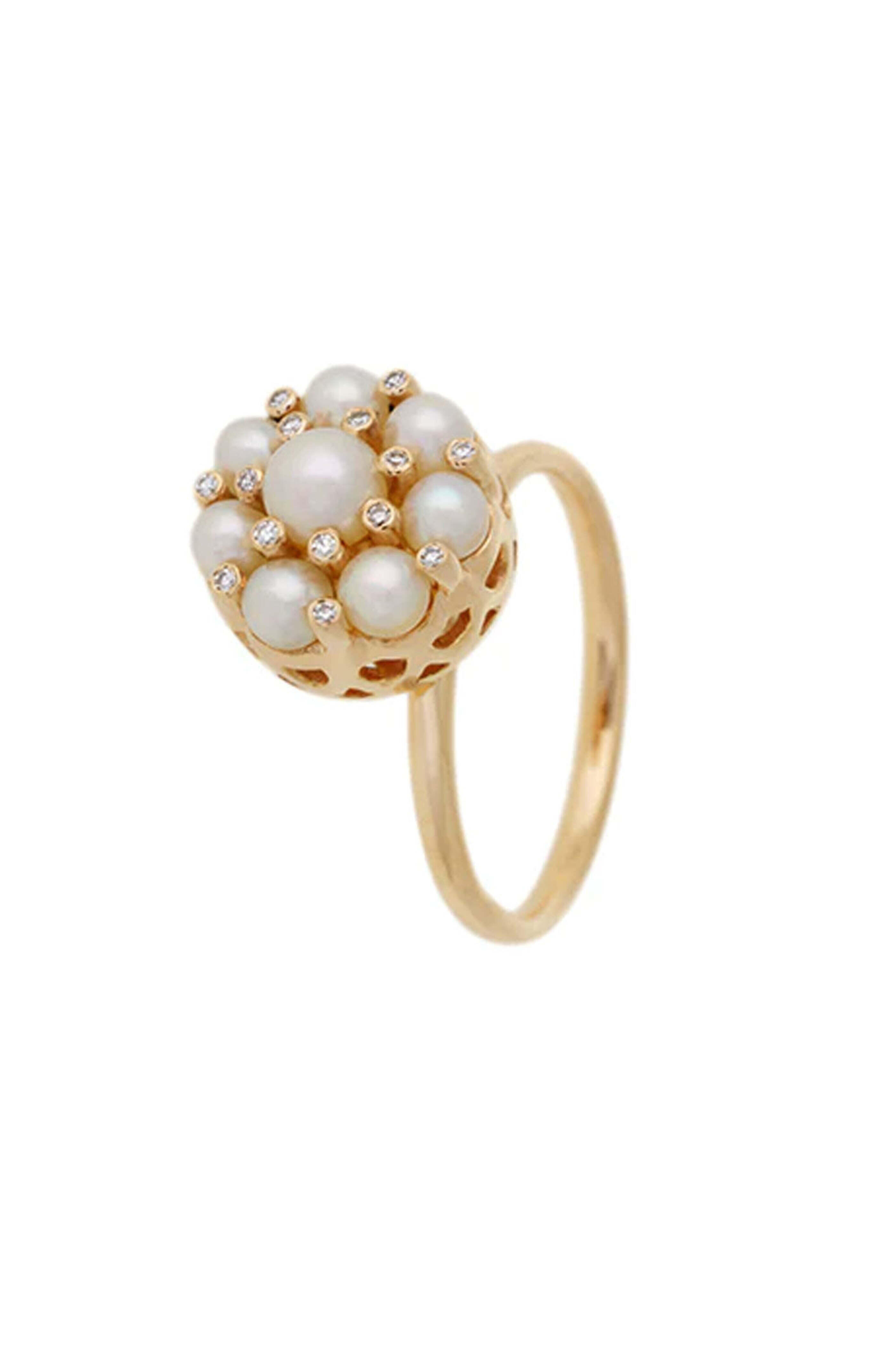Selim Mouzannar Sarl Pearl and Diamond Beirut Rosace Ring. 18k yellow gold. Pearl 2.25 total carat weight. Diamond 0.05 total carat weight. Stack ring. 13mm. Call for ring size.