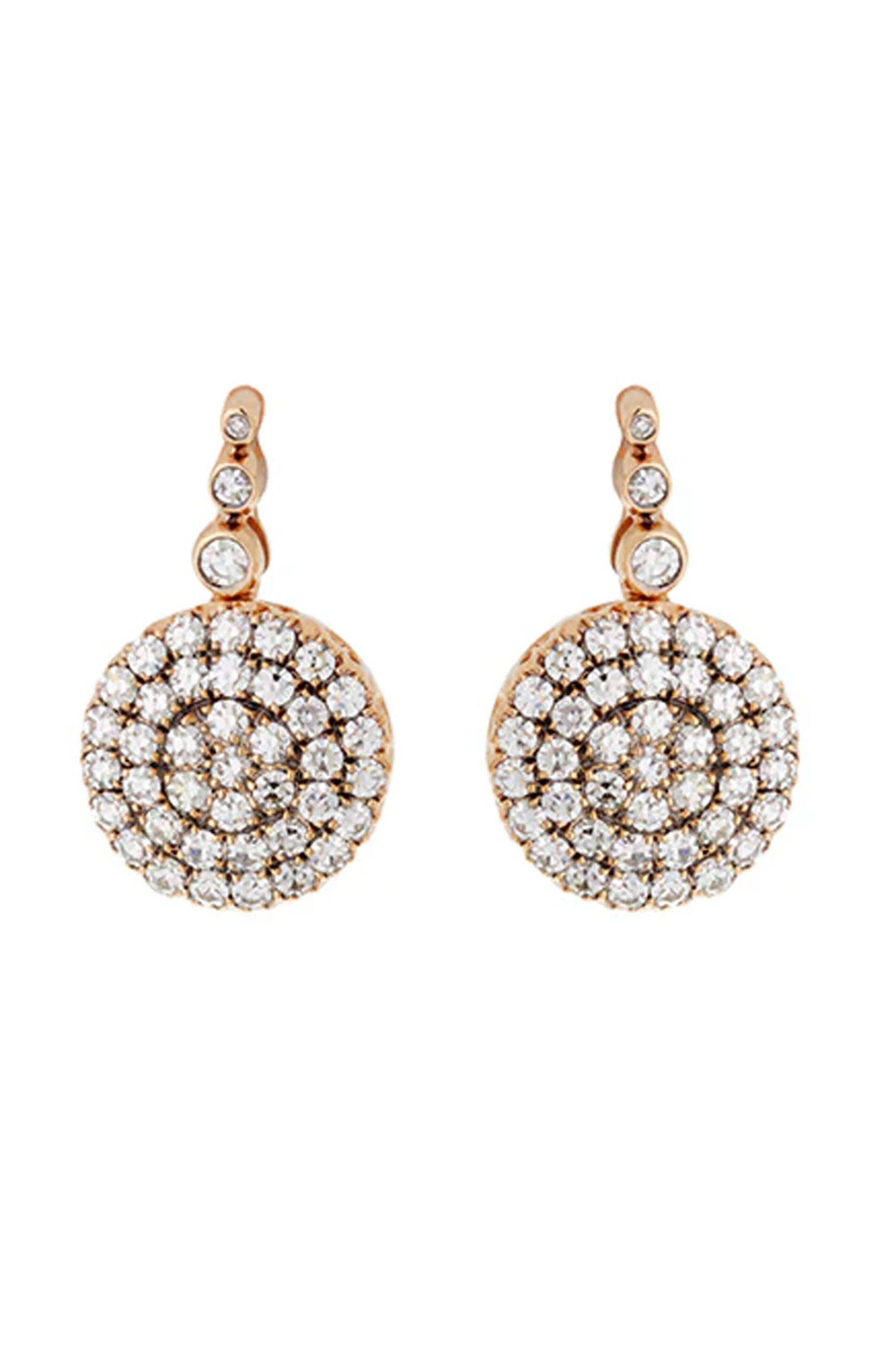 Selim Mouzannar Sarl Pavé Diamond Beirut Earrings. Rose gold. Diamond 3.31 total carat weight. Disc detailing. Drop style. Triple diamond drop post back.