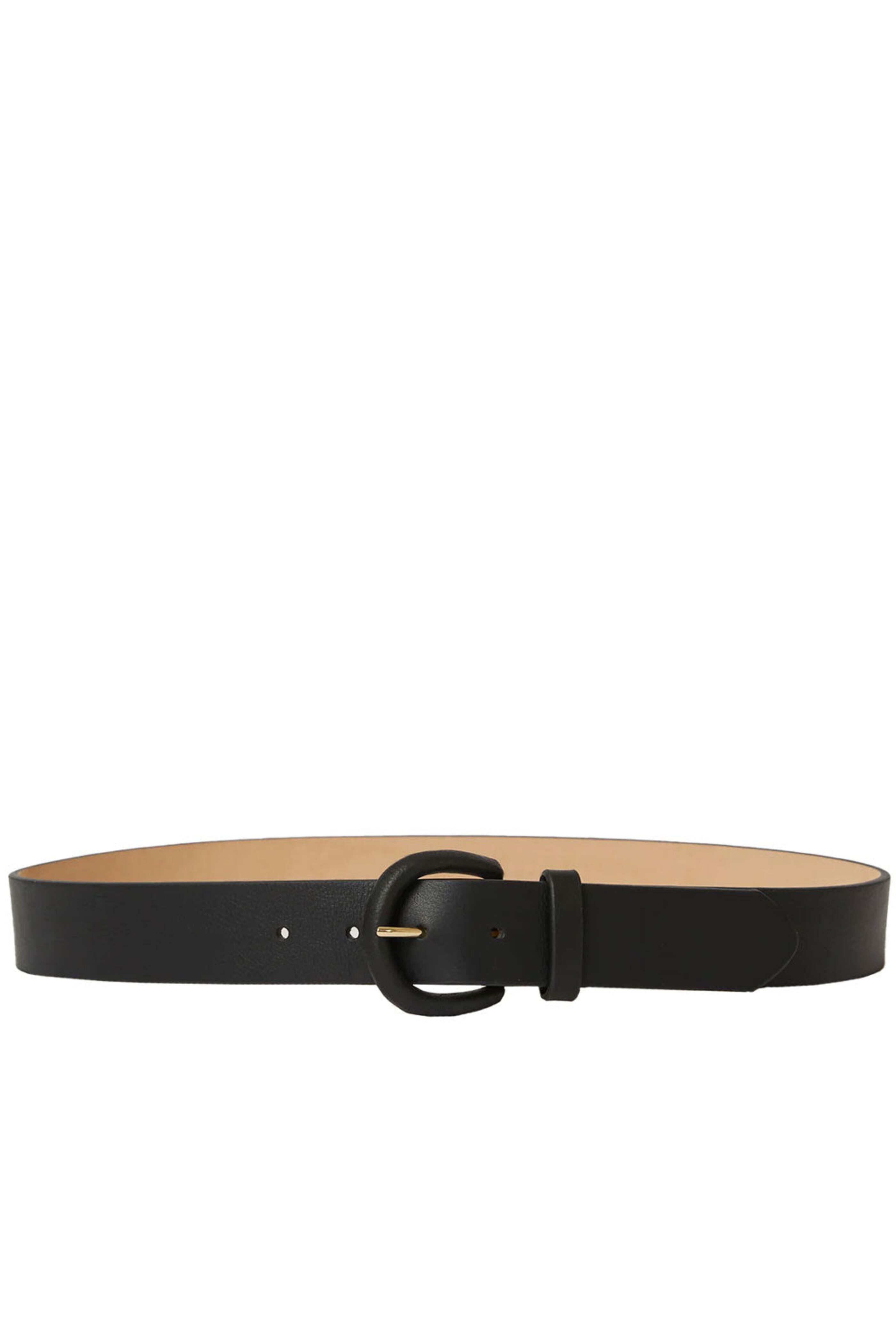 B-Low the Belt Yara Belt in Black. Pointed tip. Gold buckle. Adjustment: 5 holes. Waist belt. Genuine leather outer. Nubuck lining. 1.375W.