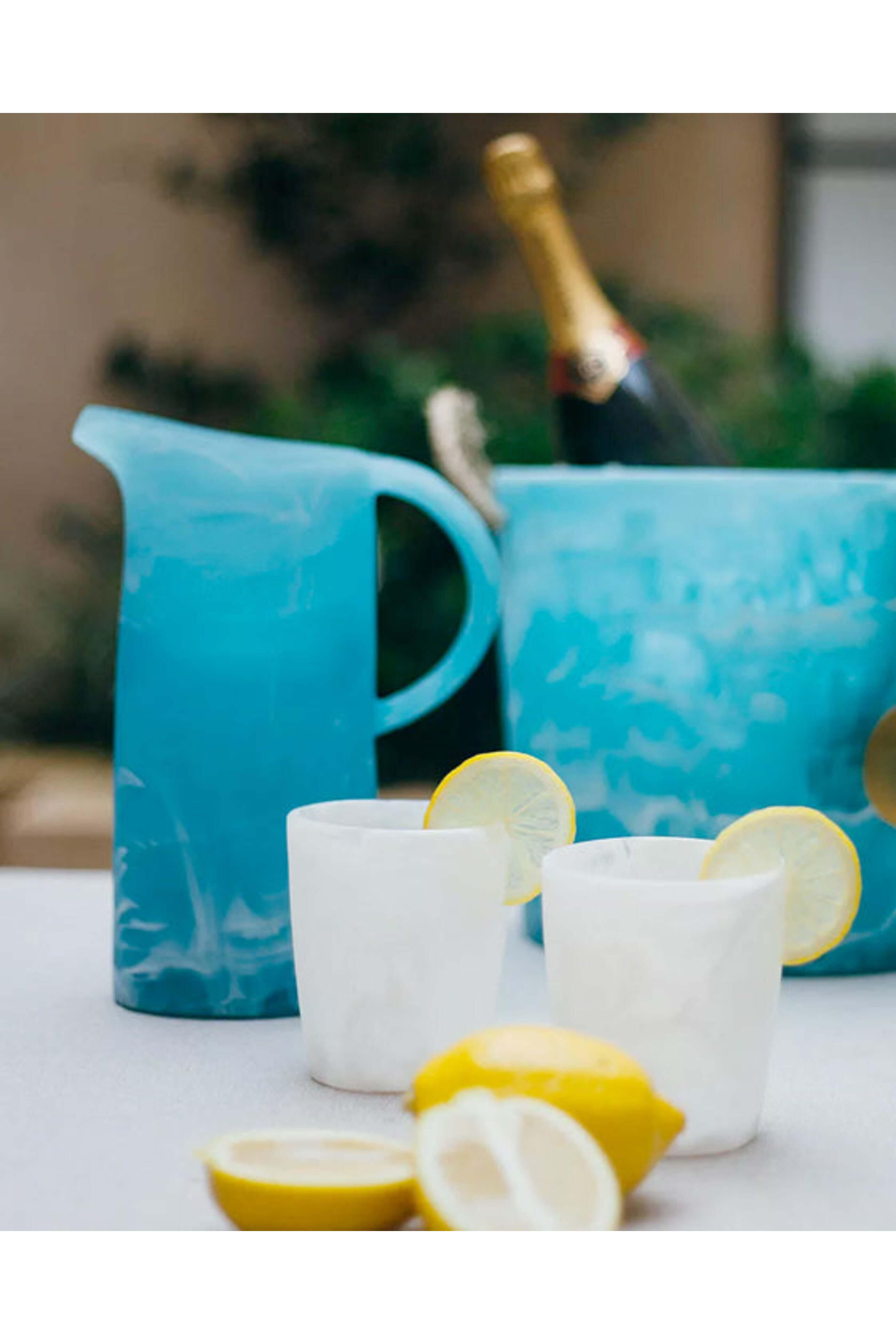 Nashi Home Resin Classical Jug. Blue cast resin. Dimensions: 9.84 x 5.51 inches. Weight: 2.56 lbs. Imported. BPA Free. Lead Free. Non Porous. Do not use abrasive cleaners or scouring pads. This product is hand crafted. Each piece is individually poured. Making every piece unique. Please understand that due to the nature of the material slight variation in color may occur.. Rinse or wash immediately after use. Hand wash only with mild soap.