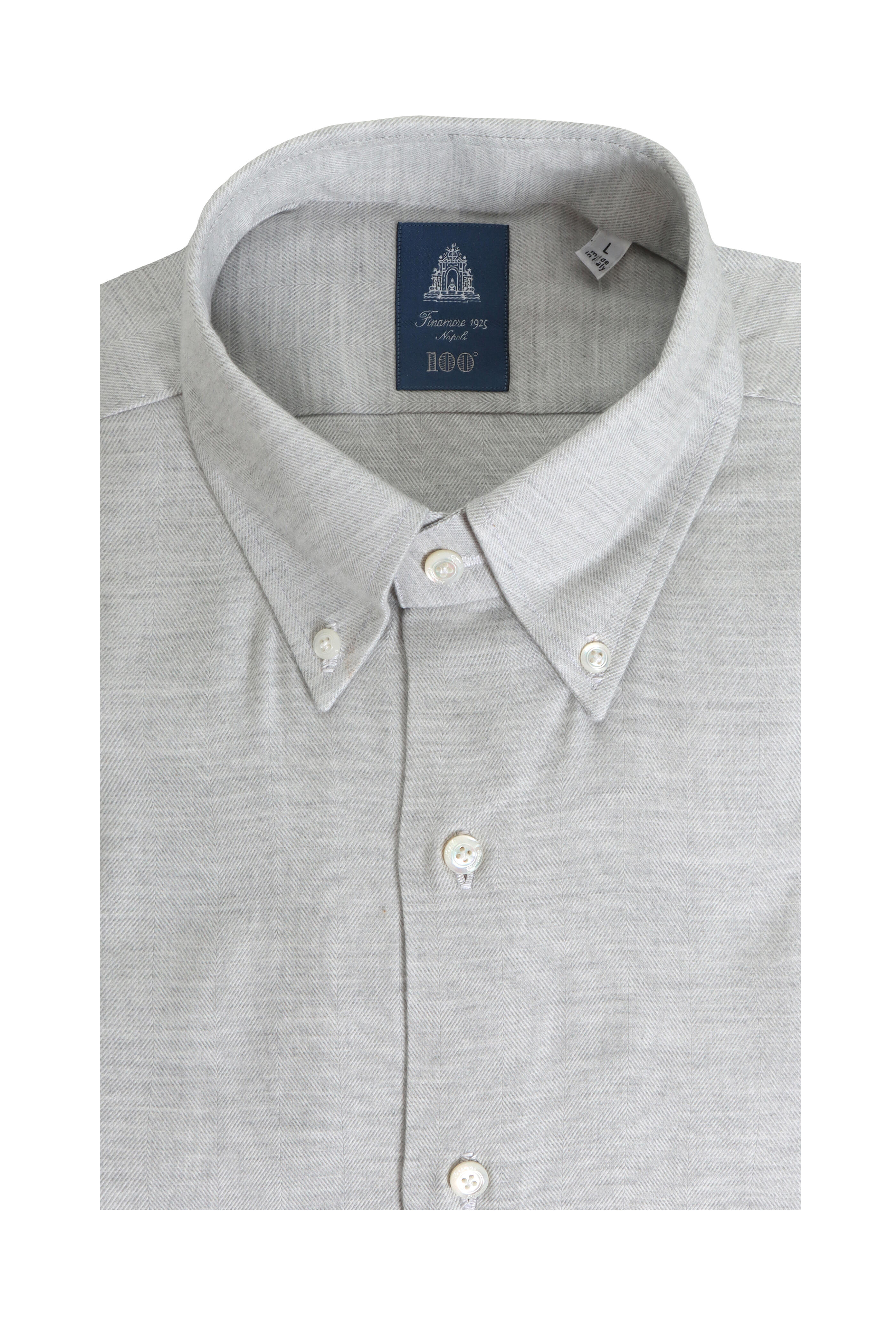 Button down pointed collar. French front button placket. Single button cuffs. Made in Italy. 59% cotton, 41% lyocell. Dry clean.