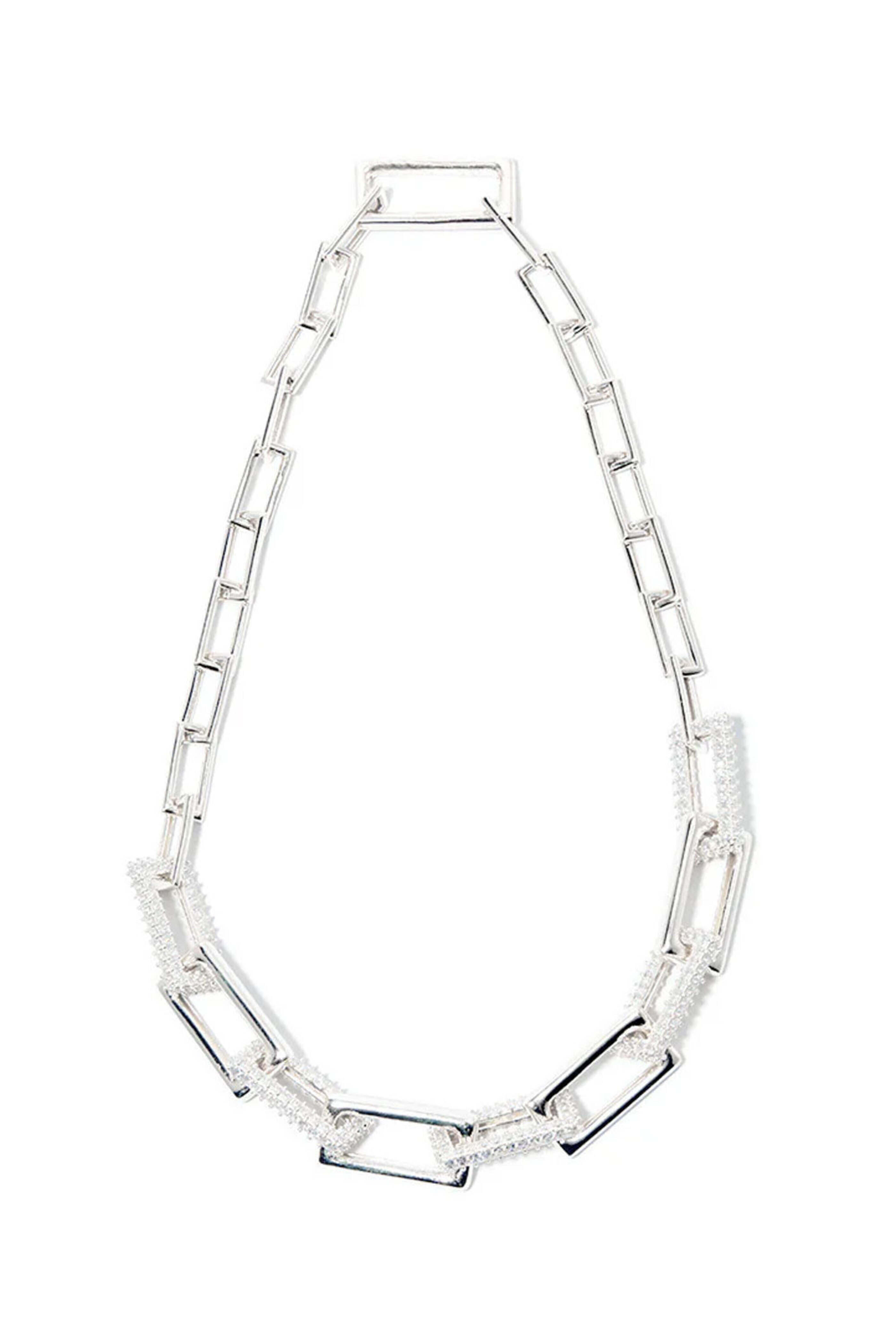 Nickho Rey Block Link Necklace. 14k white gold. Crystals. Link chain. Collar link style. 16 L. Link clasps.