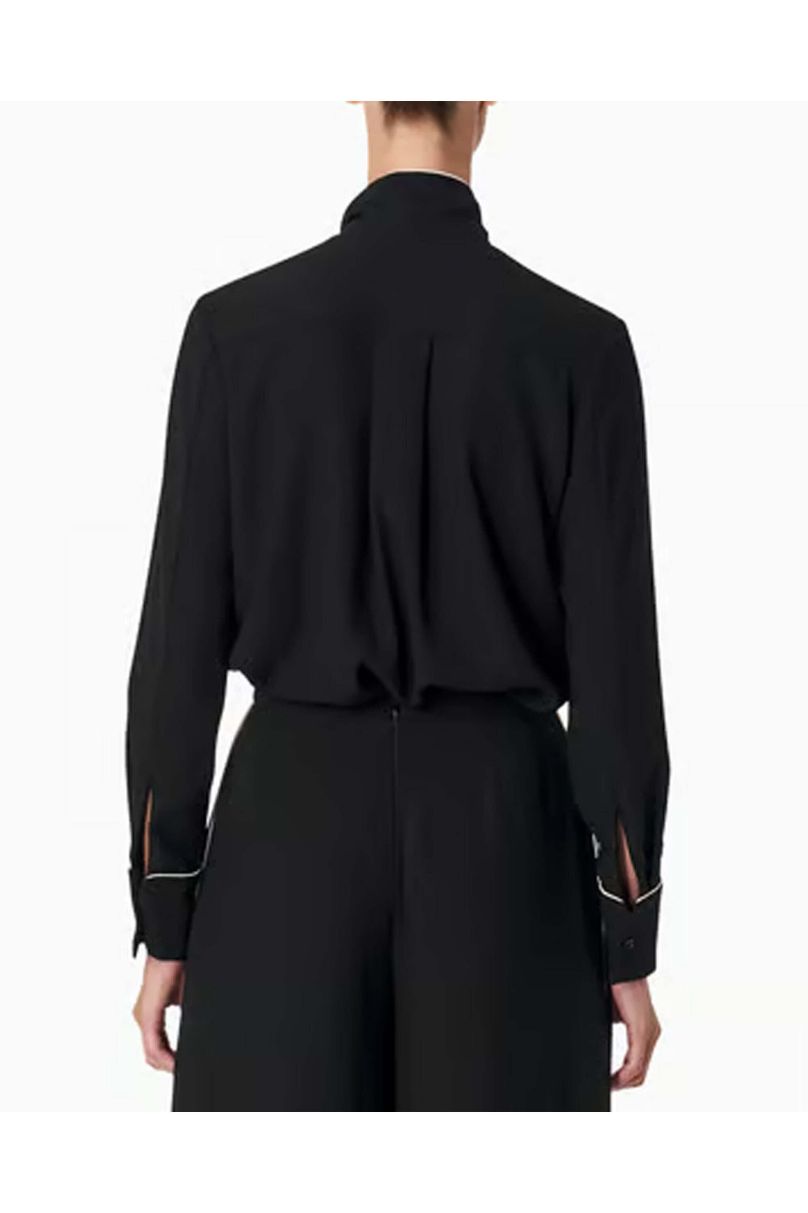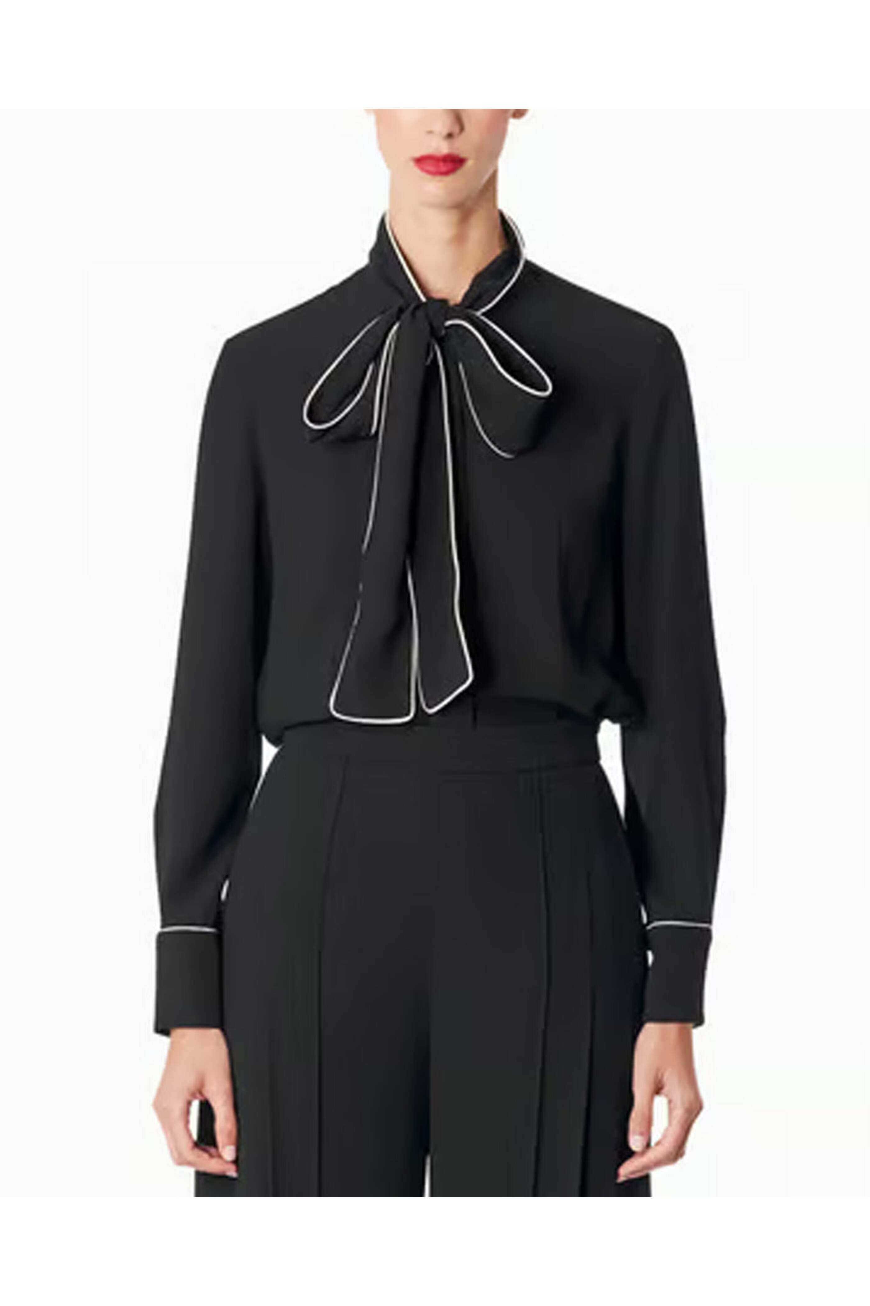 - Carolina Herrera Black Pearl Bow Front Button Up Shirt