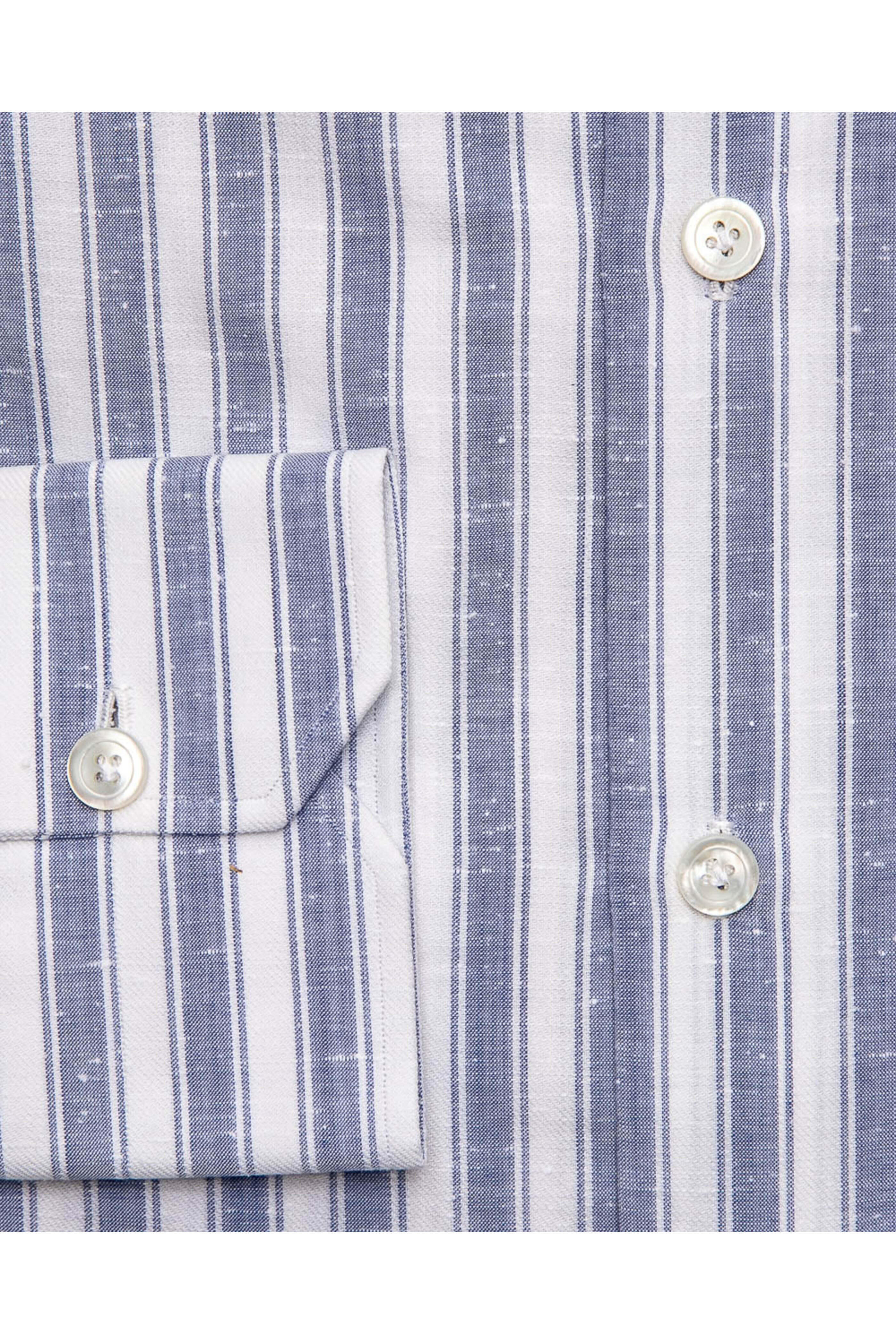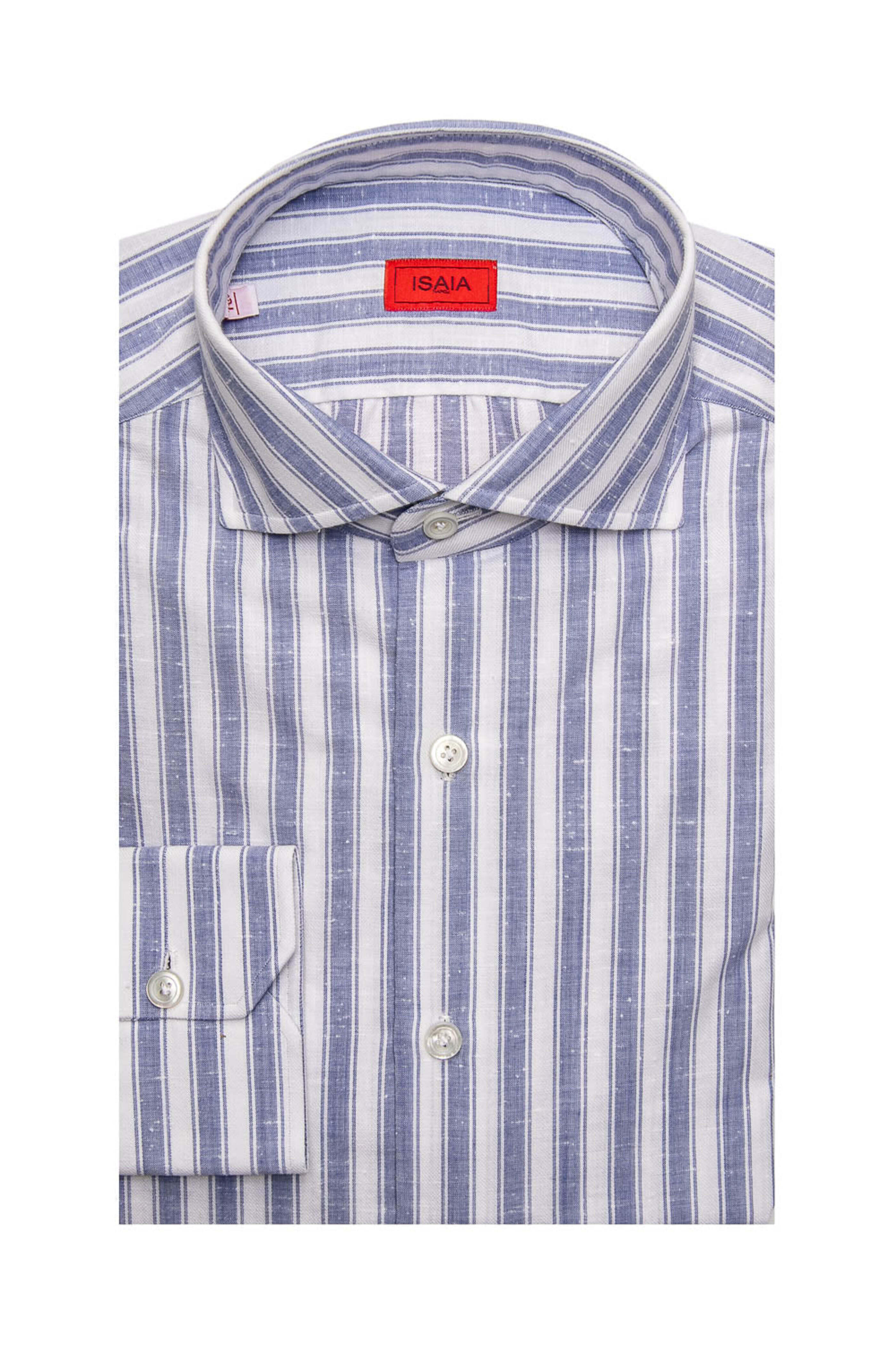 - Isaia Sky Blue and White Stripe Shirt M body fit (modern fit) Spread collar Mitered cut cuff Single button cuff 100% cotton Made in Italy