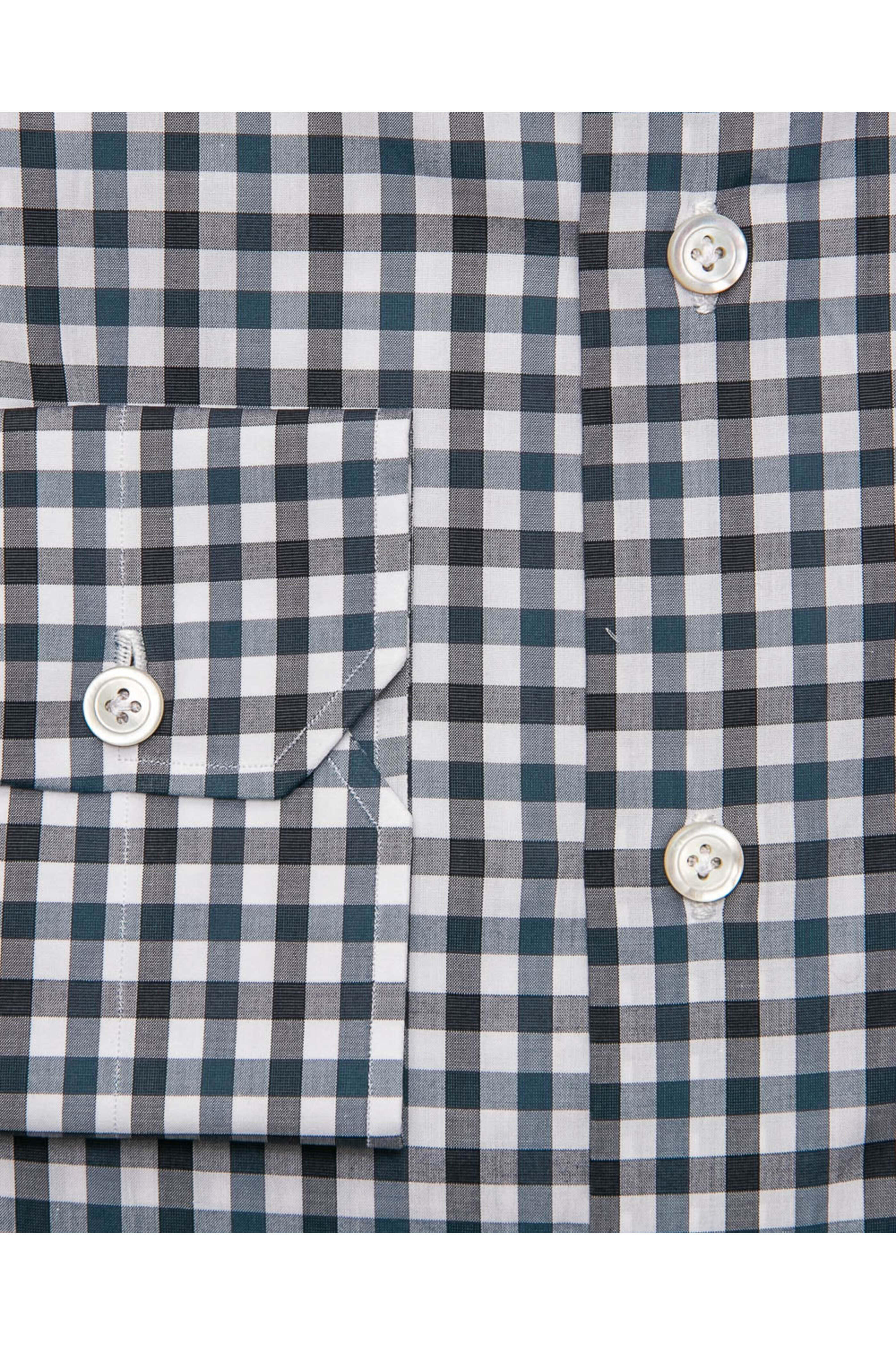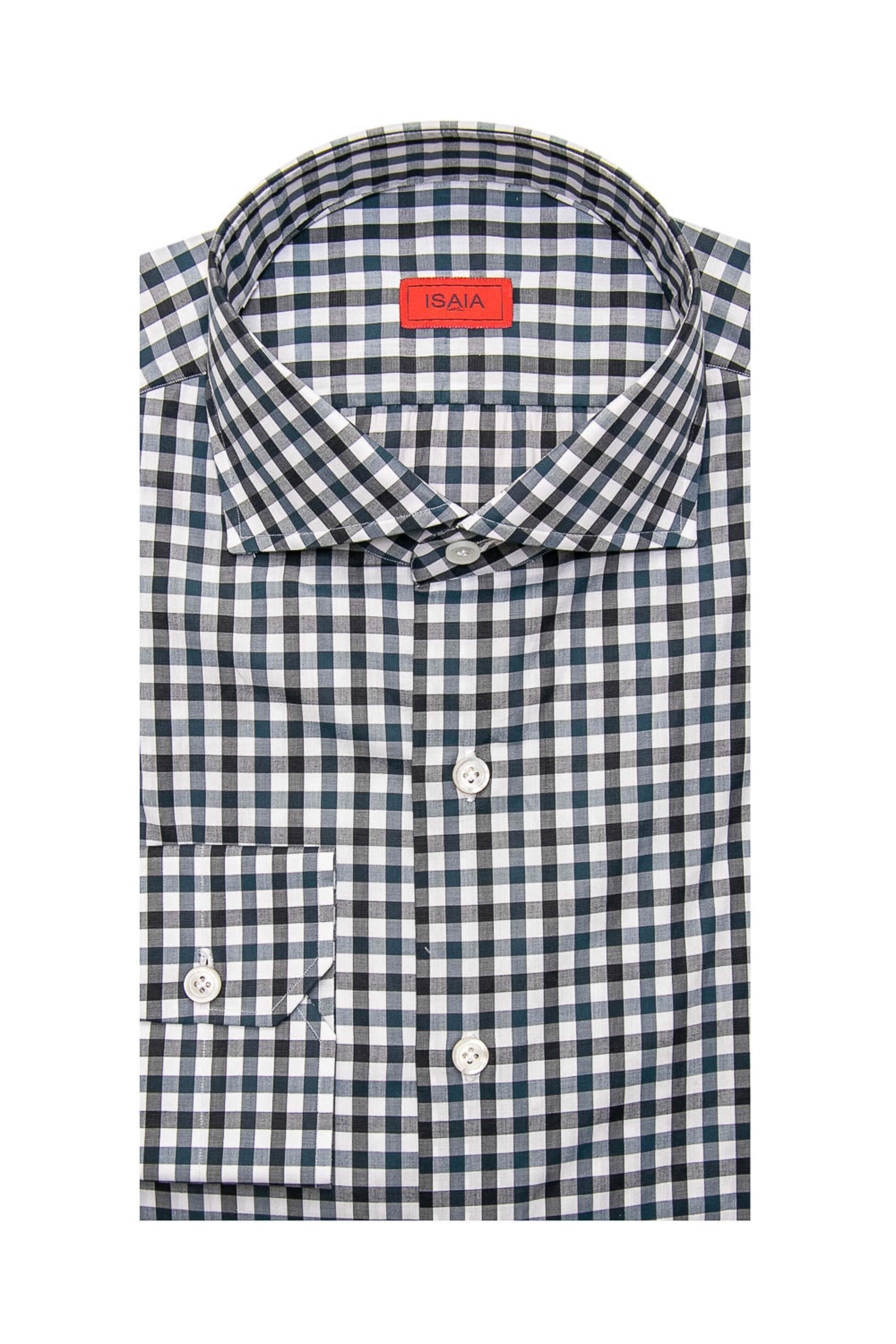 - Isaia Dark Teal and Black Gingham Shirt I body fit (traditional fit) Spread collar Mitered cut cuff Single button cuff 100% cotton Made in Italy