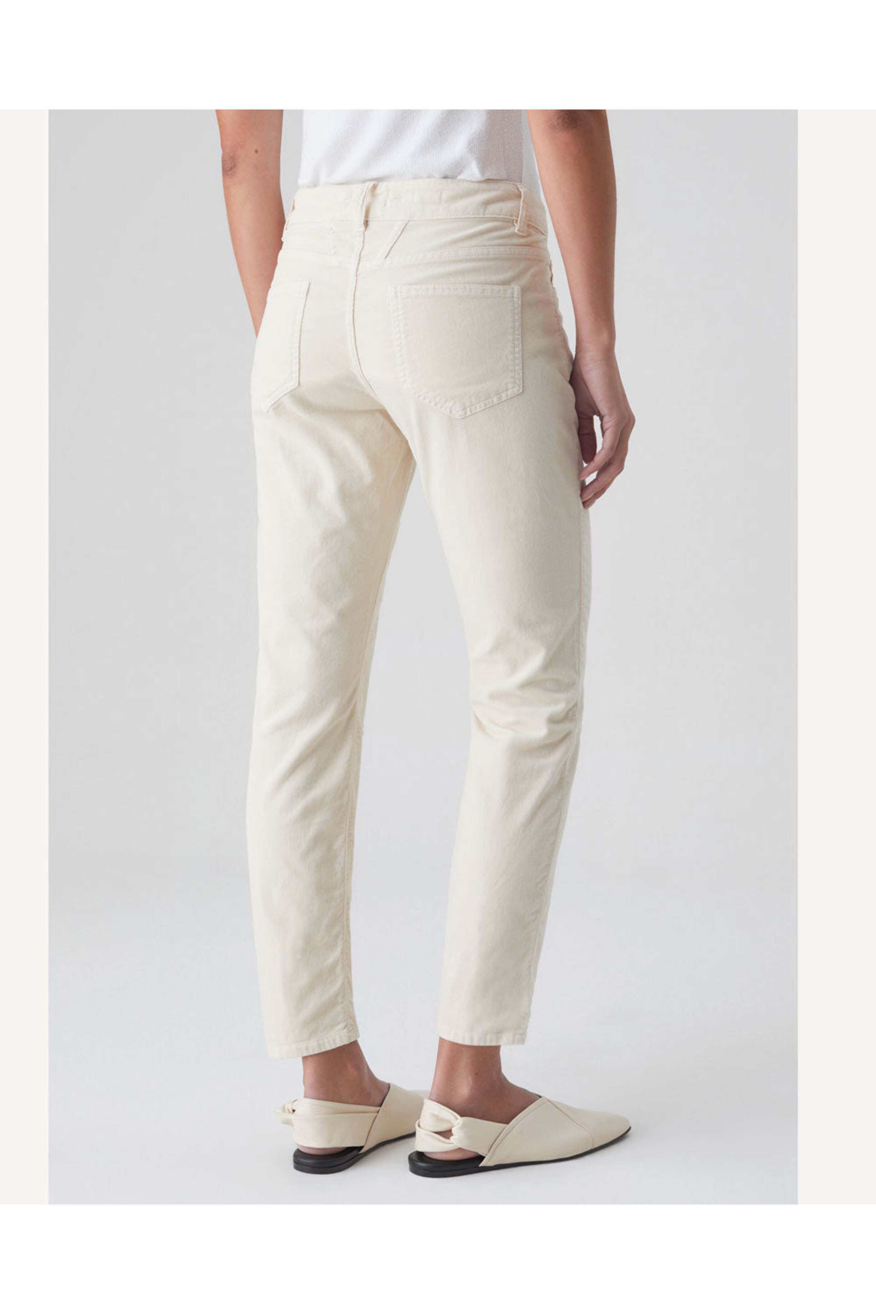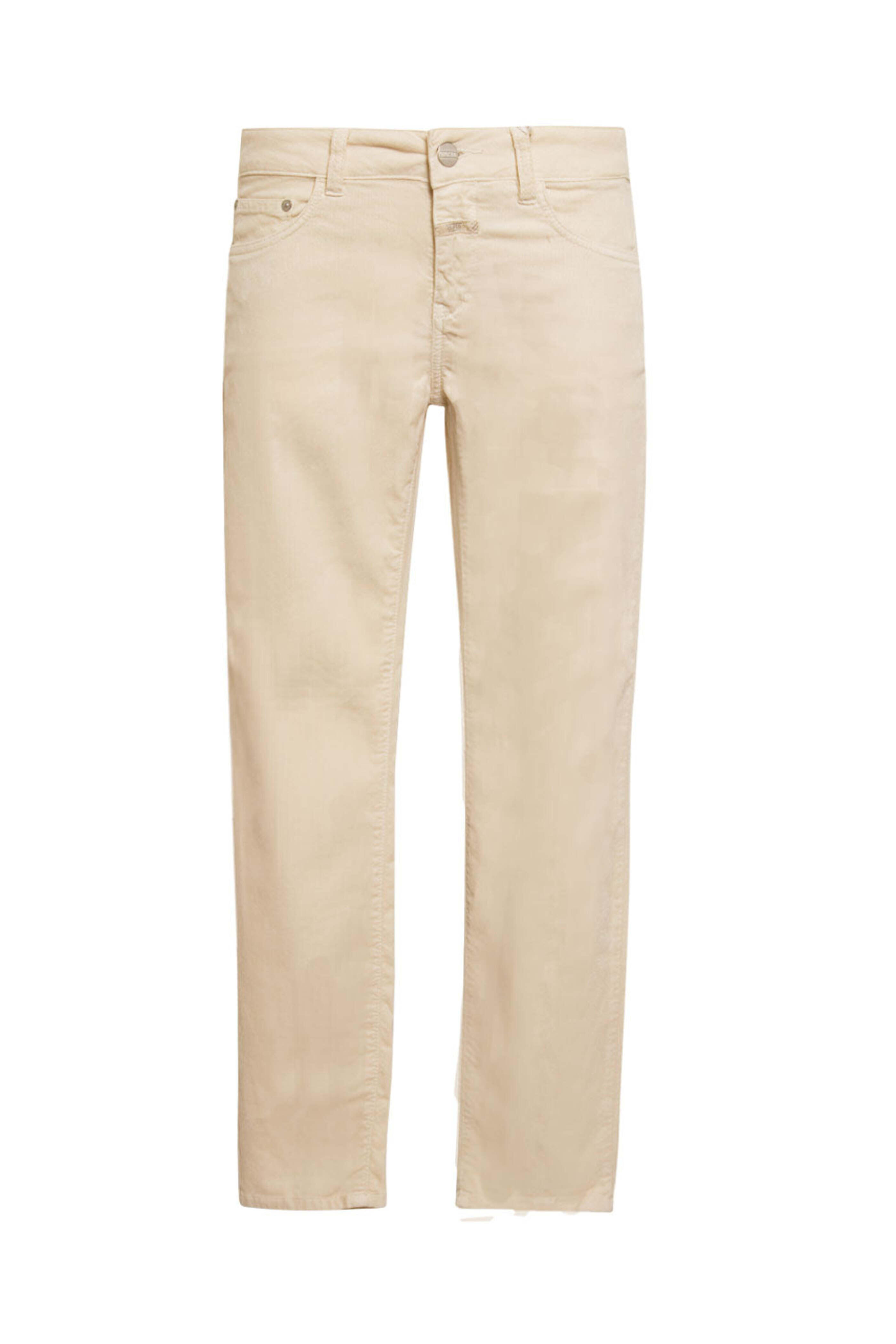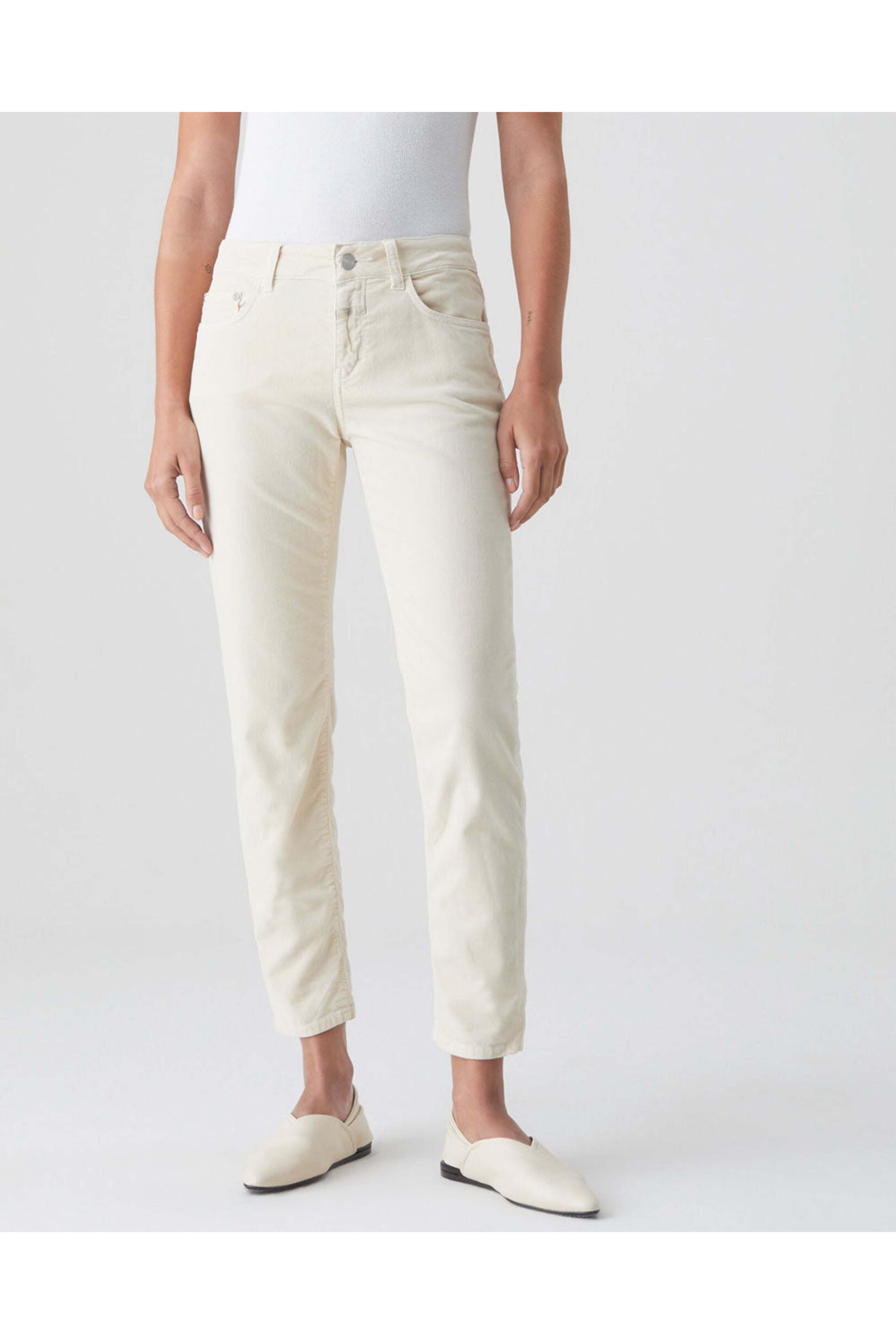 Closed Baker Velvet Pants in Nude. Mid rise. Button closure. Zip fly. Belt loops. 5 pocket style. Cropped hem. Straight silhouette. Relaxed fit. Velvet fabrication. Made in Italy. 35% organic cotton, 35% lyocell, 29% cotton, 1% elastane.