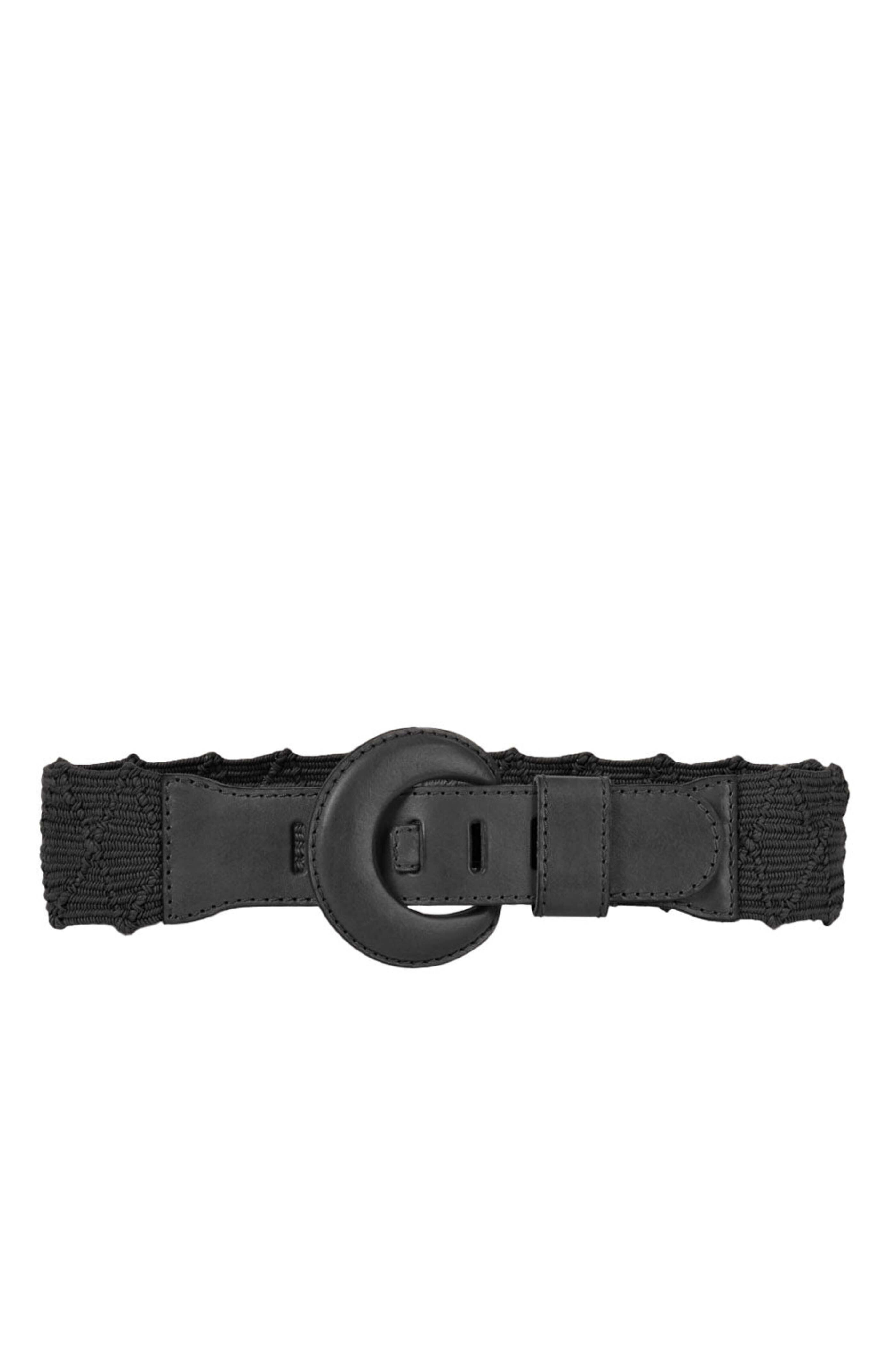 Woven stretch band. Round tip. Front buckle closure. Adjustable. Leather lining. Made in Italy. Stretch fit.