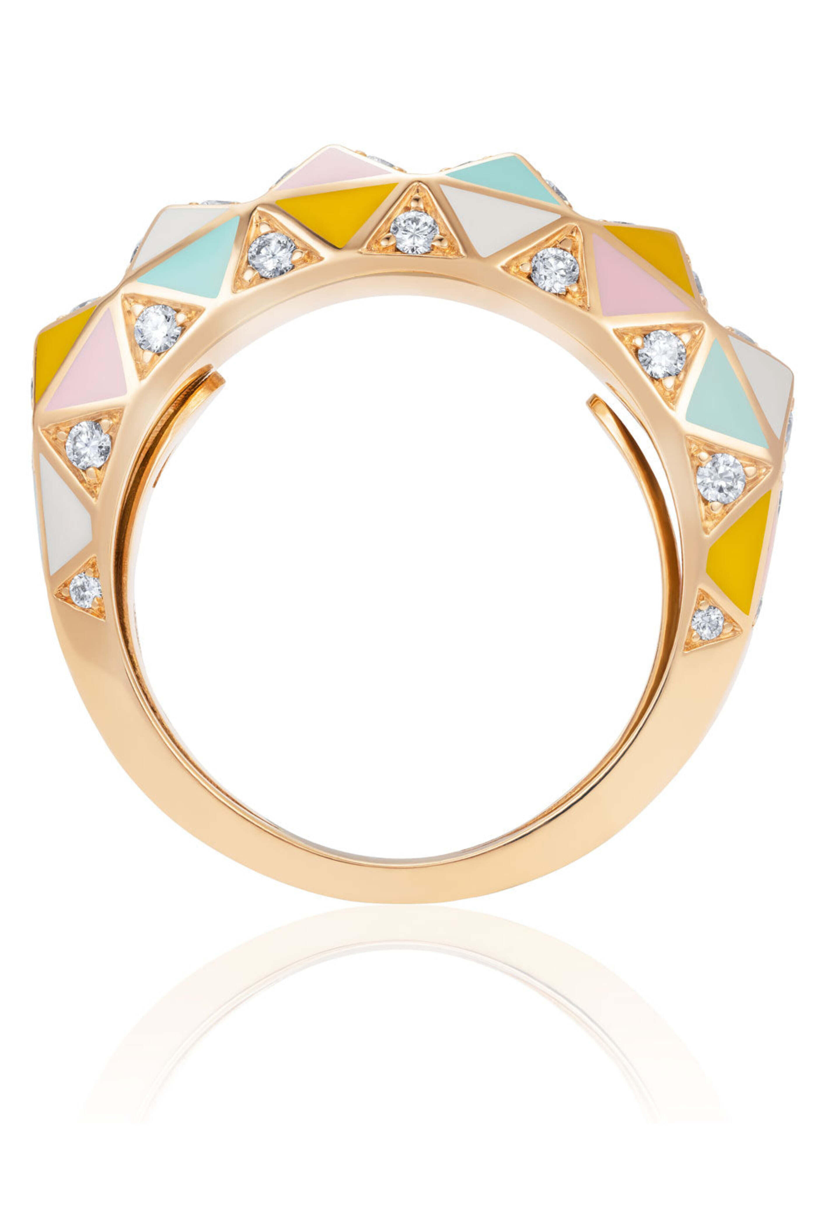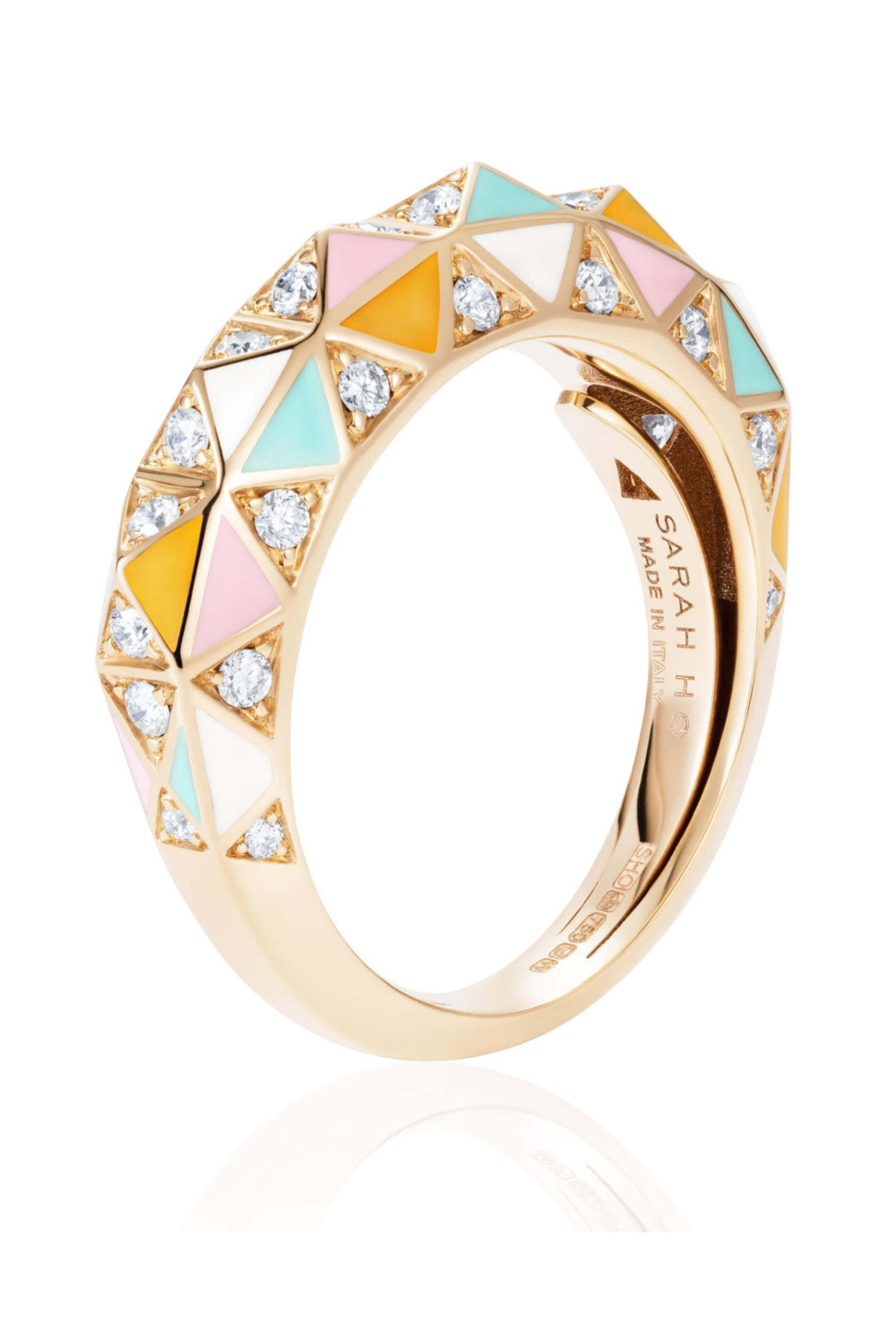 Sarah Ho London Champagne Gold and Enamel Candy Rock Enamel Ring. 18k champagne gold. Pastel enamel. 0.40 ct. diamonds. Band style. Candy Collection.