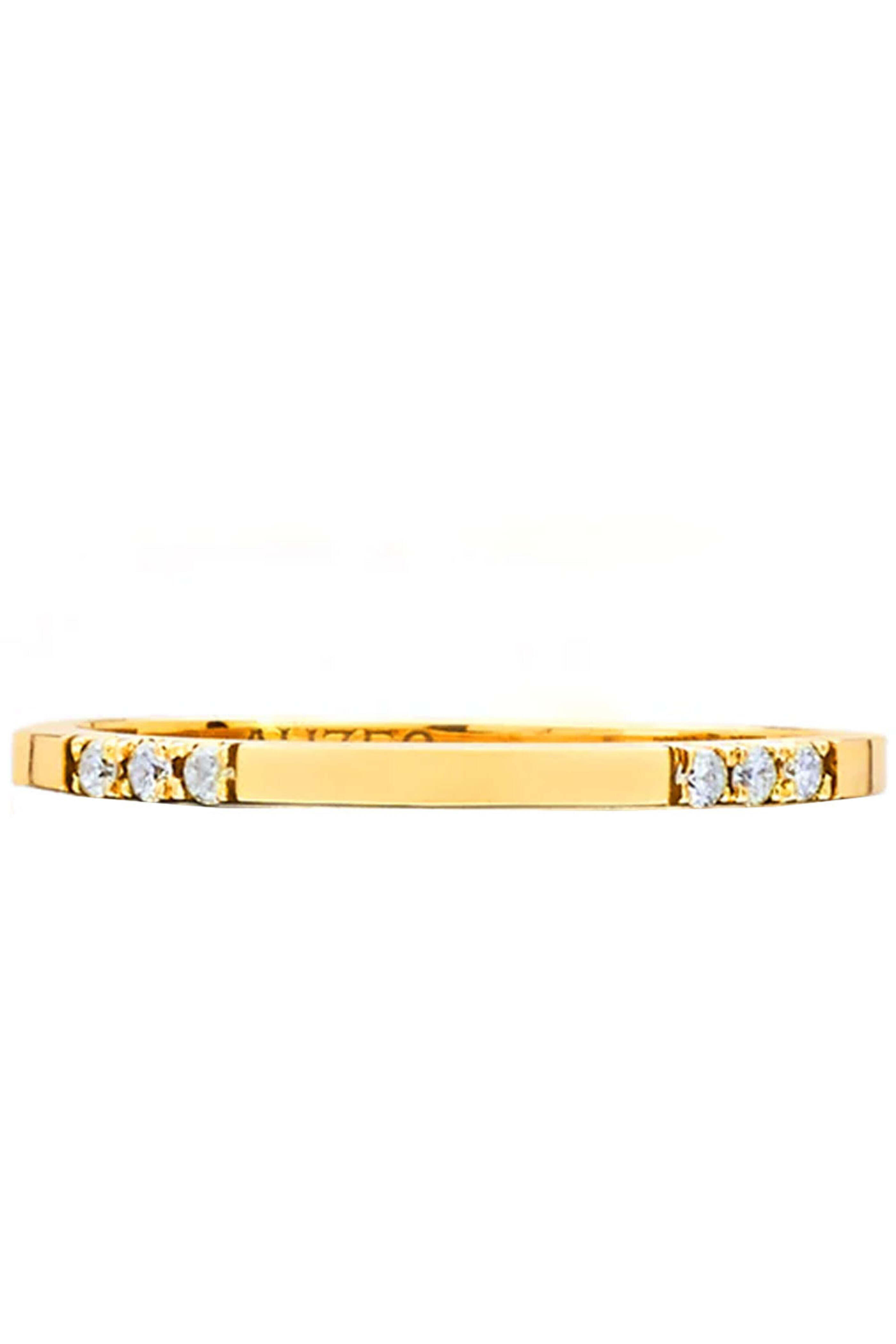.925Suneera Cari Gold Band. 14k yellow gold. Diamond 0.28 total carat weight. Four stations of three diamonds. Square edged band. Stacking ring. 0.06 W. Ring size 6.5. Handcrafted in L.A.