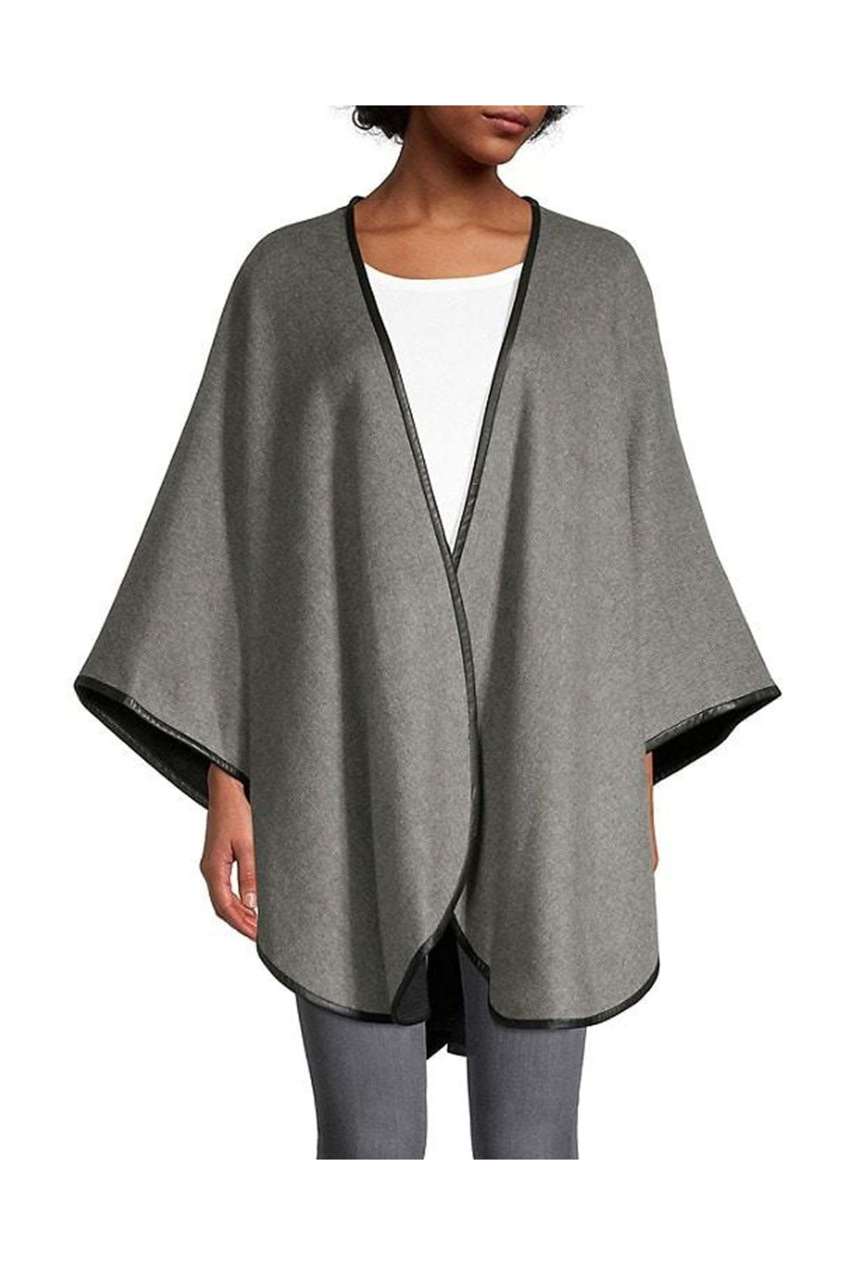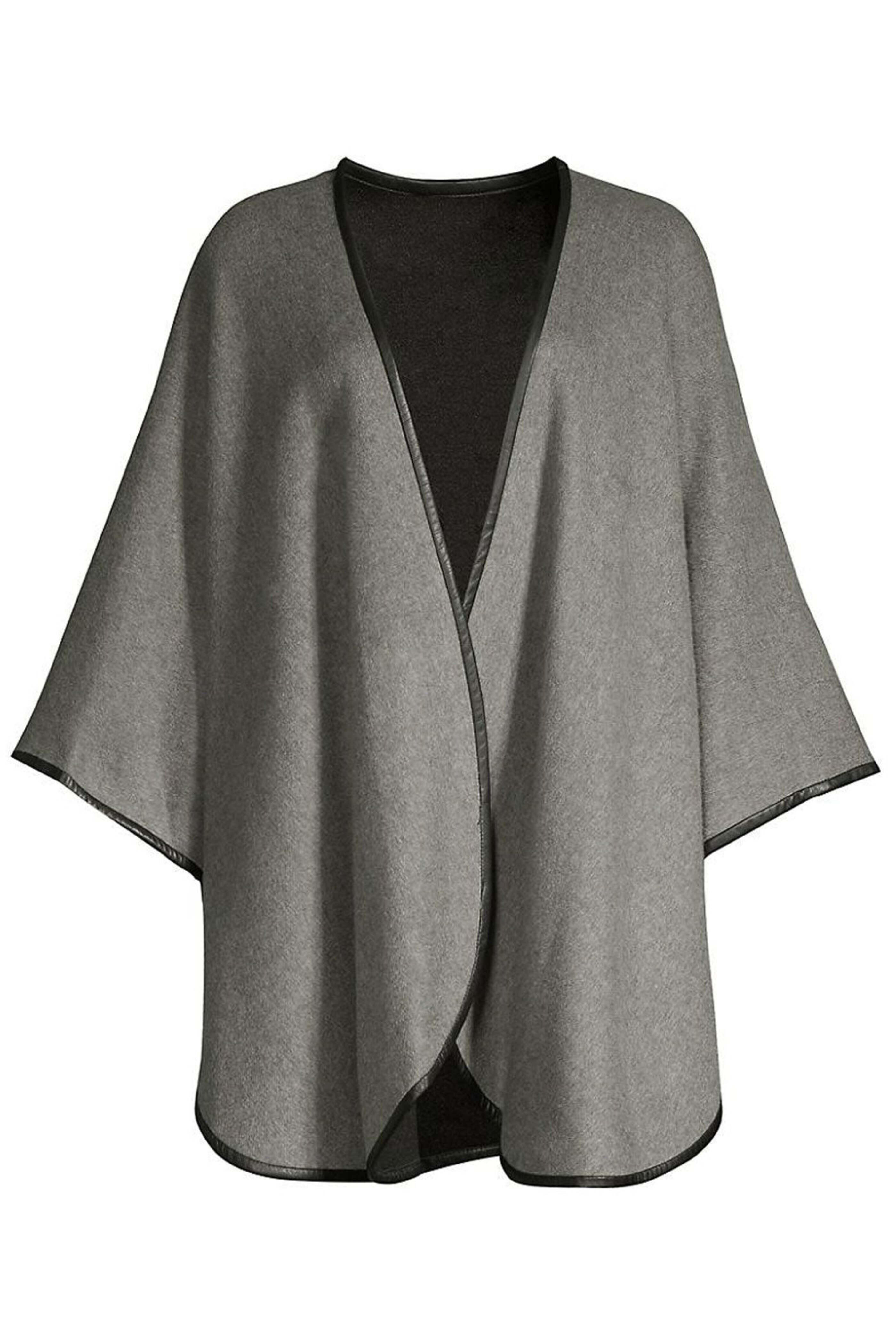 - Sofia Cashmere Black and Gray Leather Trimmed Reversible U-Cape