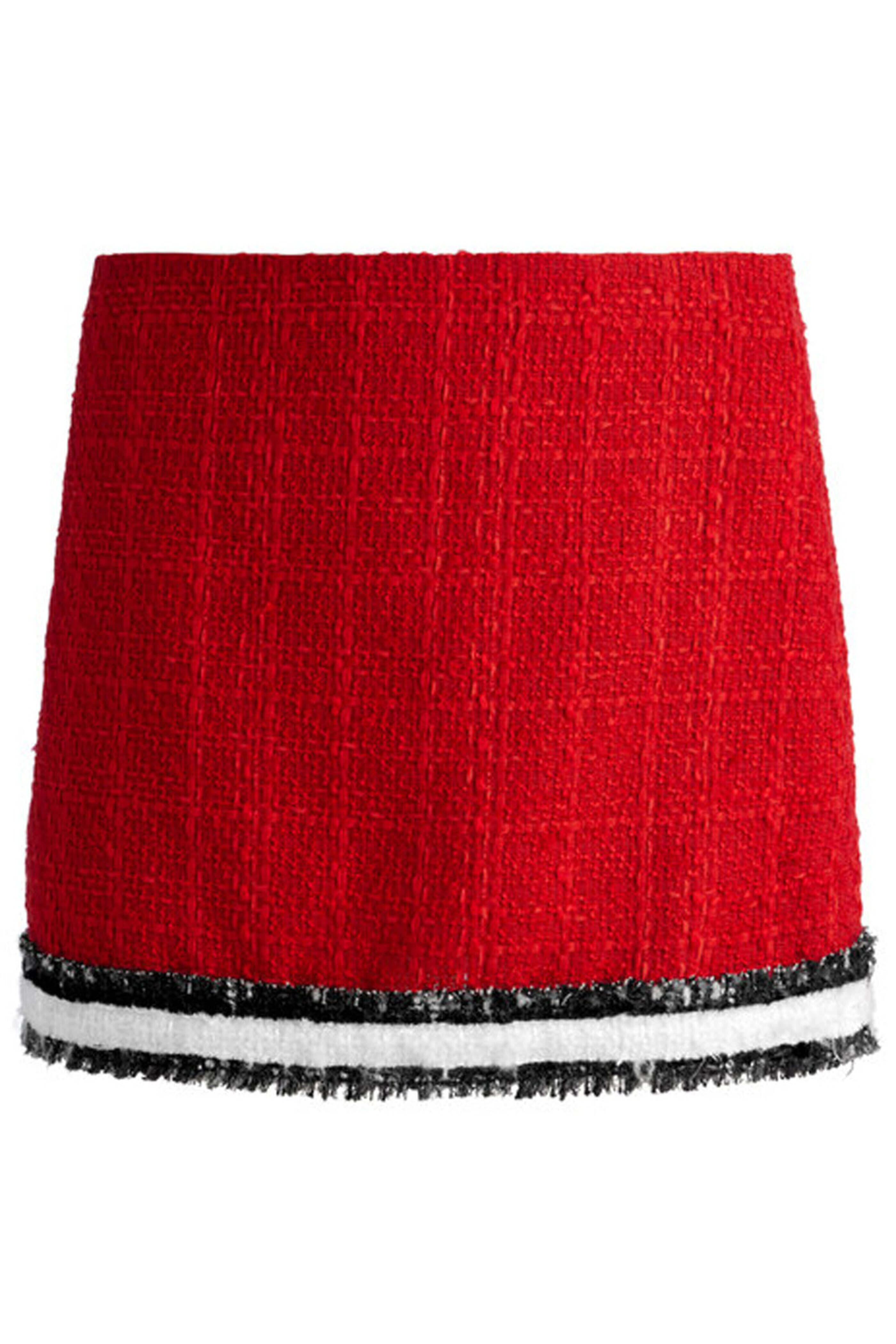 - Alice + Olivia Perfect Ruby Red Rubi Tweed Micro Skirt
