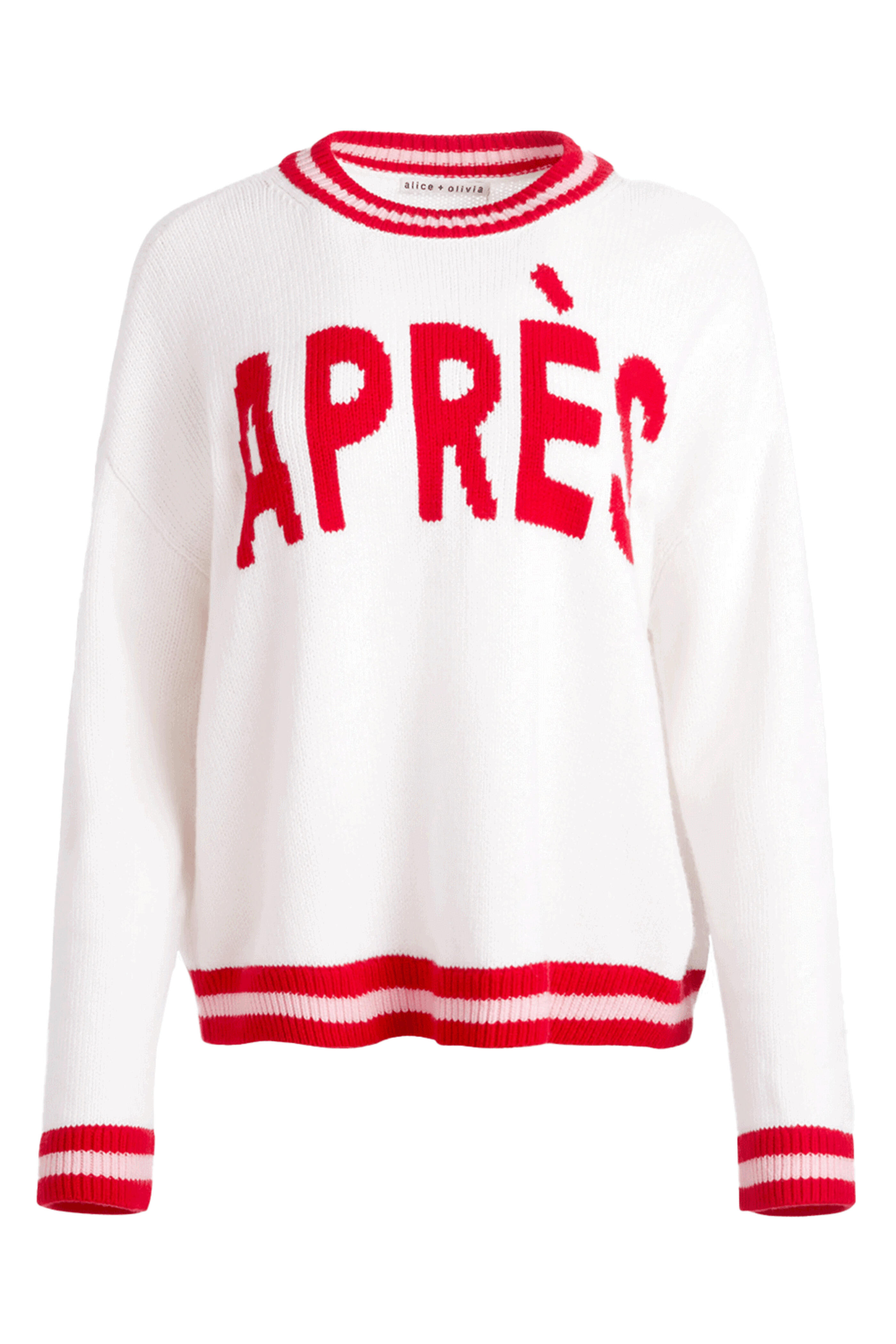 Alice + Olivia Ecru Multi Ogden Apres Pullover . Crew neckline . Long sleeves . Hip length . Ribbed cuffs and hem . Pullover style . Wool/elastane . Unlined . Imported . Dry clean .