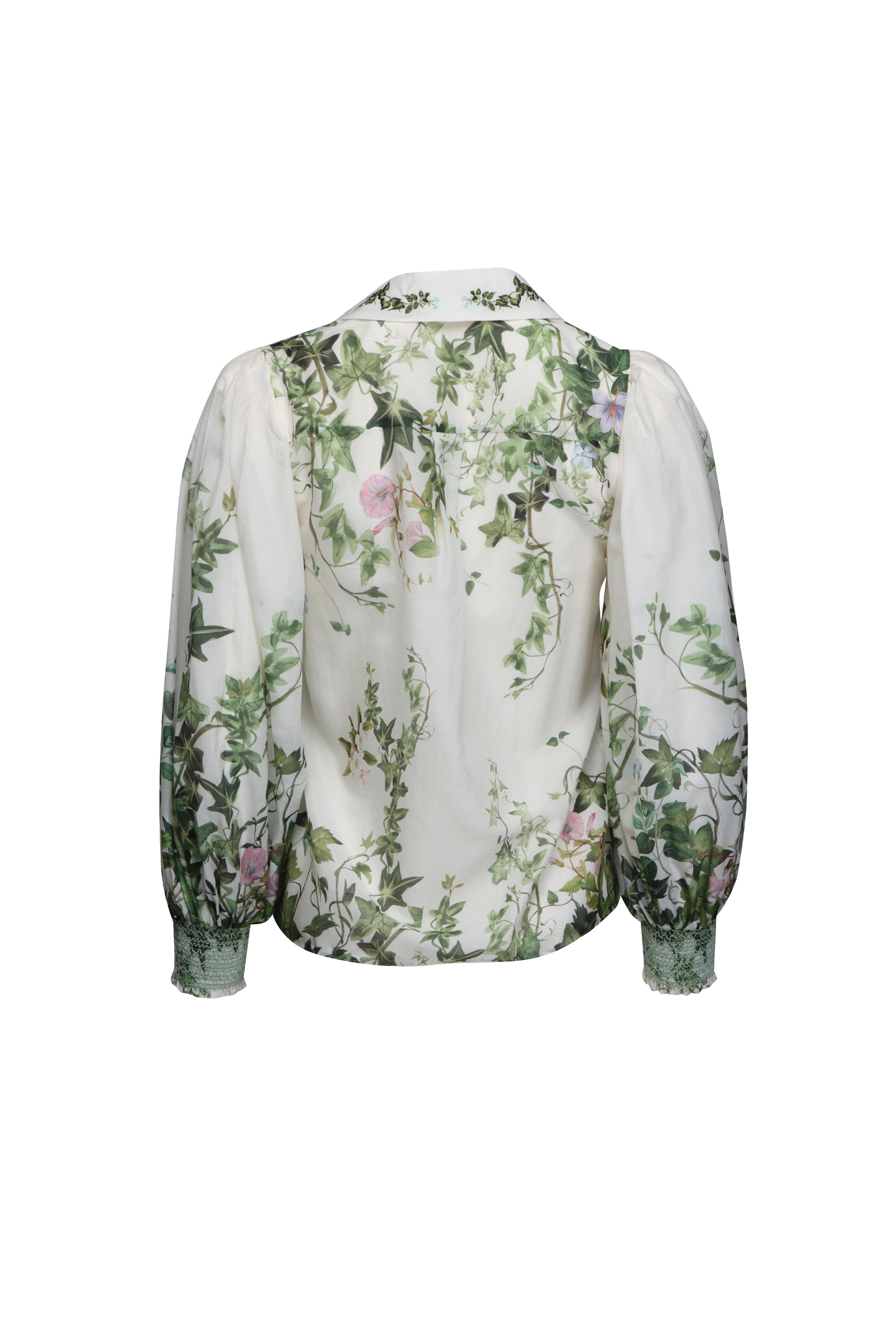 - ¾ length puff sleeves; smocked cuffs
