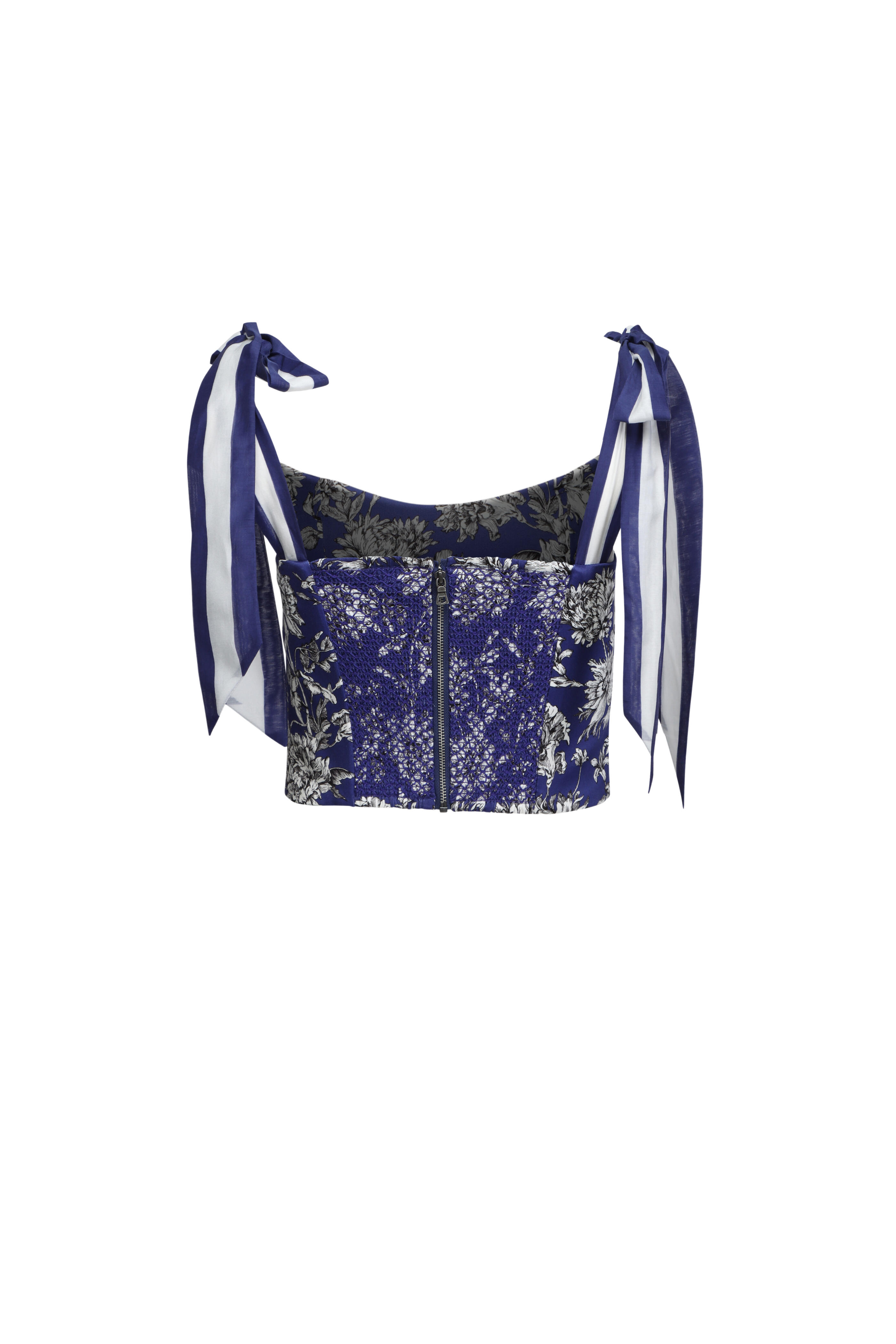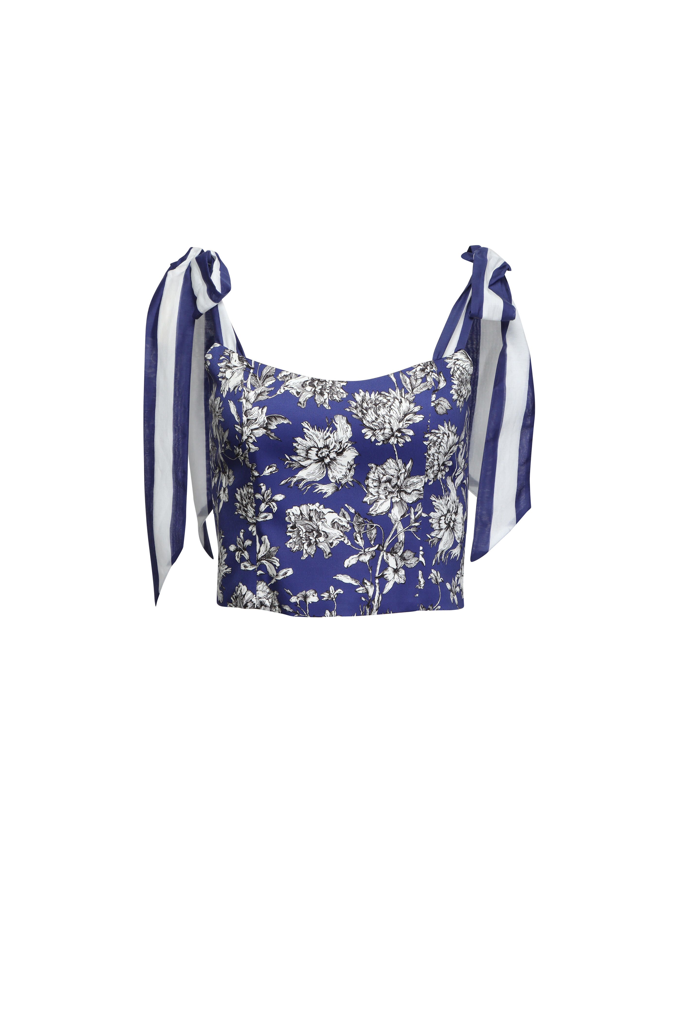 Blanca Blooming Wide Indigo Tie Shoulder Top