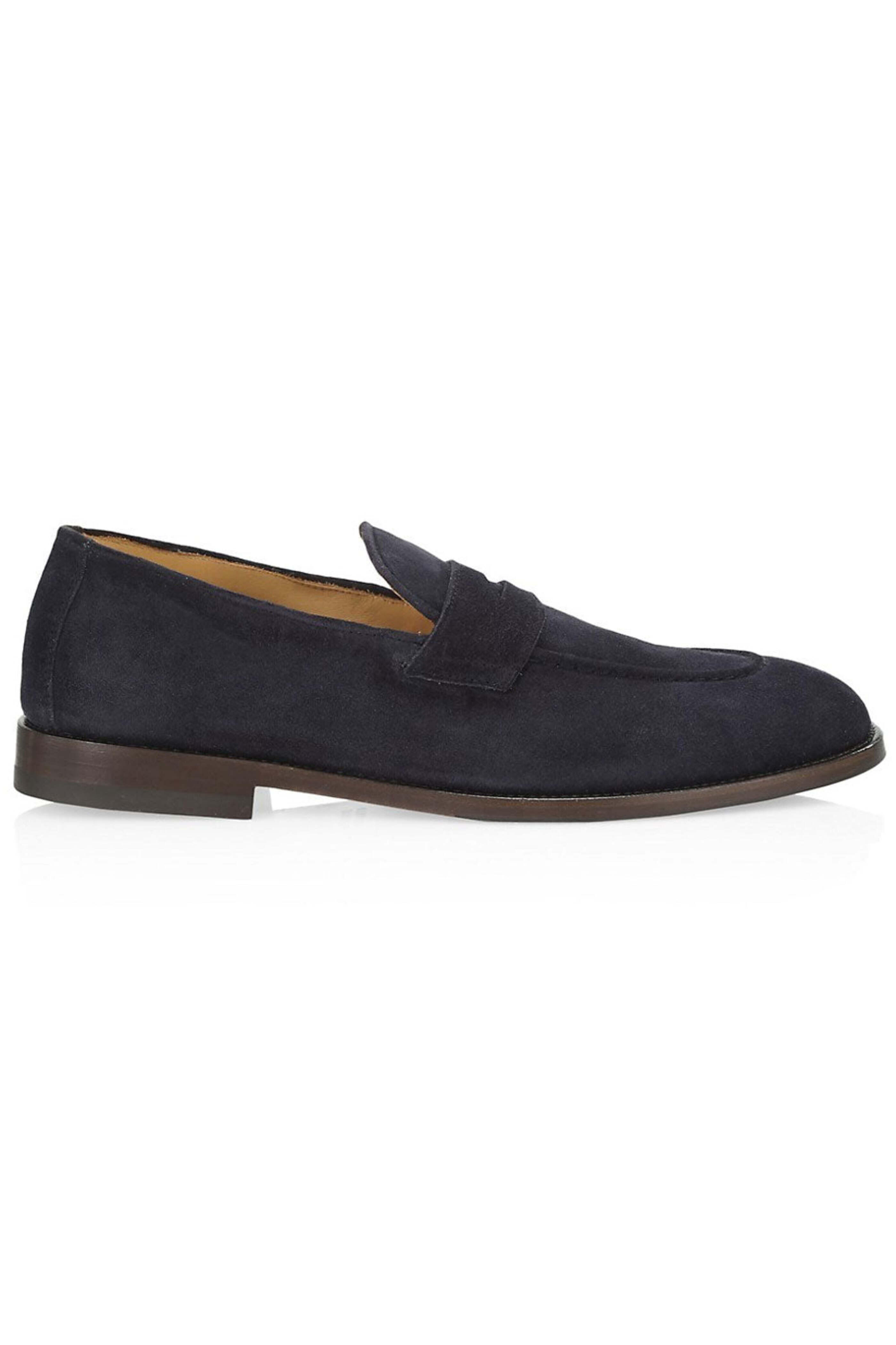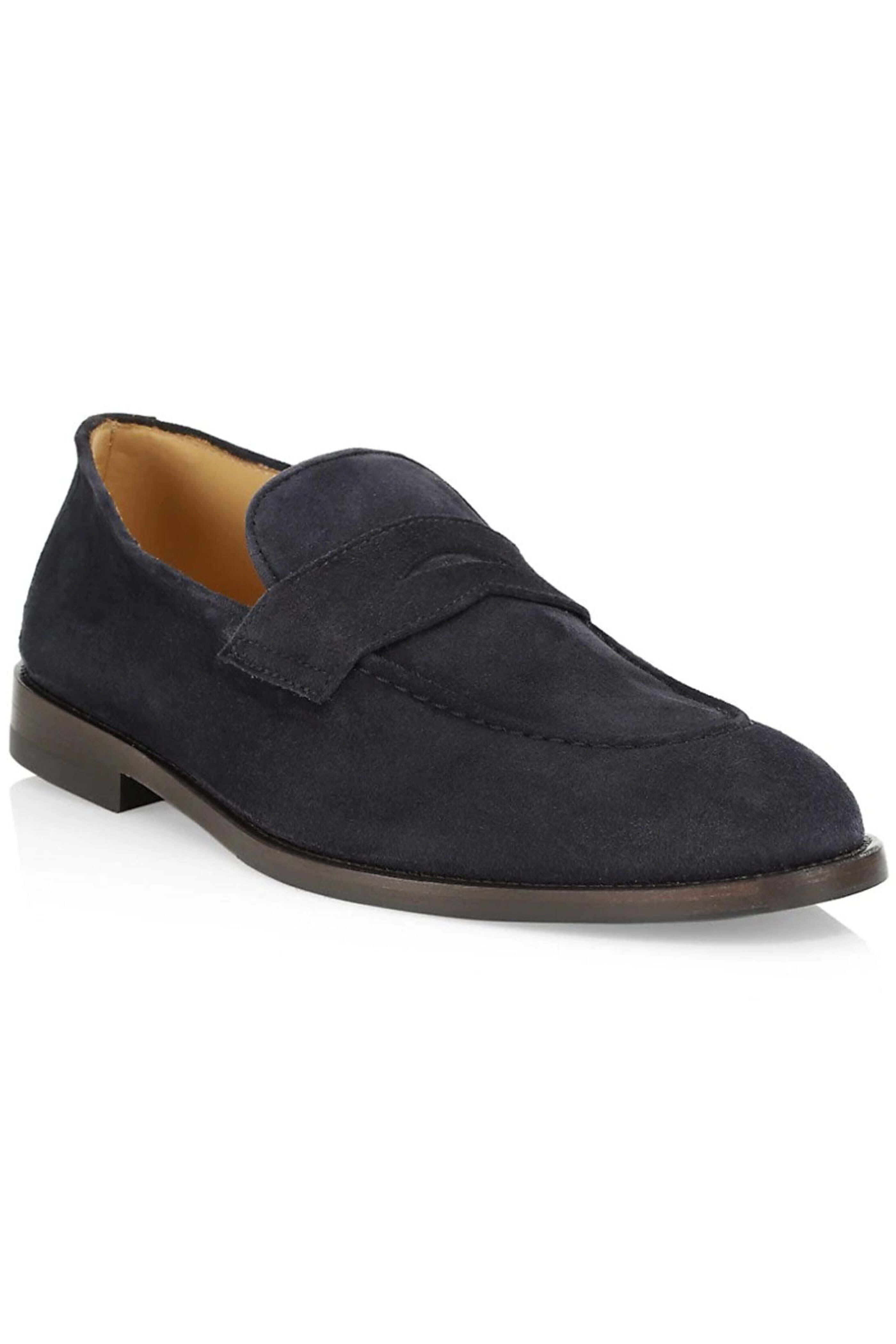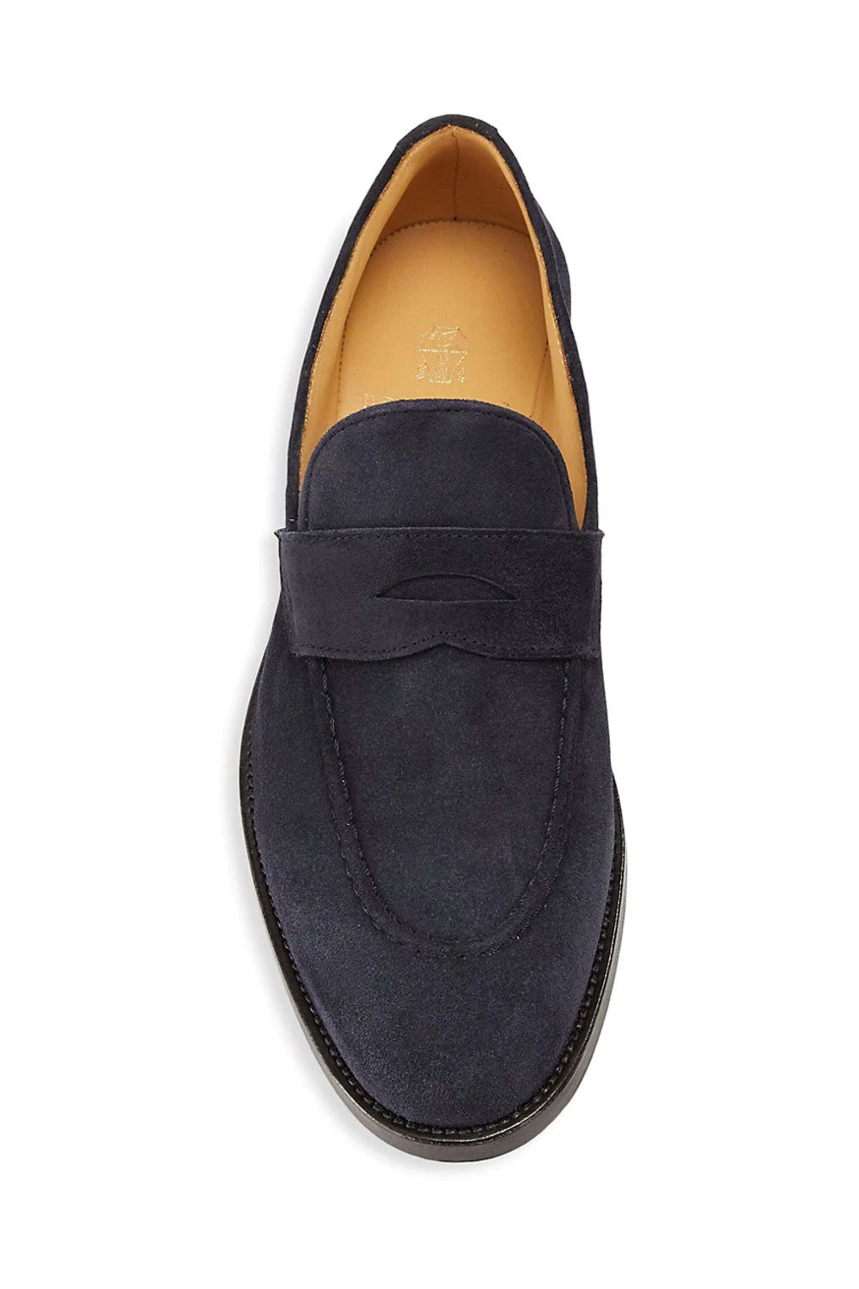 - Brunello Cucinelli Suede Penny Loafer in Navy