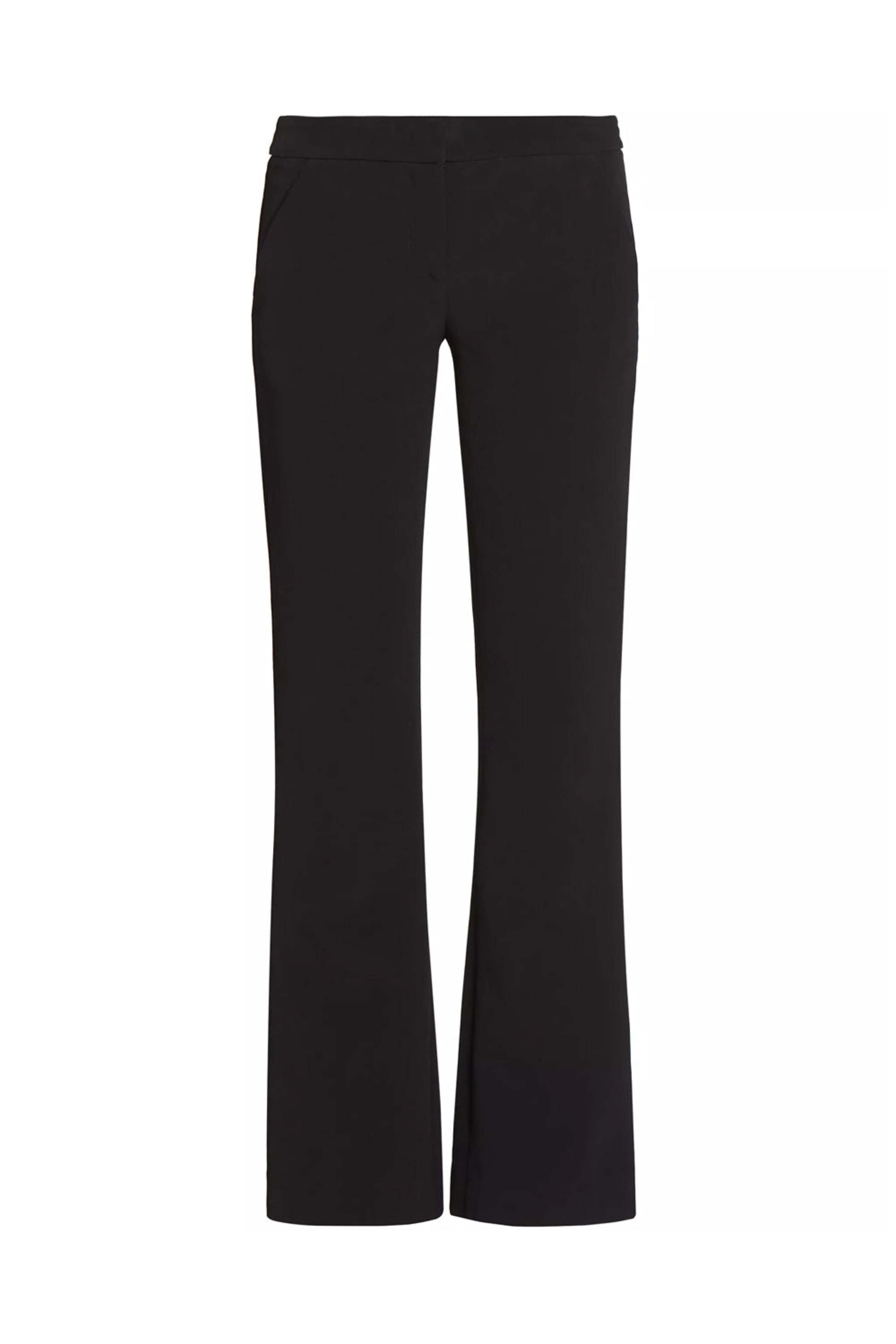 Balmain Noir Flare Pant. Mid rise. Hook and eye closure. Zip fly. Front slip pockets. Back welt pockets. Straight silhouette. Flare hem. Full length. 100% viscose.