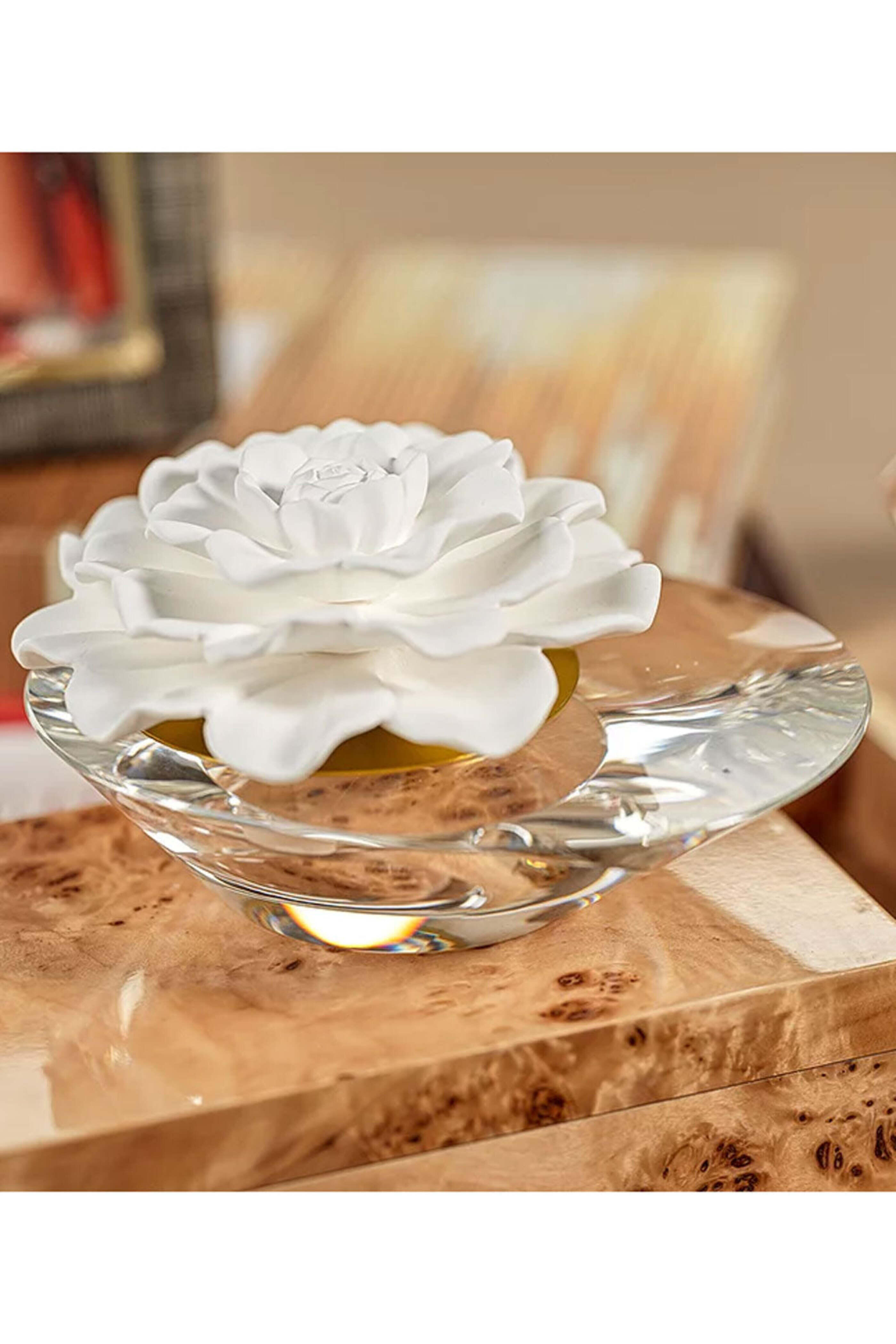 - Porcelain flower draws oils and diffuses fragrance around the room