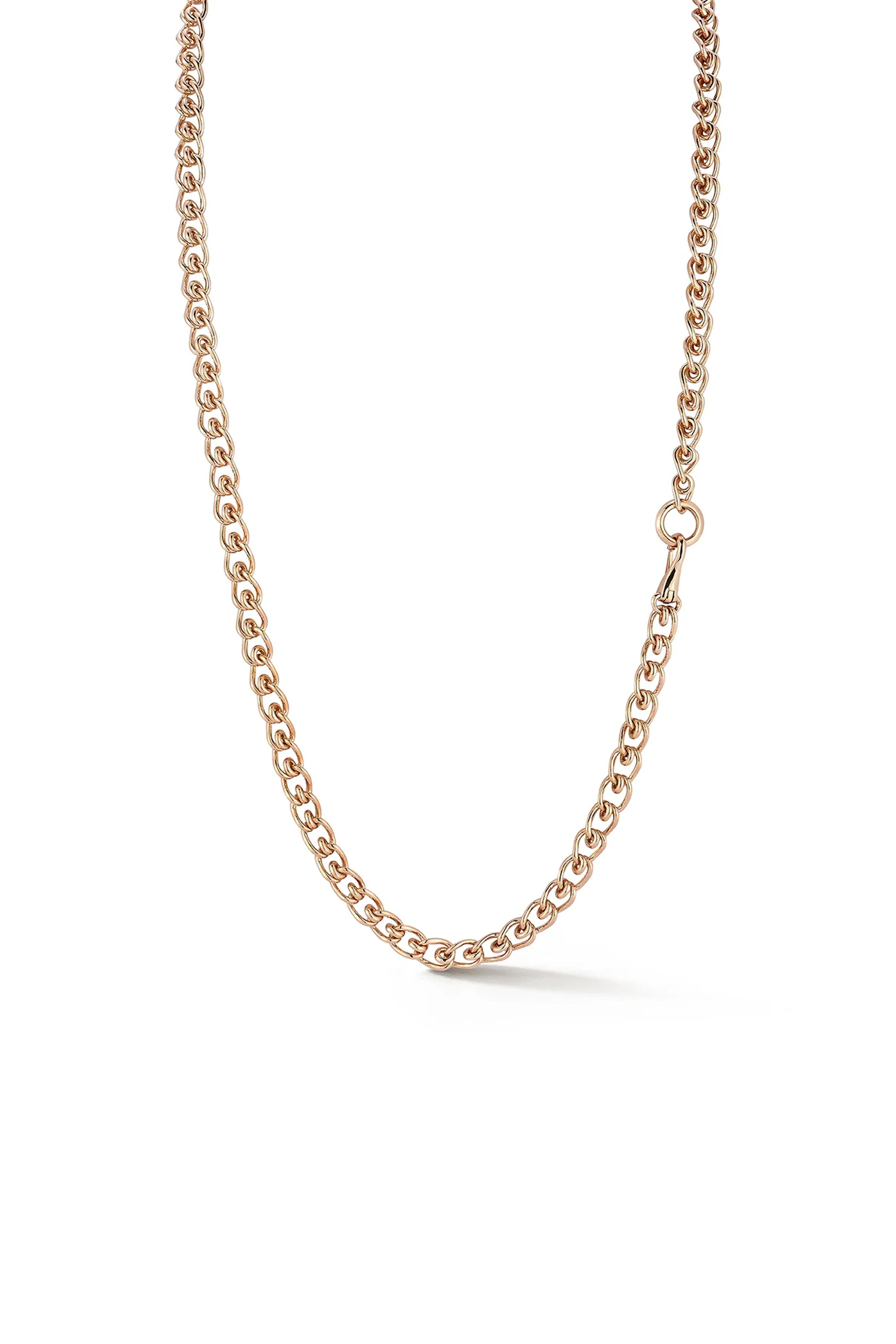 18k rose gold. Coil chain design. Link. Clasps closure. Made in New York. Length: 20”.
