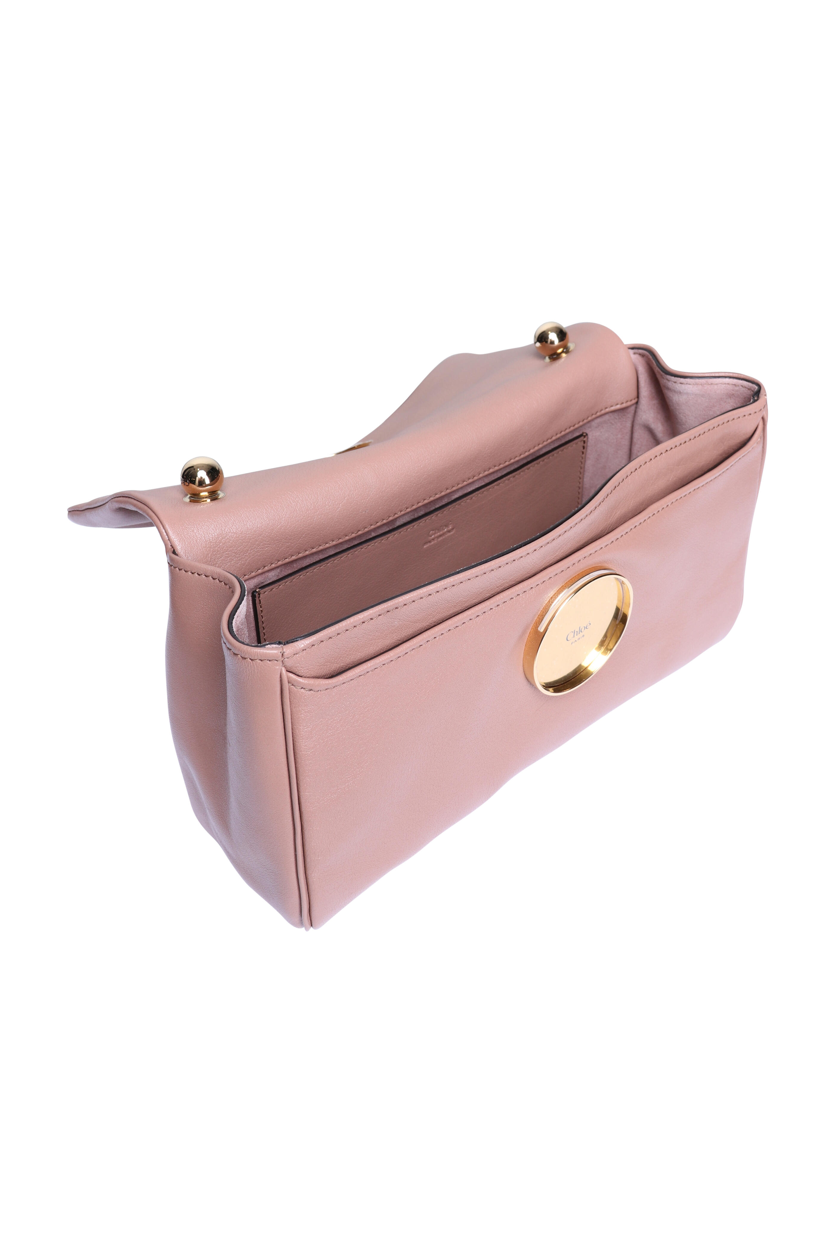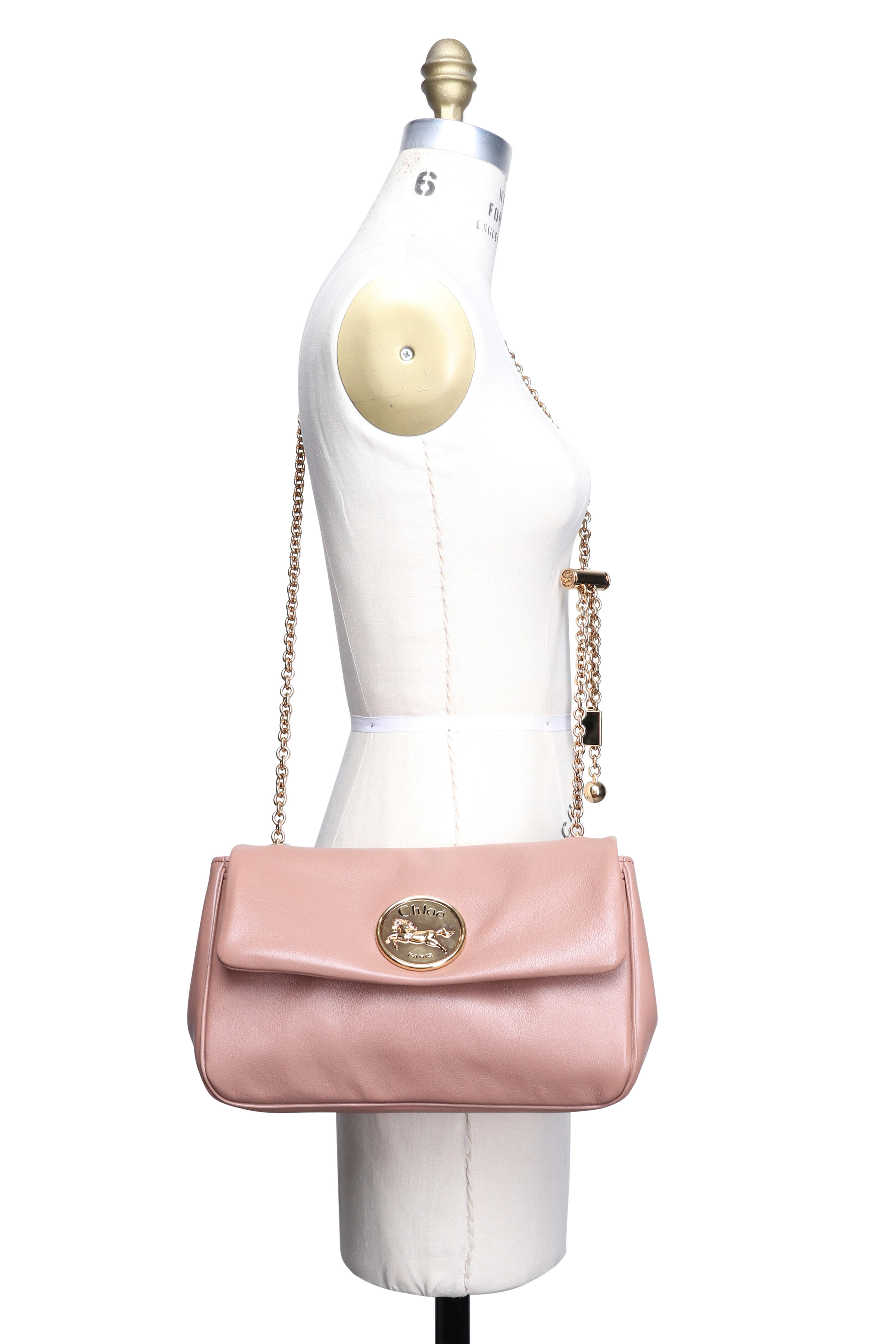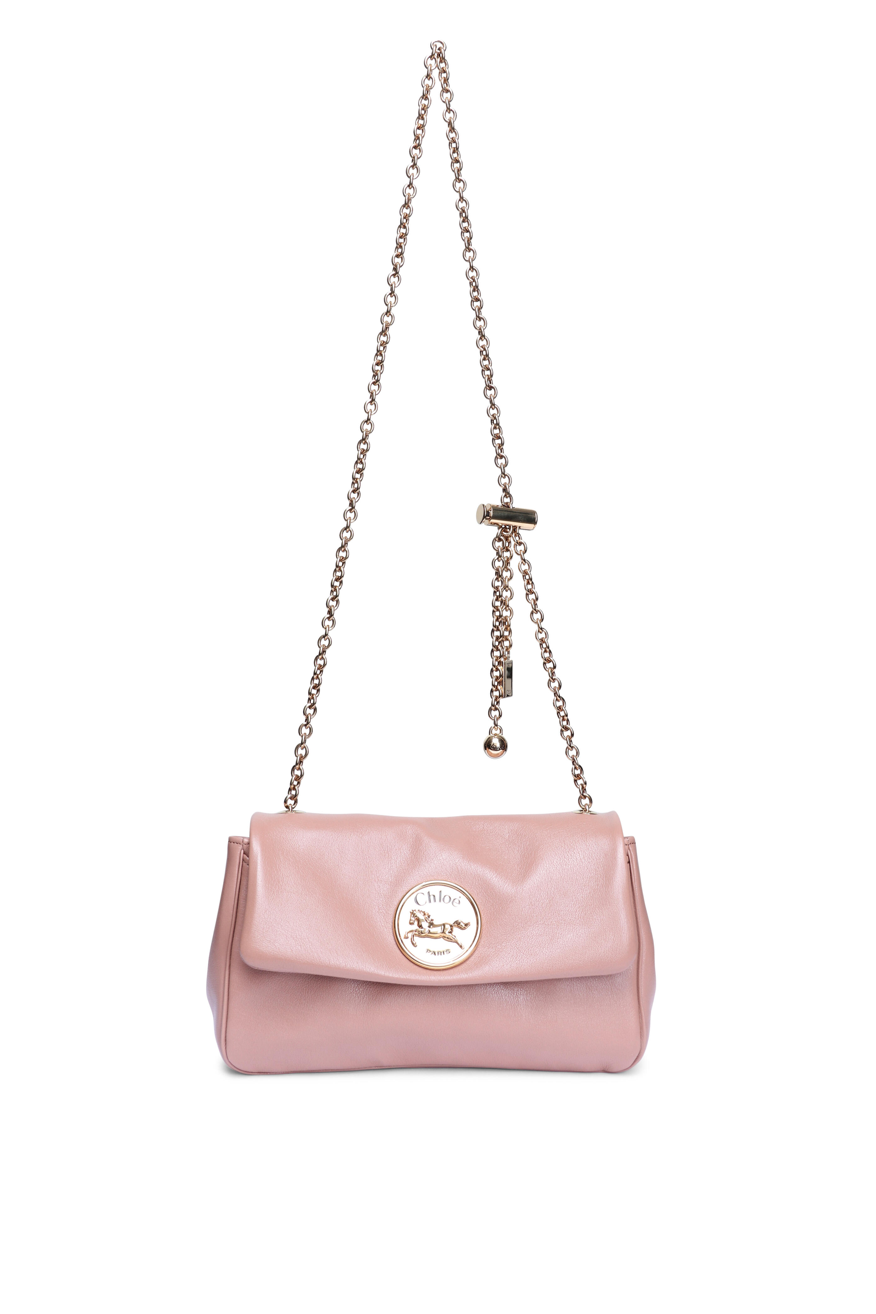 Buffalo leather outer. Calfskin suede lining. Fold over flap. Magnetic clasps closure with notch. Adjustable crossbody chain with chain stopper. Featuring signature Horse Medal closure with dangling chains. Exterior slip pocket. Interior flat wall pocket. Made in Italy. Height: 6.1”. Width: 10.2”. Depth: 2”. Strap drop: 20.5”.