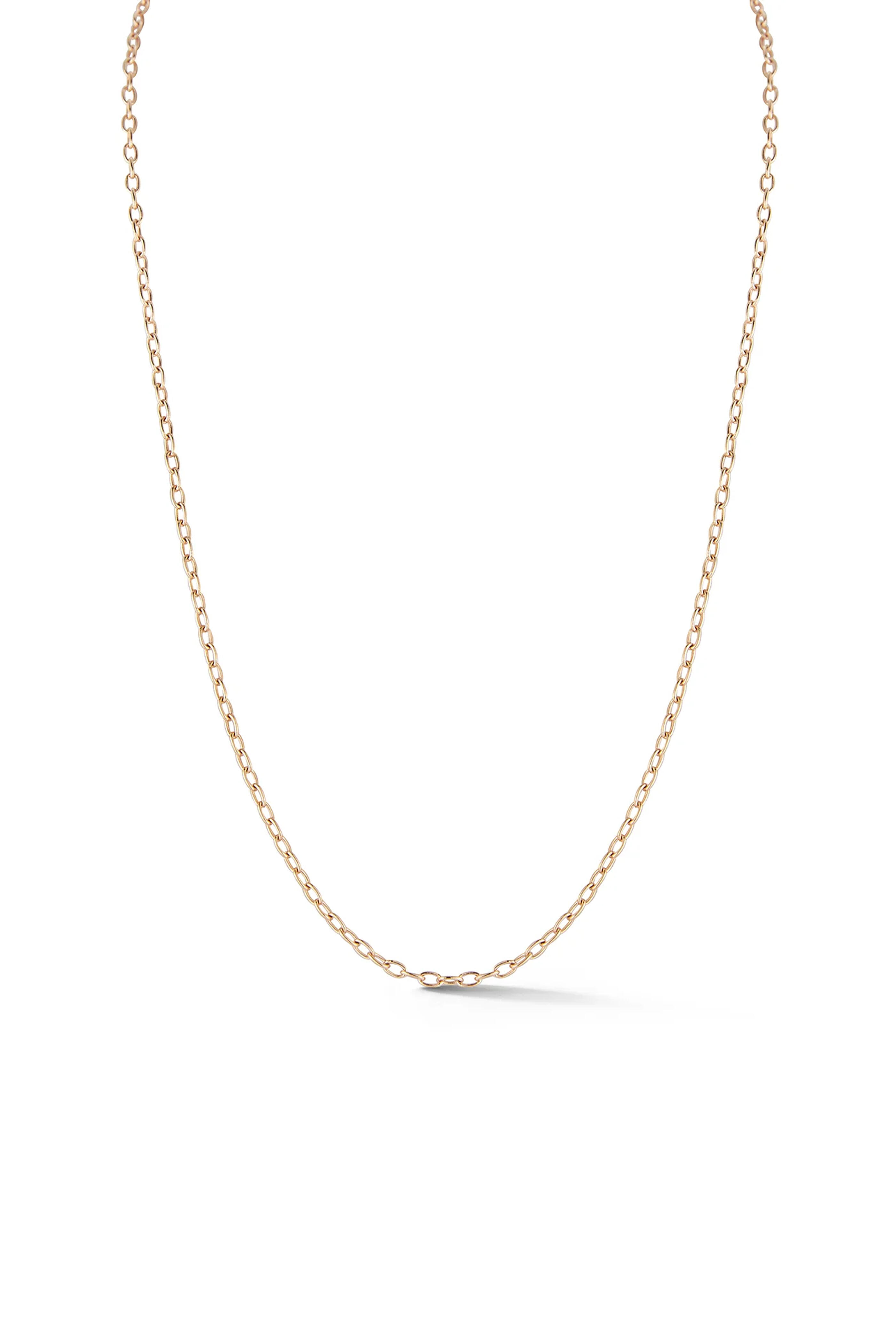 18k rose gold. Cable chain. Link. 21.mm. Lobster claw clasps. Made in New York.