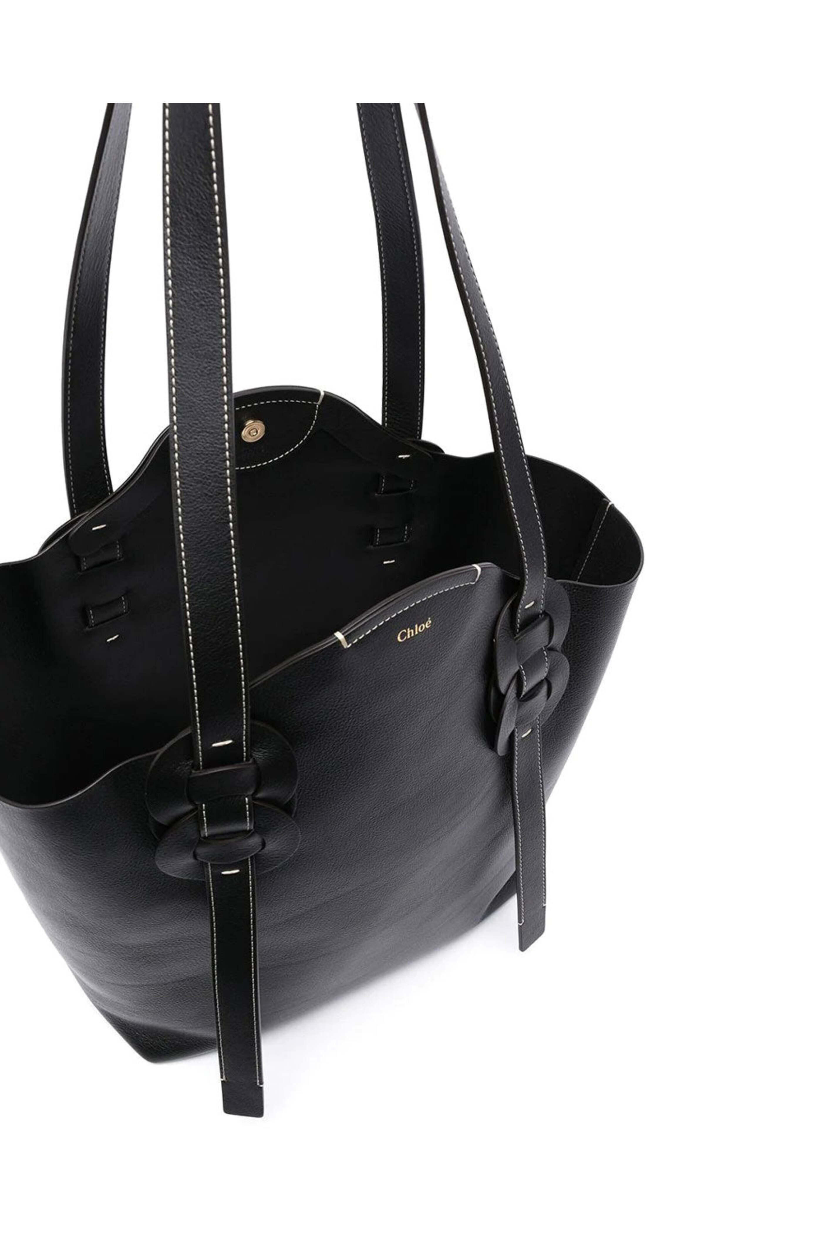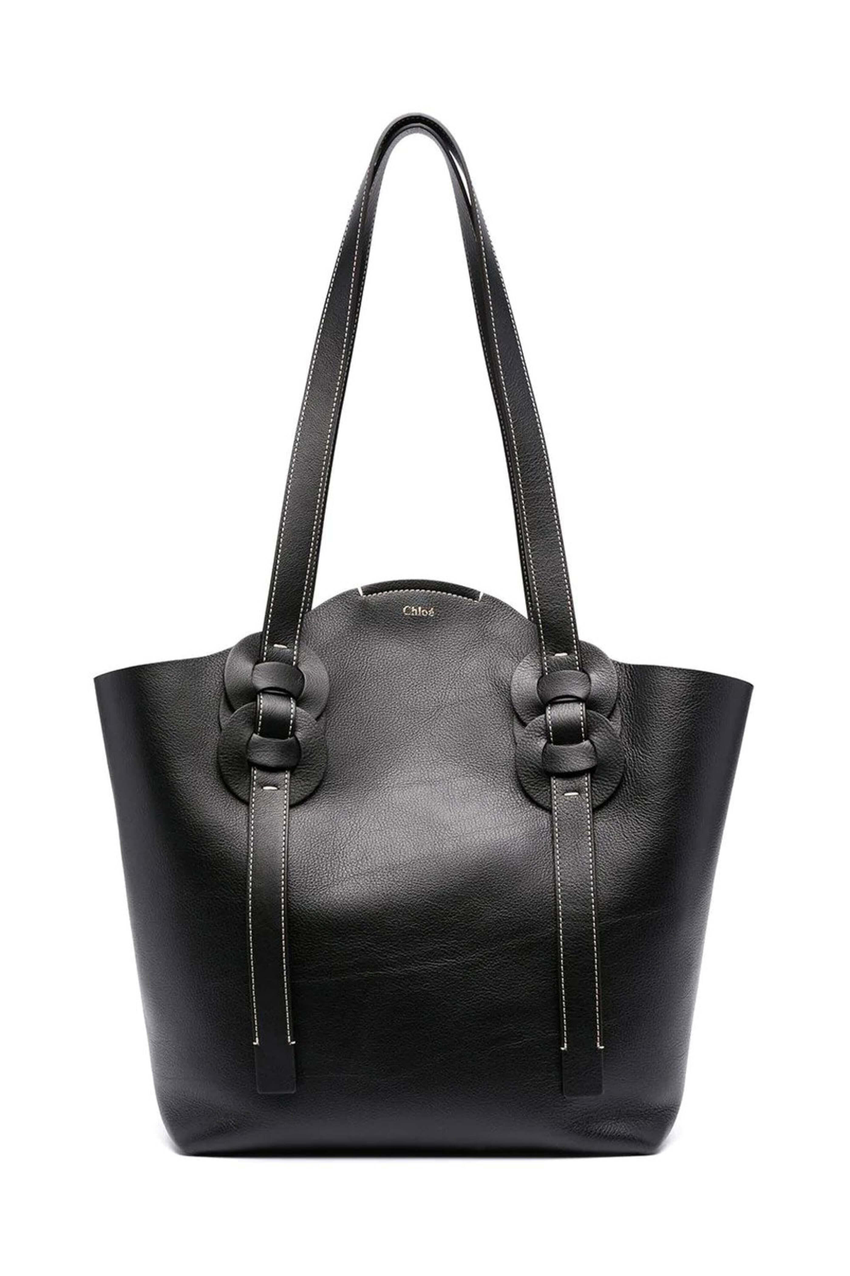 - Chloe Black Medium Darryl Tote Bag Calfskin tote bag Open top with central magnetic snap button closure Flat handles Strap drop: 11.8 21.1 W X 15.2 H X 7.5 D Made in Italy