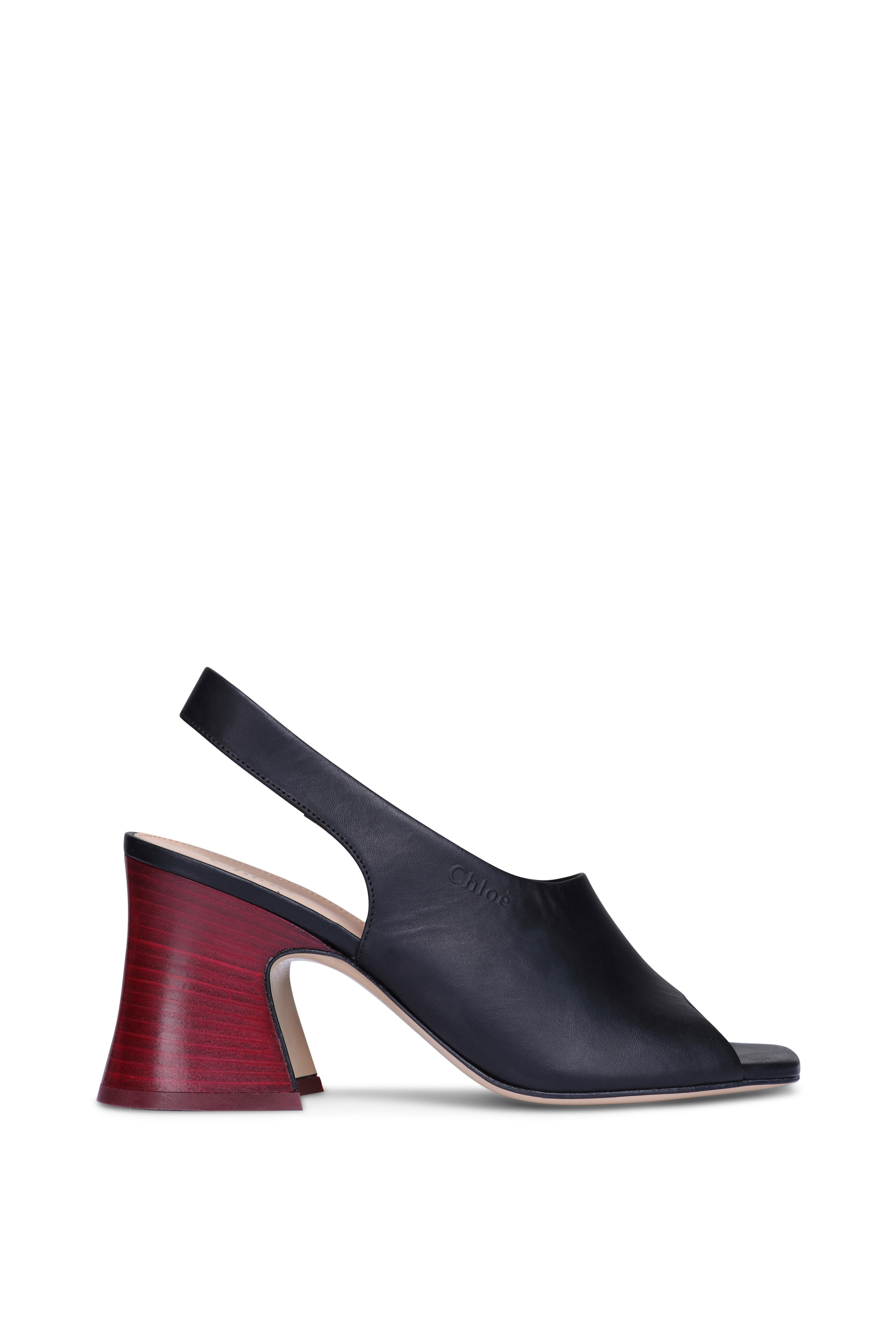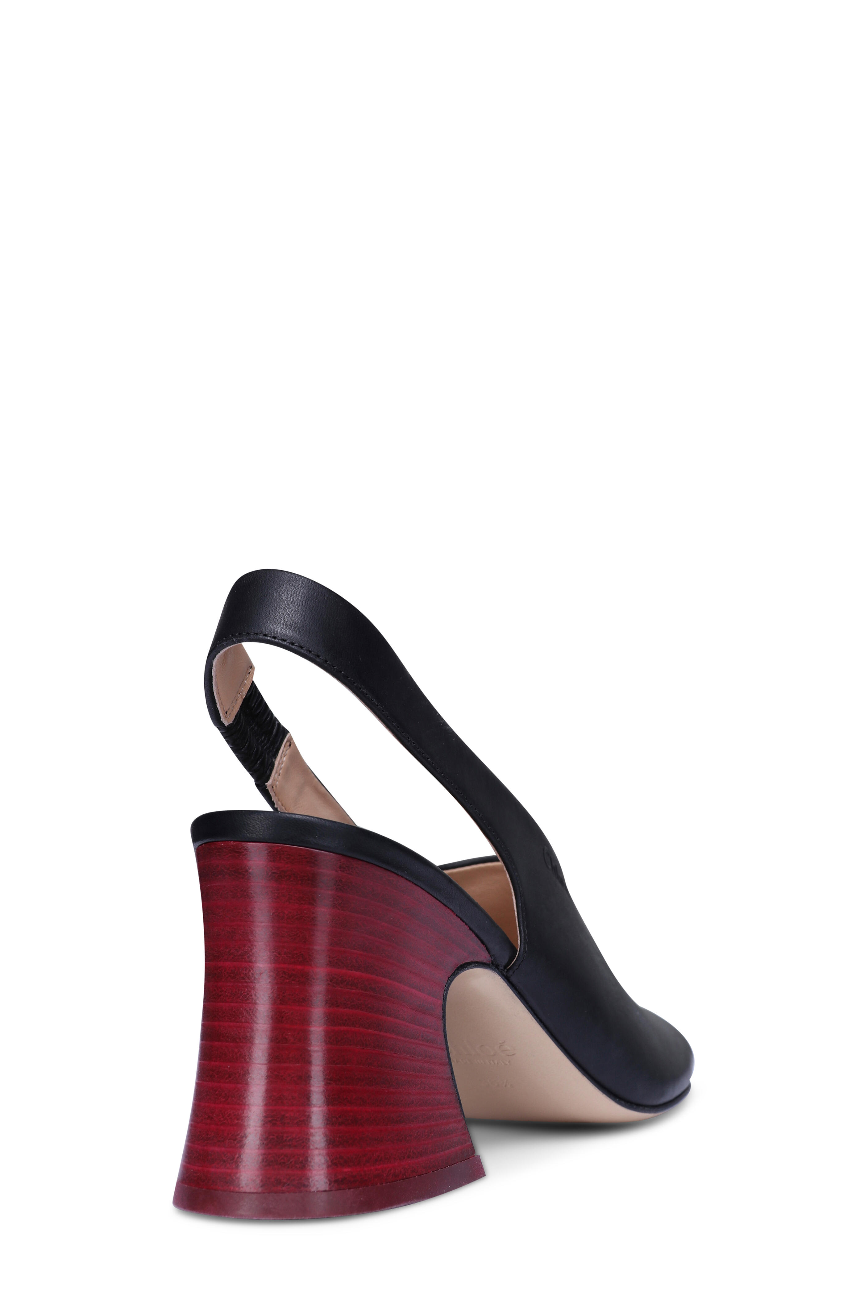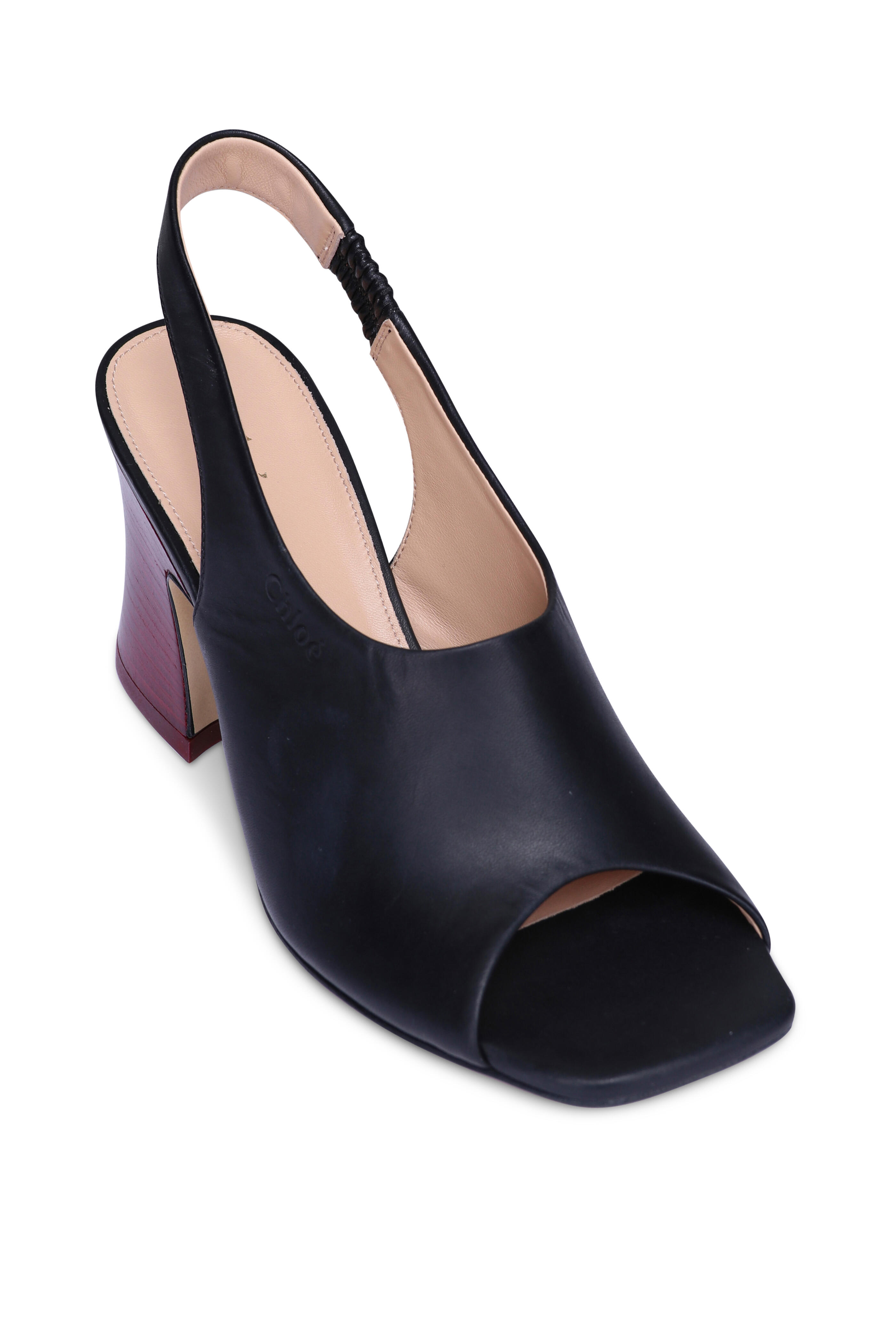 Janis Black Leather Slingback Block Sandal