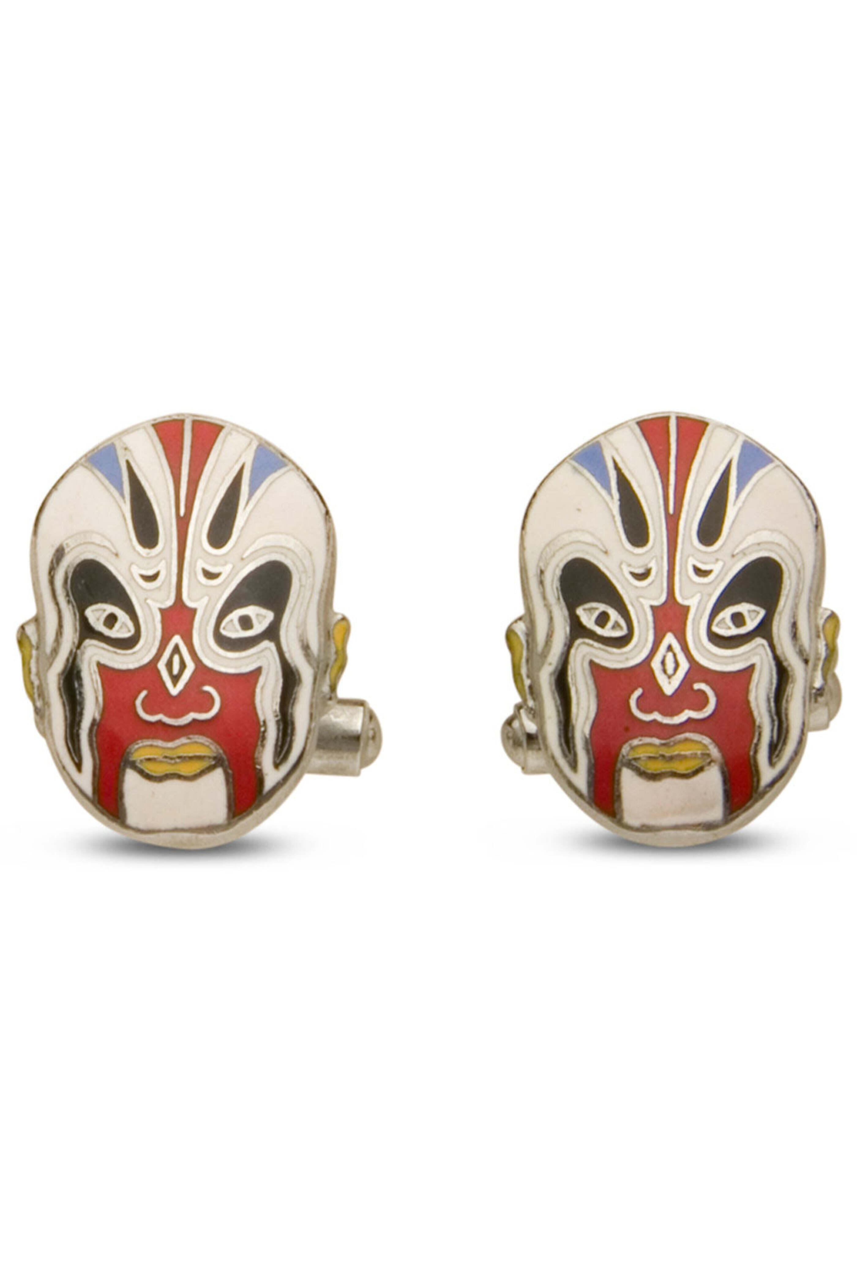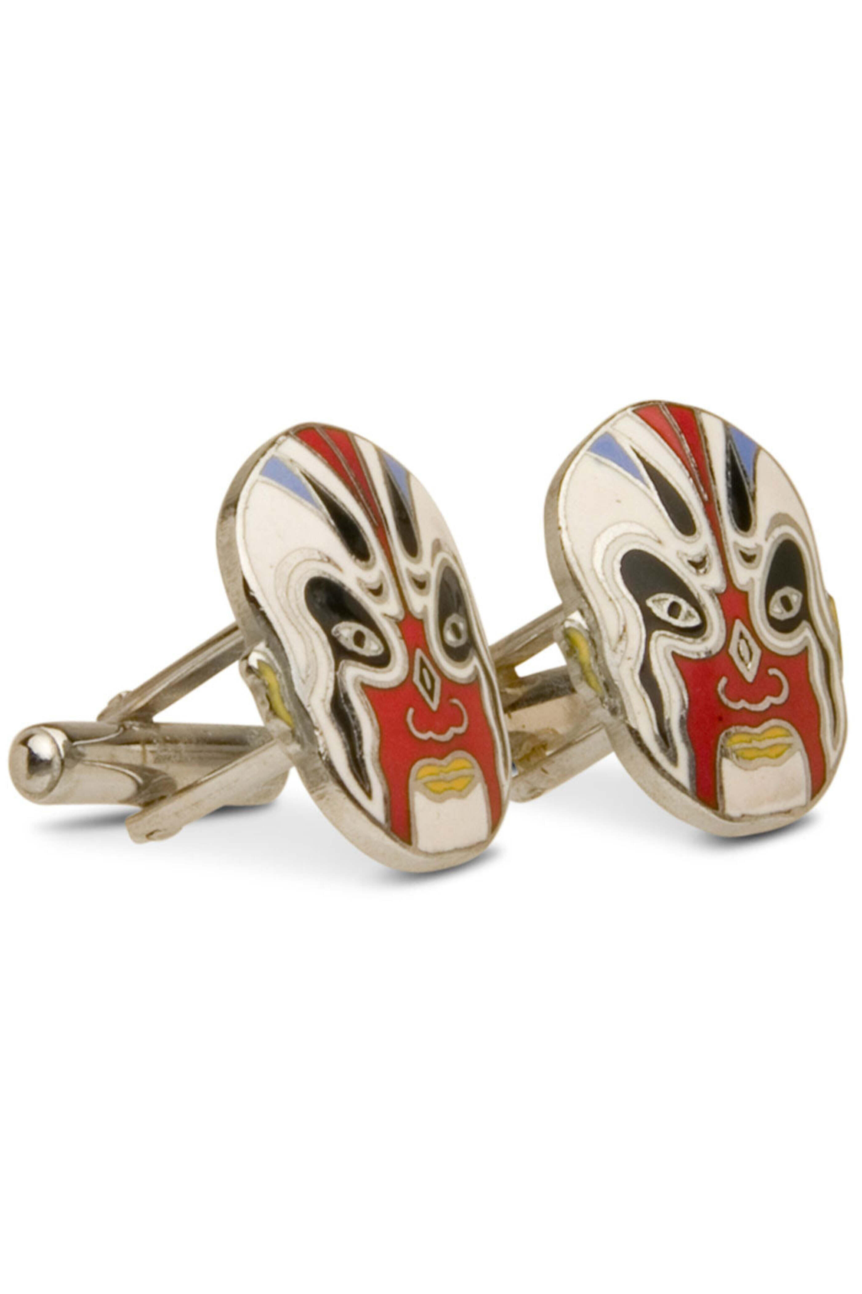 - Spivey Enamel on Metal White Kebuki Mask Cufflinks