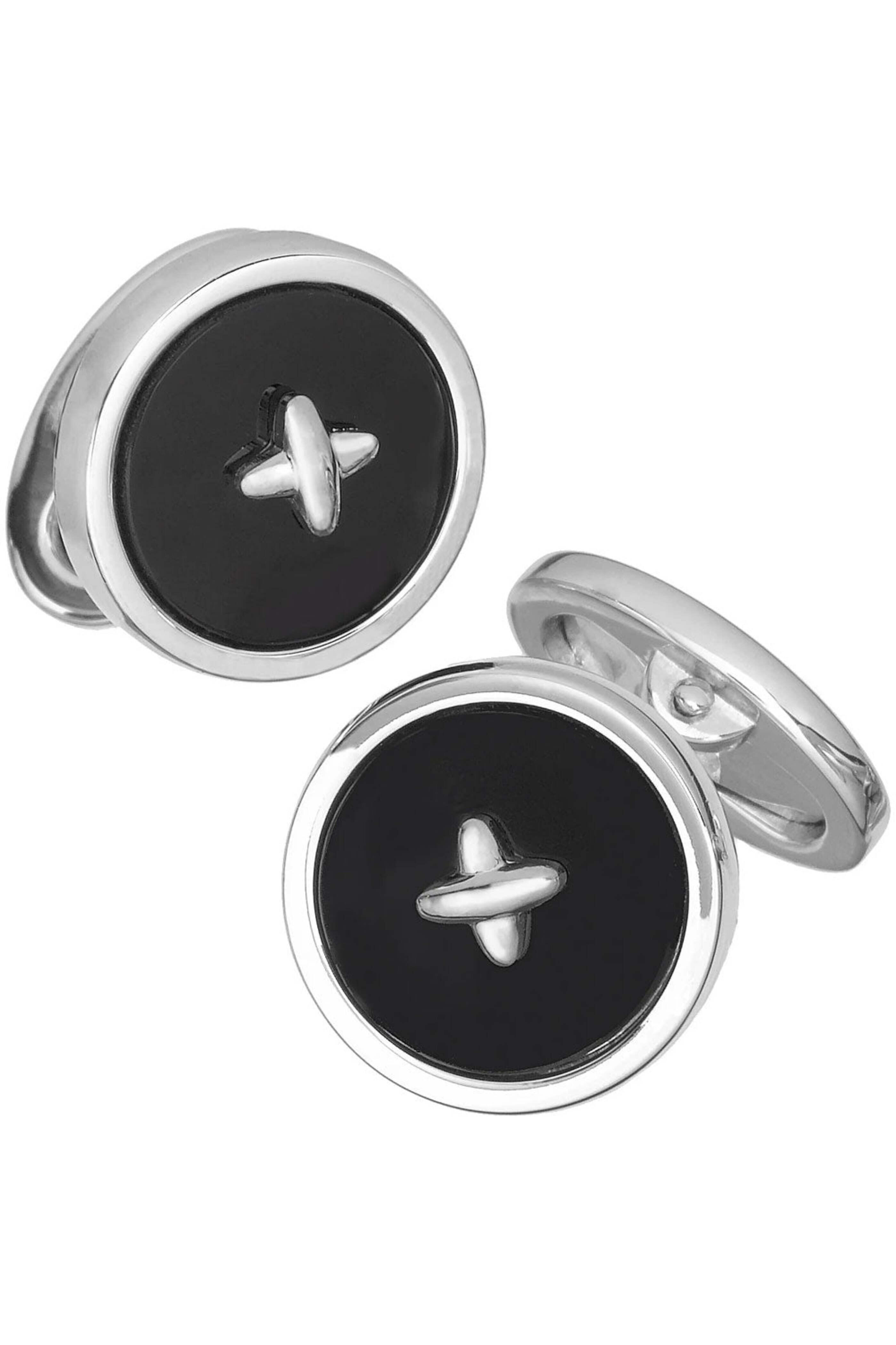 Jan Leslie Gemstone Button Cufflinks. 925 sterling silver. Black onyx. Stylish cuff links with a touch of high-fashion ivy league. Button lacing in the center. Features an anti-tarnish rhodium finish that makes for lasting wear.