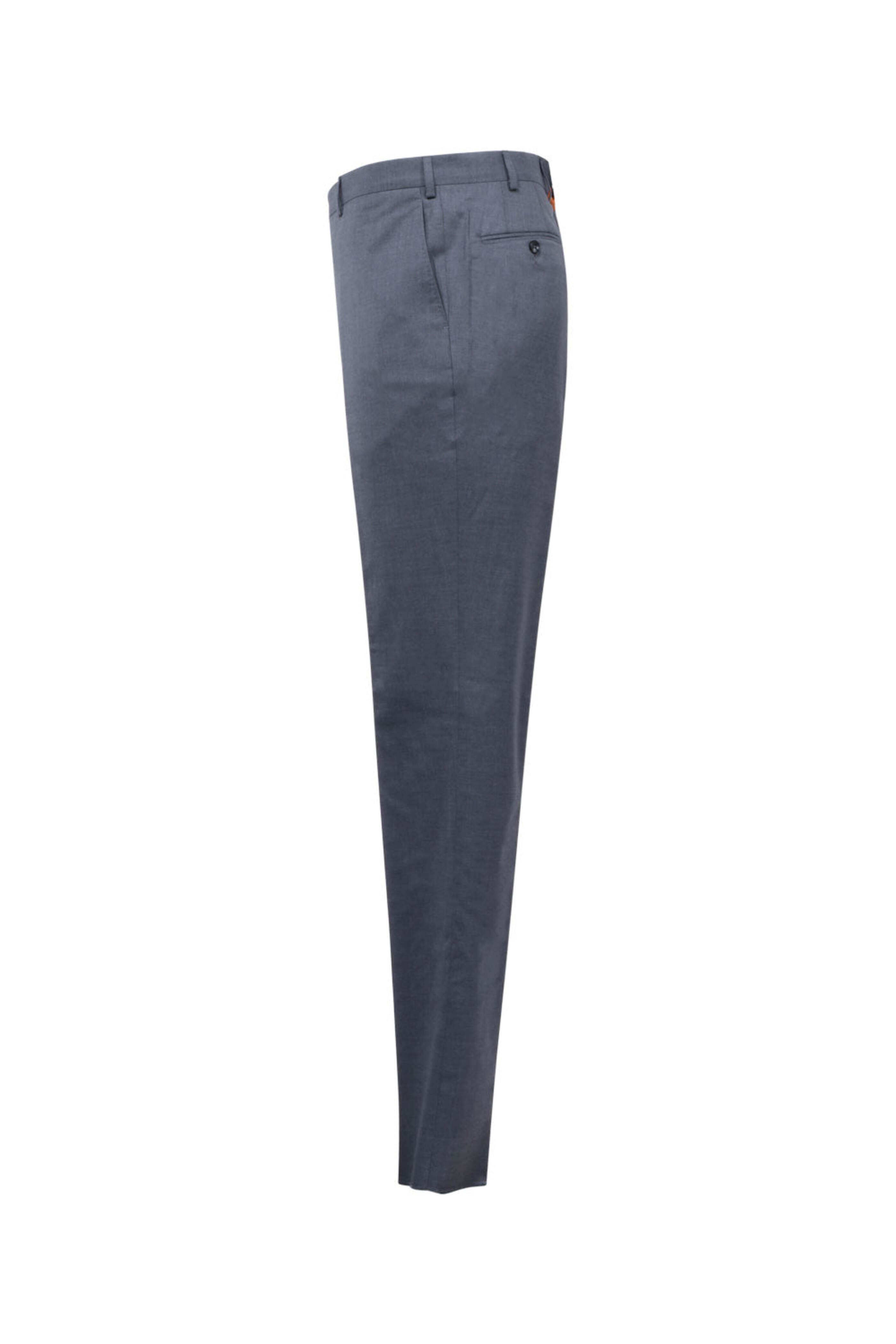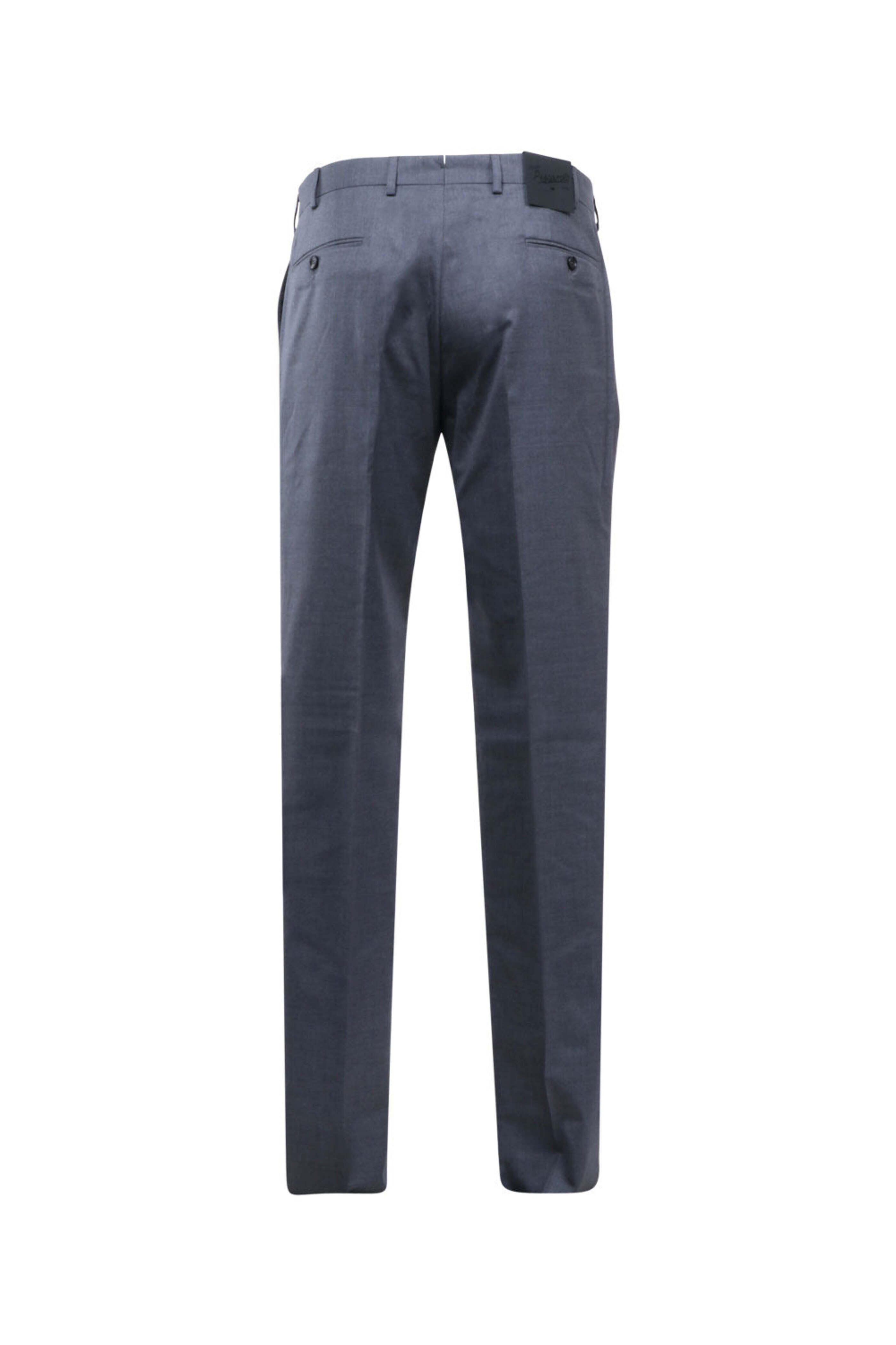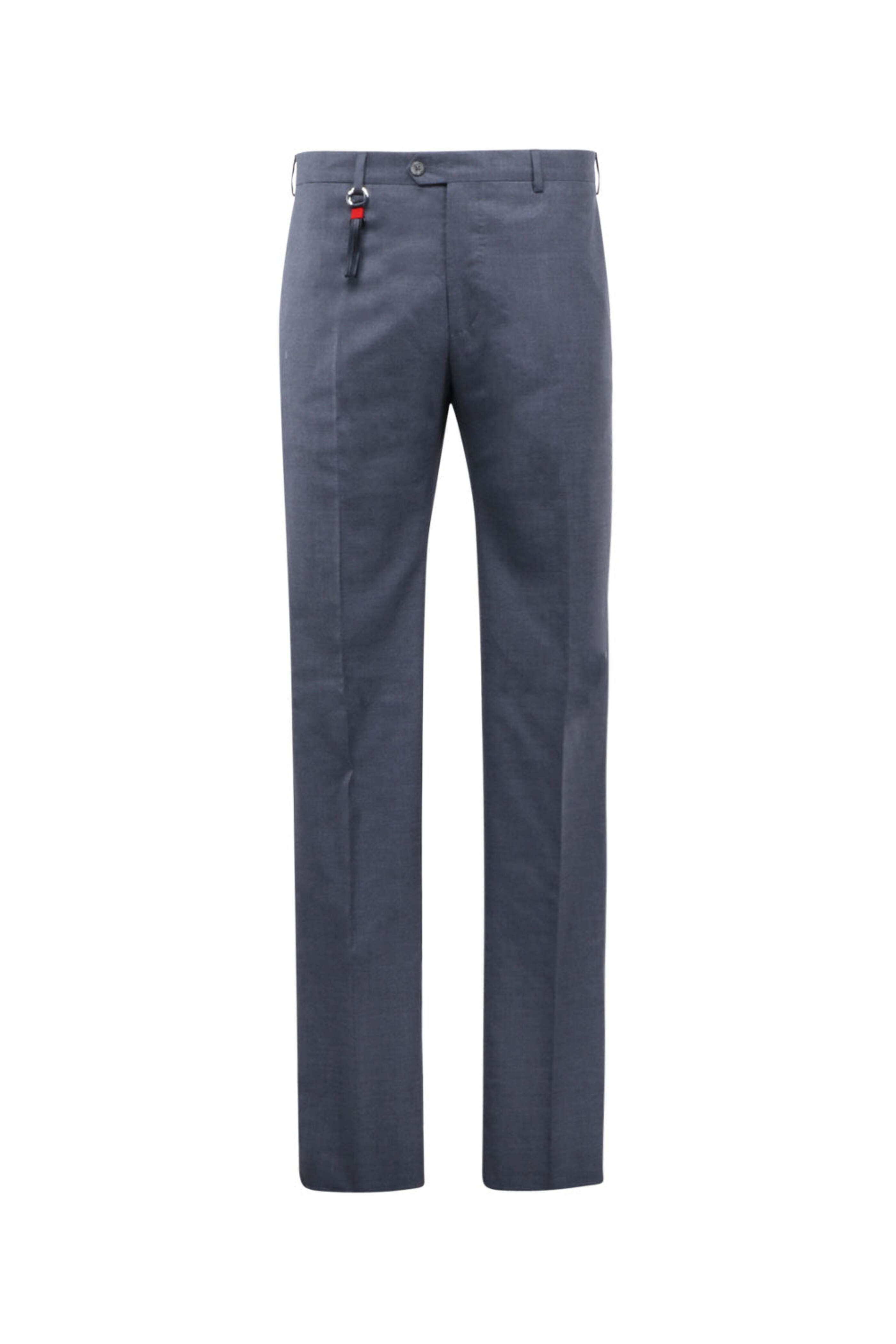 Flat Front . Zip fly . Three button closure . Side pockets . Coin pocket . Back welt pockets . Belt loops . Unfinished hem . Made in Italy . 100% virgin wool, 100% cotton .