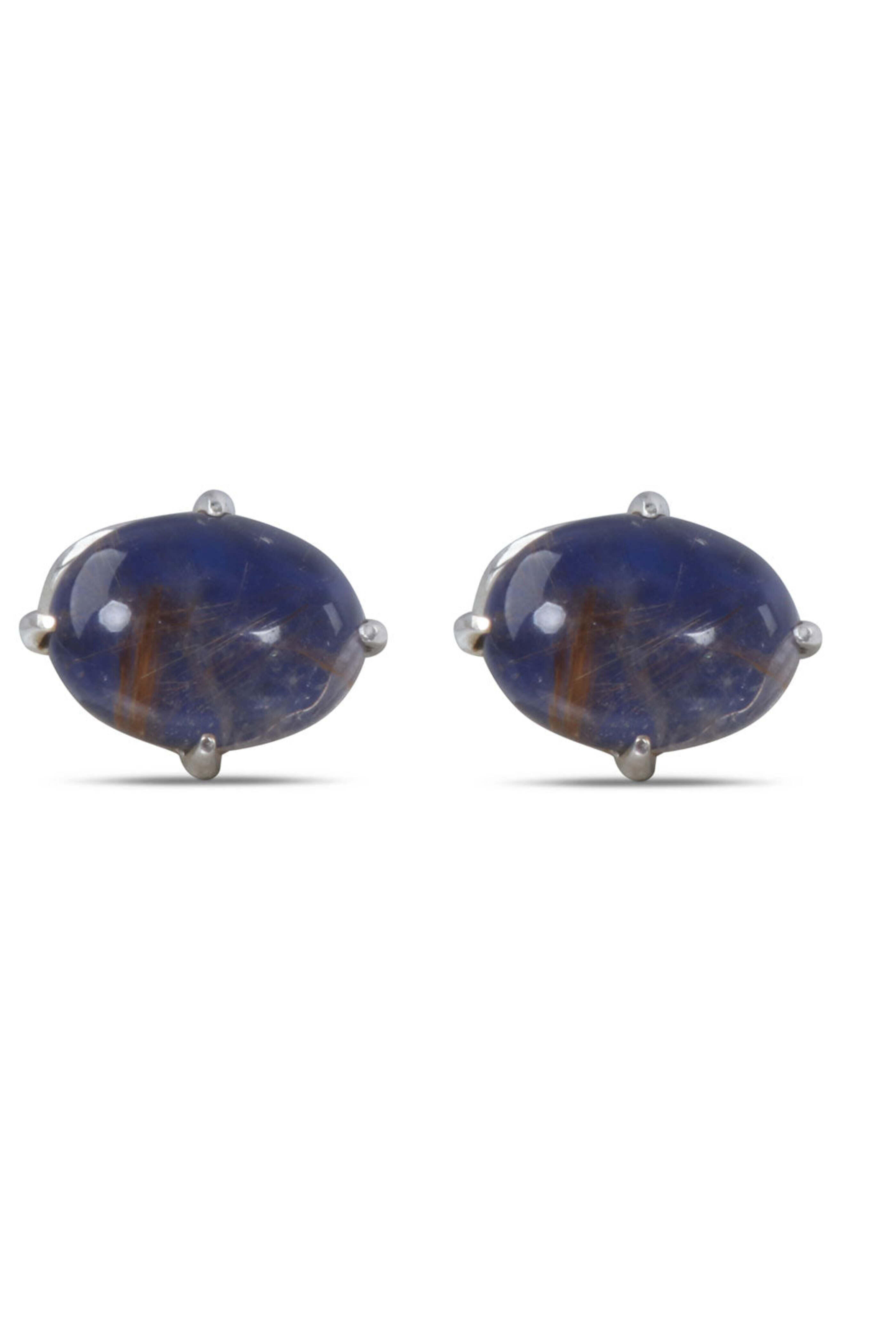 Spivey Lapis Rutilated Quartz Cufflinks. Sterling silver. Lapis. Rutilated quartz. Oval. Prong setting. Wale back closure.