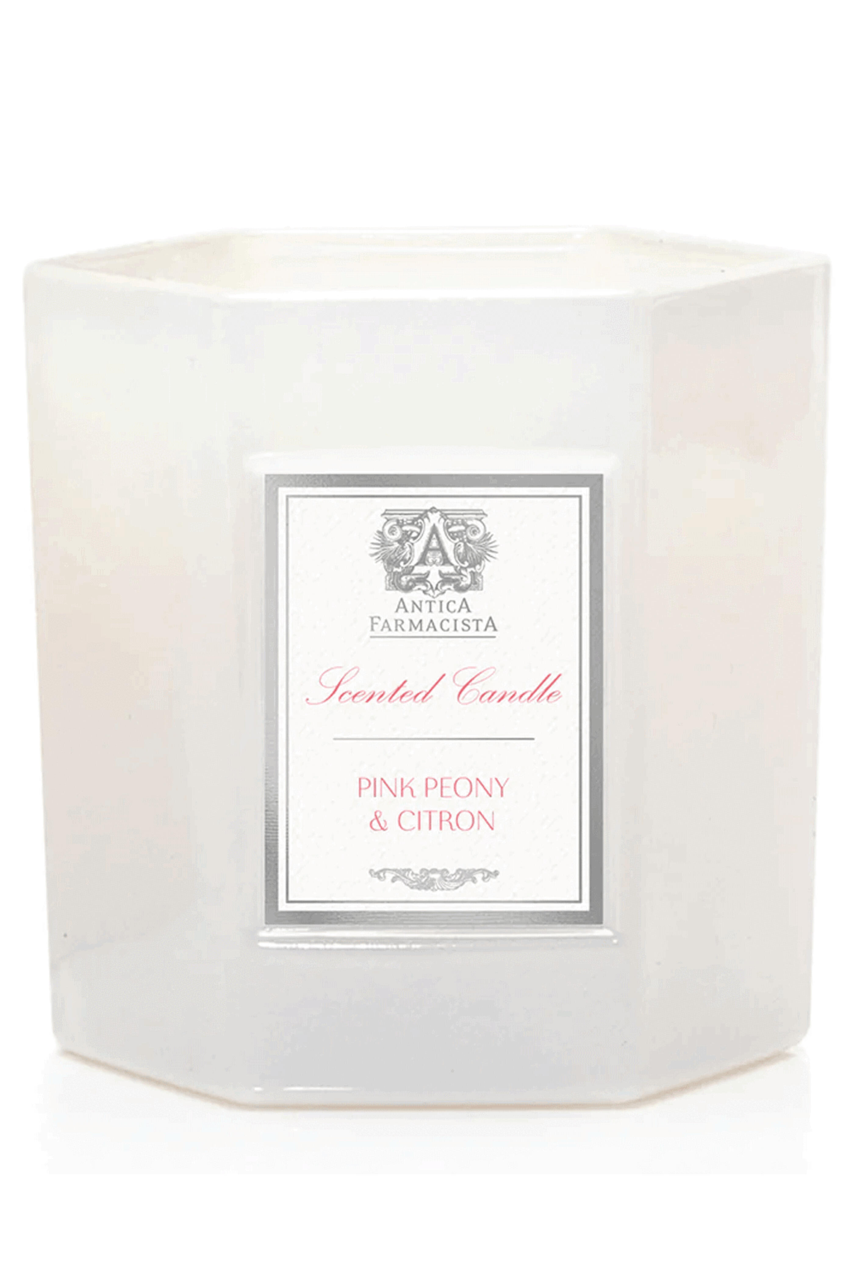 Pink peony and citron notes. 60 hour burn time. Soy-paraffin wax blend. Made in USA. 9 oz.. 3.5 height X 3.5 diameter.