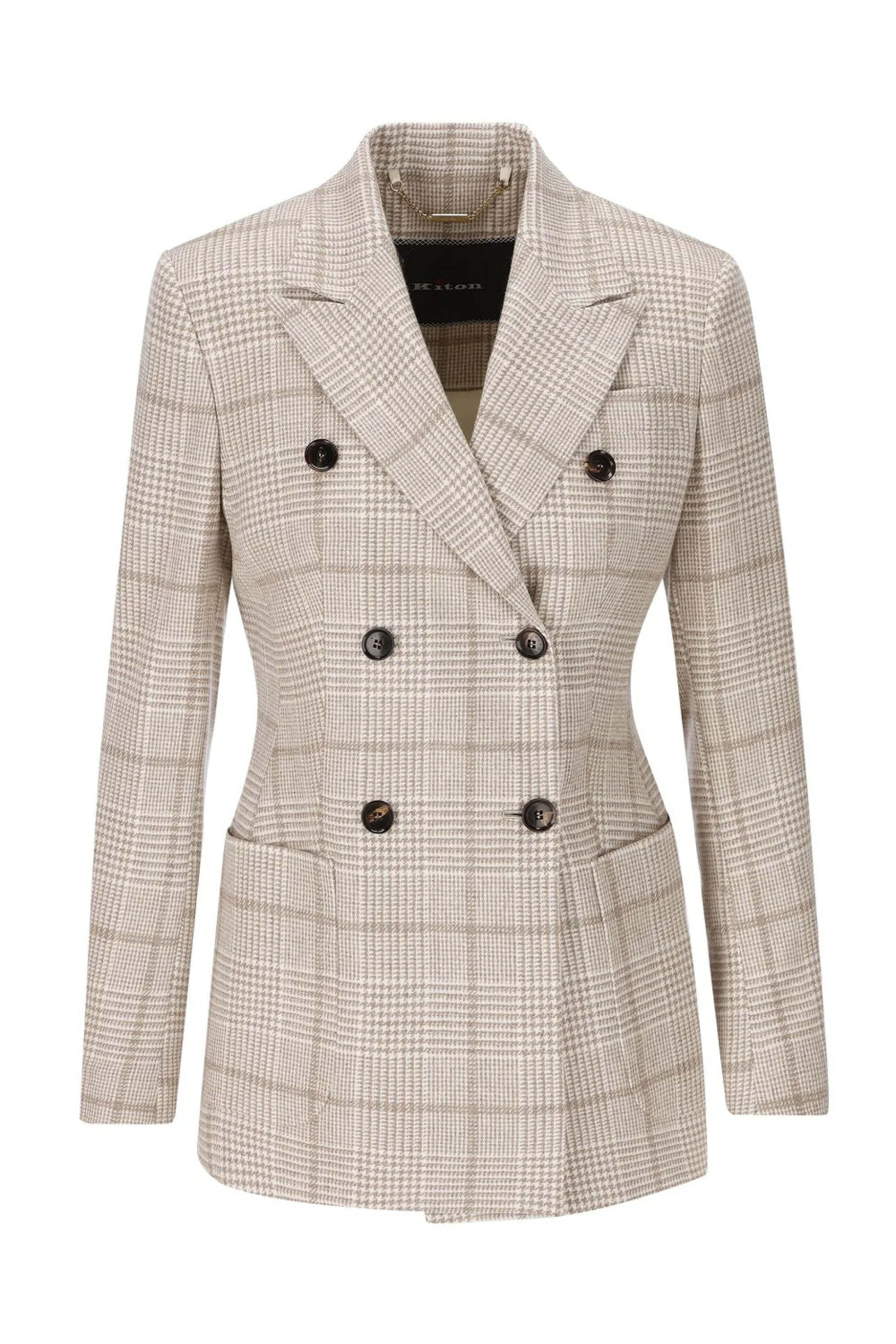 - Kiton Beige Plaid Double Breasted Jacket