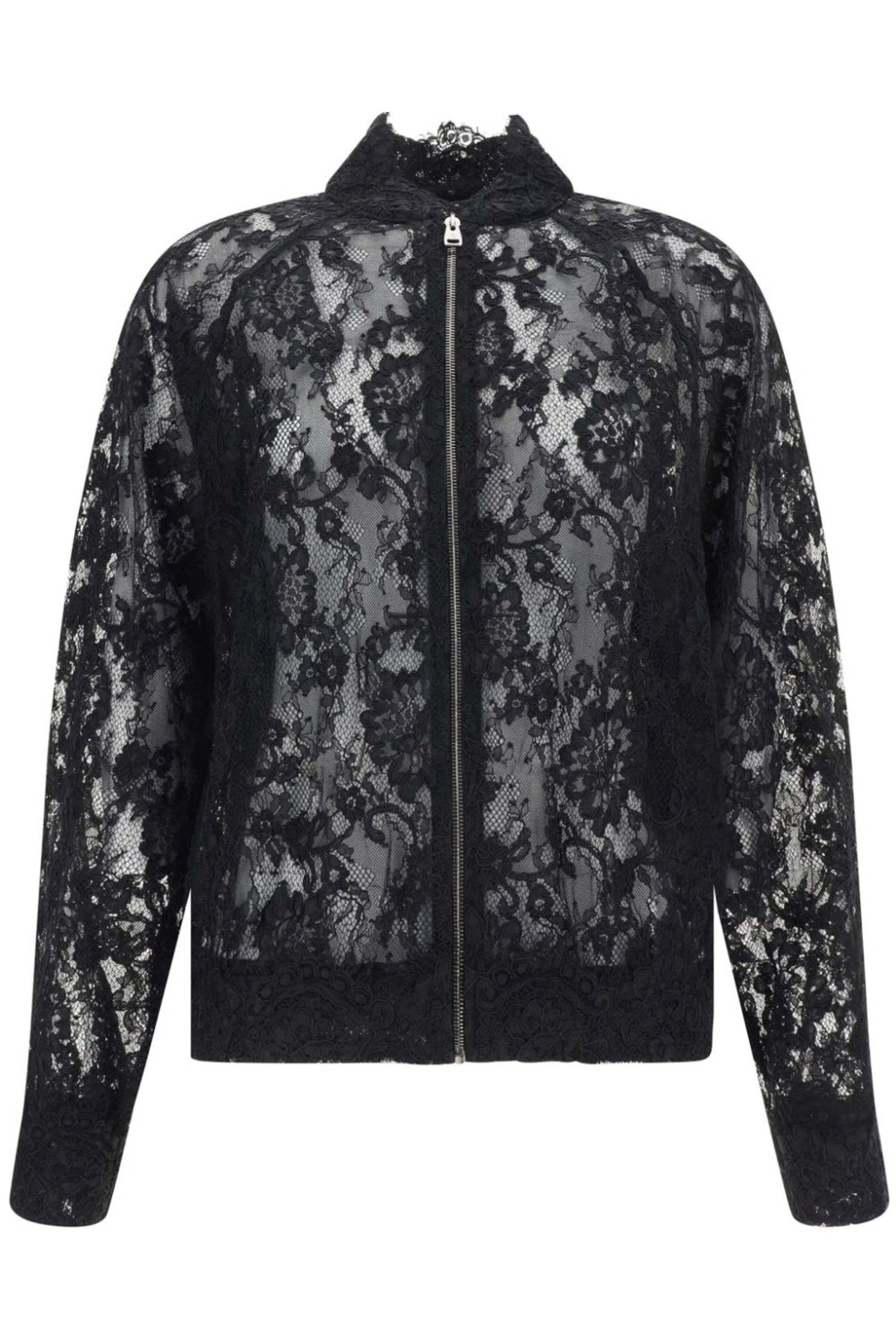 Ermanno Scervino Black Giacca Modello Bomber Jacket. Stand collar. Long raglan sleeves. Front zip closure. Lace fabrication. Made in Italy. 43% polyamide, 41% viscose, 12% polyester, 4% cotton.