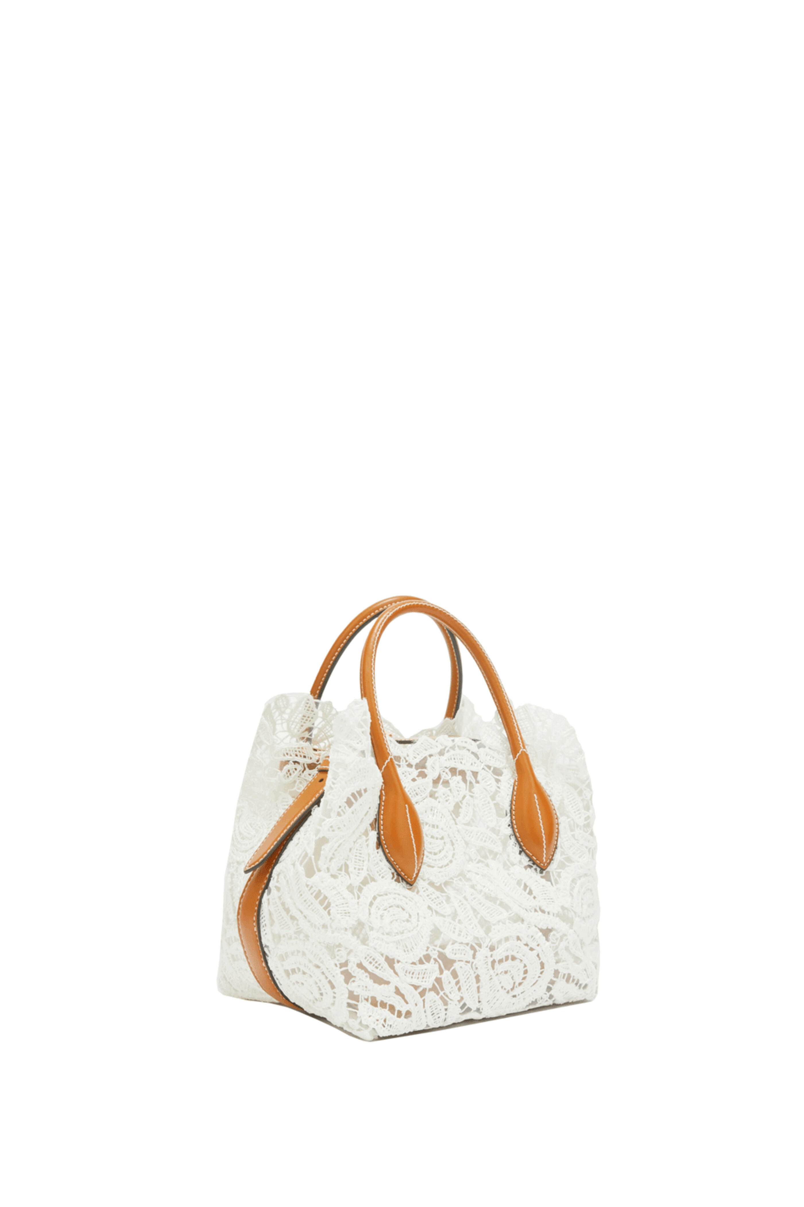 Mini Maggie Lace Borsa Shopping Tote in Blanc