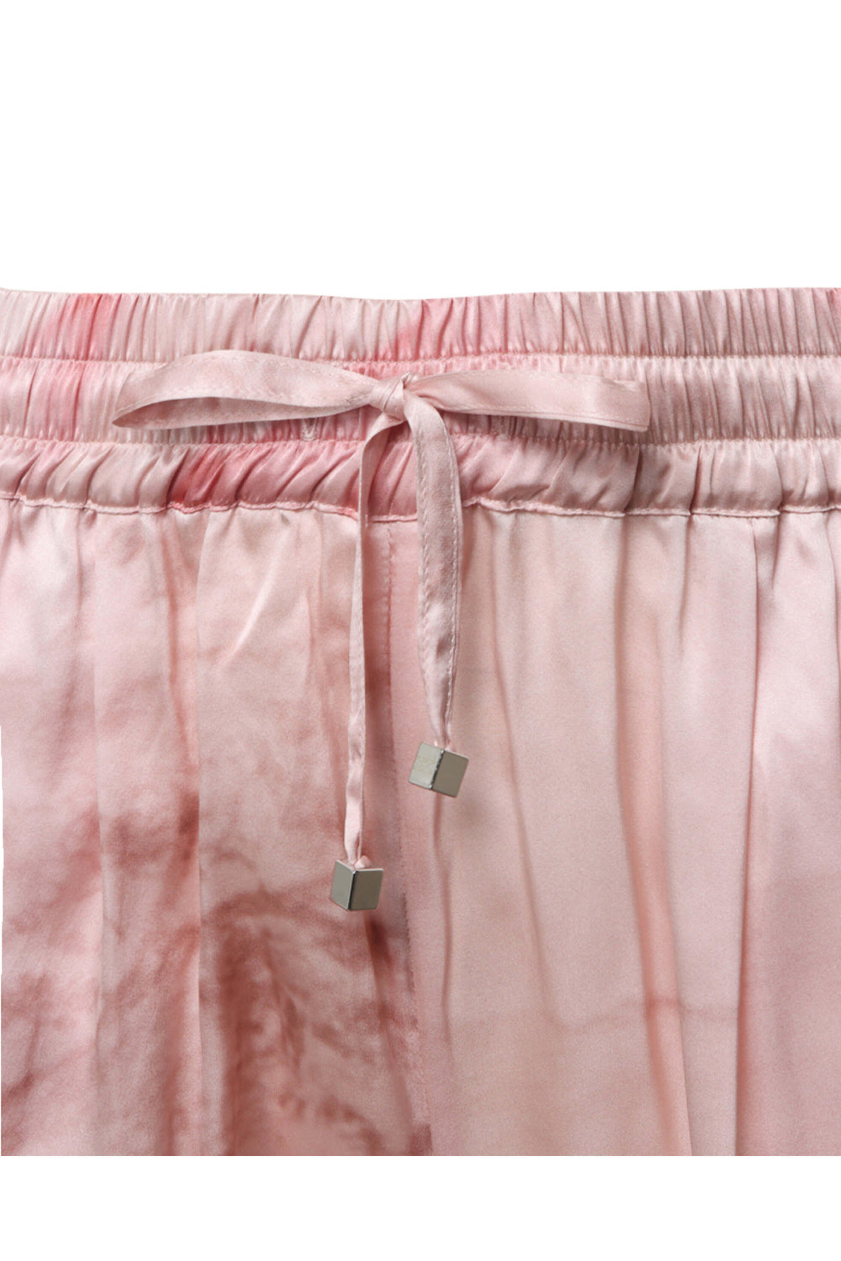 Kiton Light Pink Silk Trouser. High rise. Elastic drawstring waist. Side slip pockets. Back welt pockets; button closure. Straight silhouette. Wide through leg. Full length. Made in Italy. 100% silk.